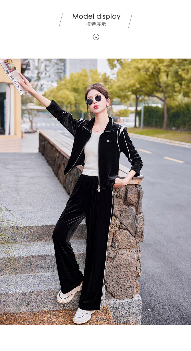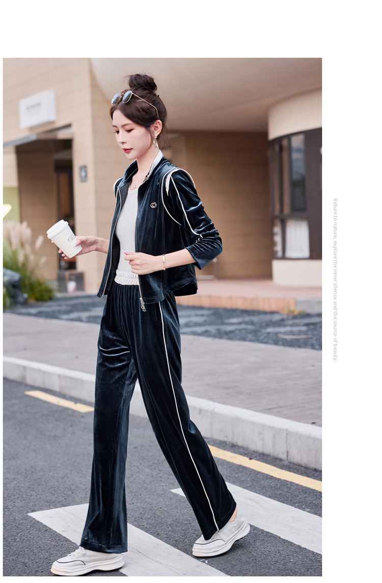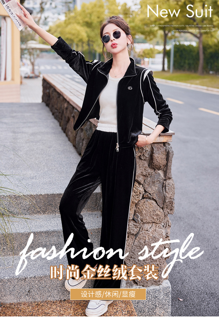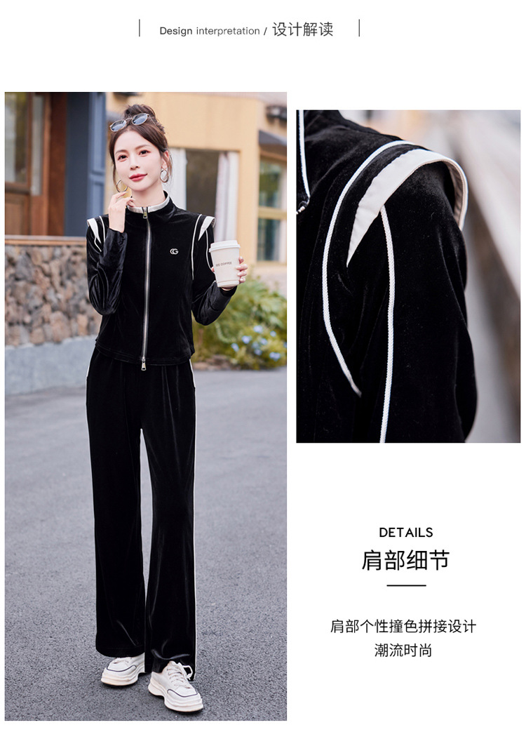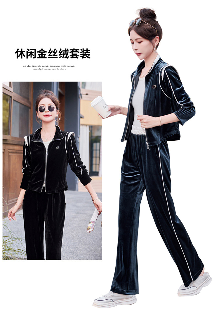 2024春季新款韩版套头金丝绒两件套运动套装YLFS8861