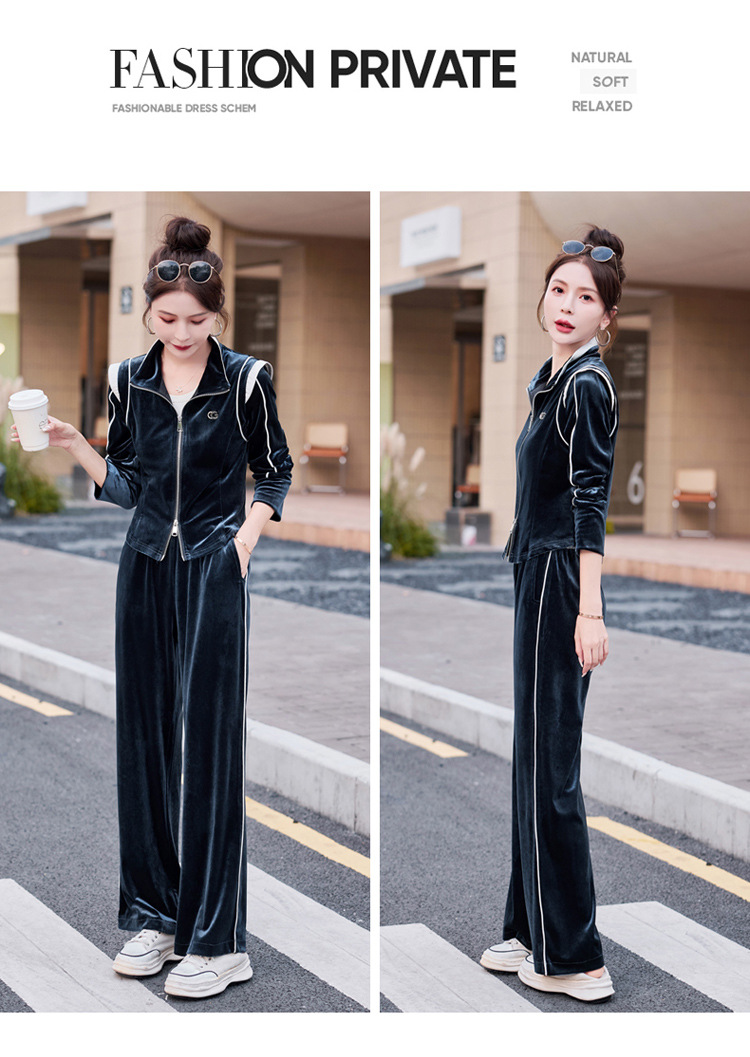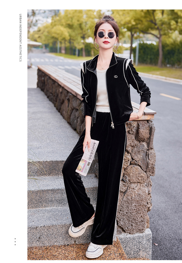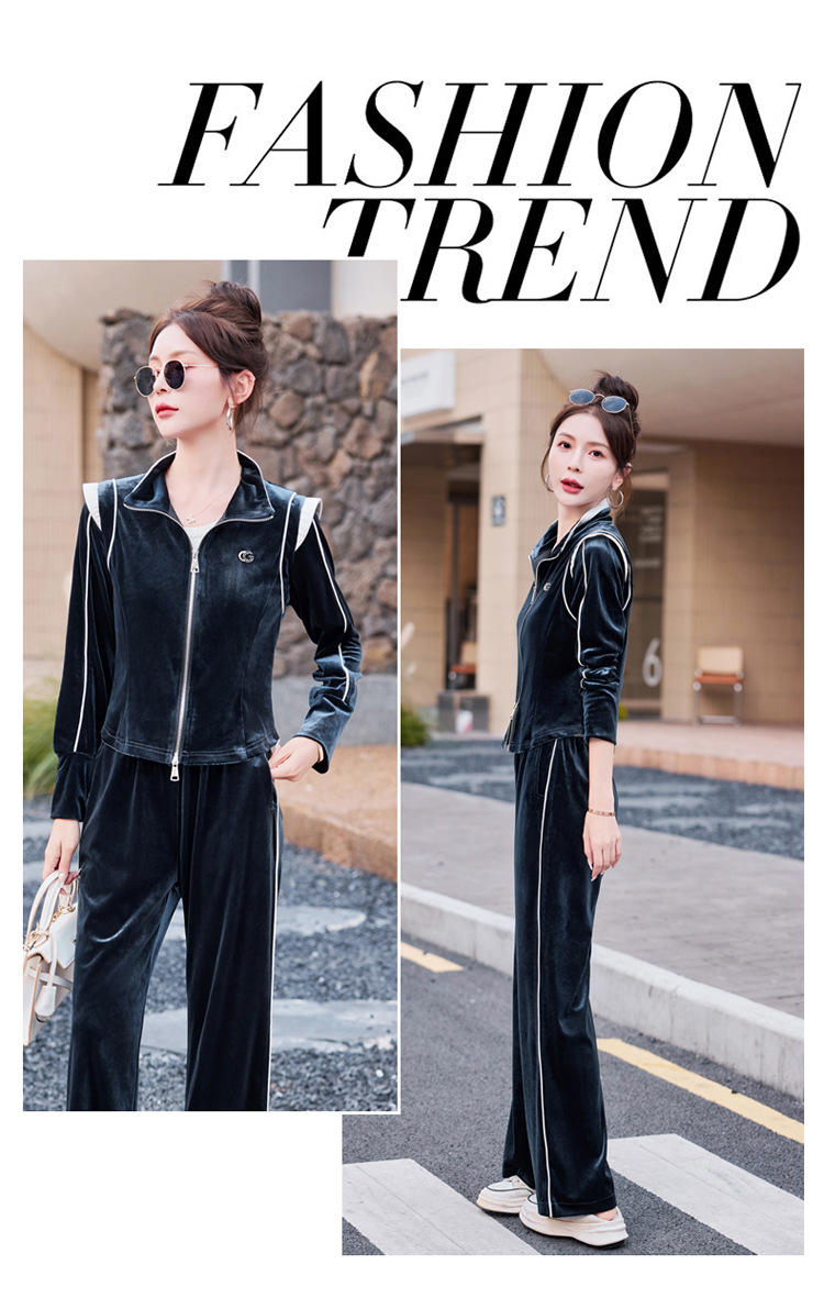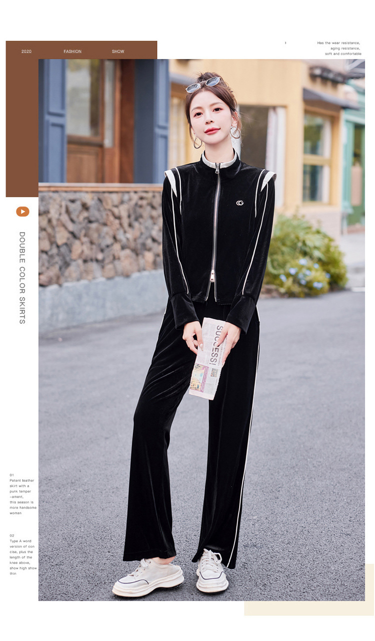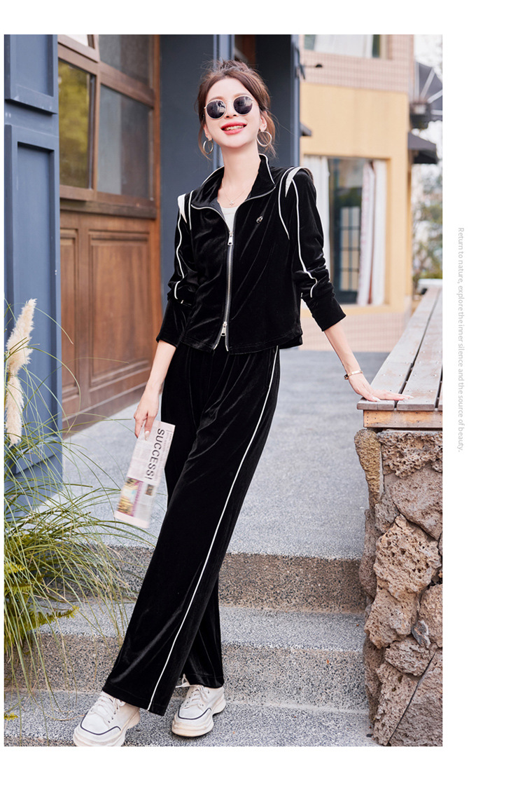 2024春季新款韩版套头金丝绒两件套运动套装YLFS8861