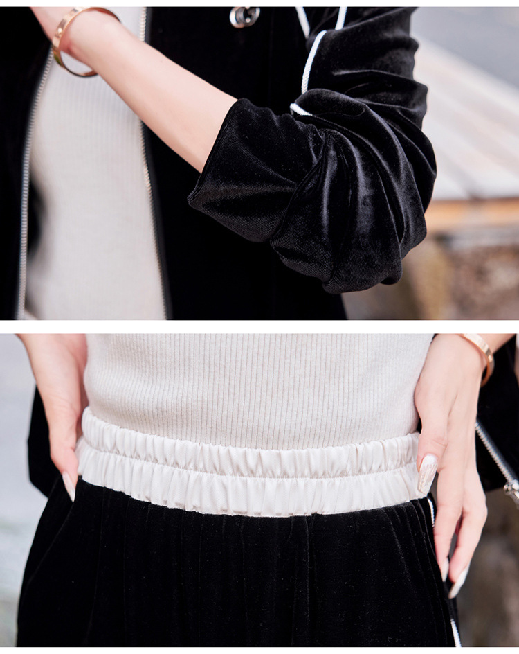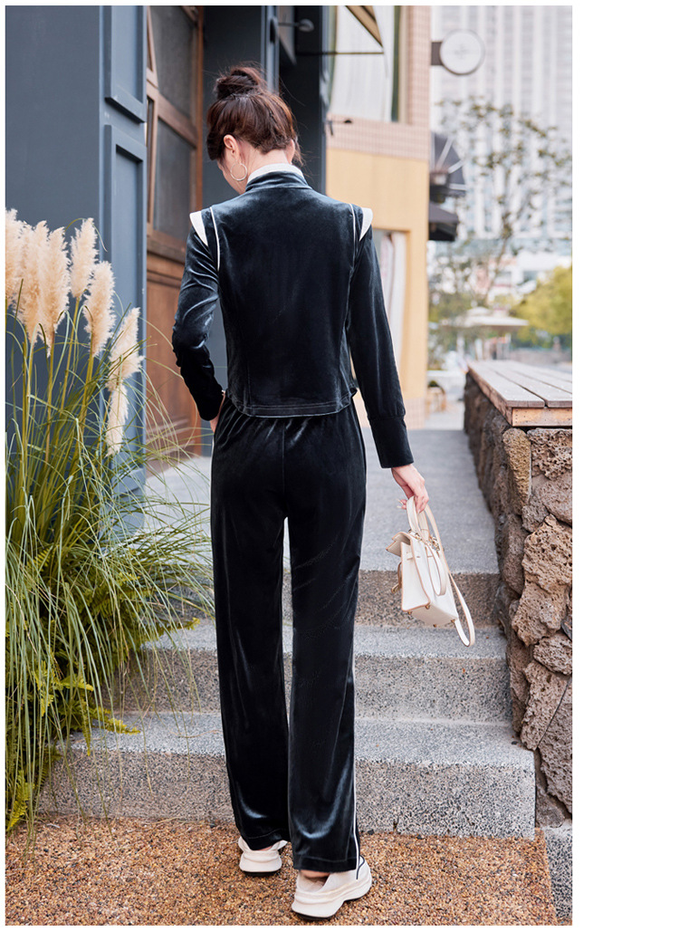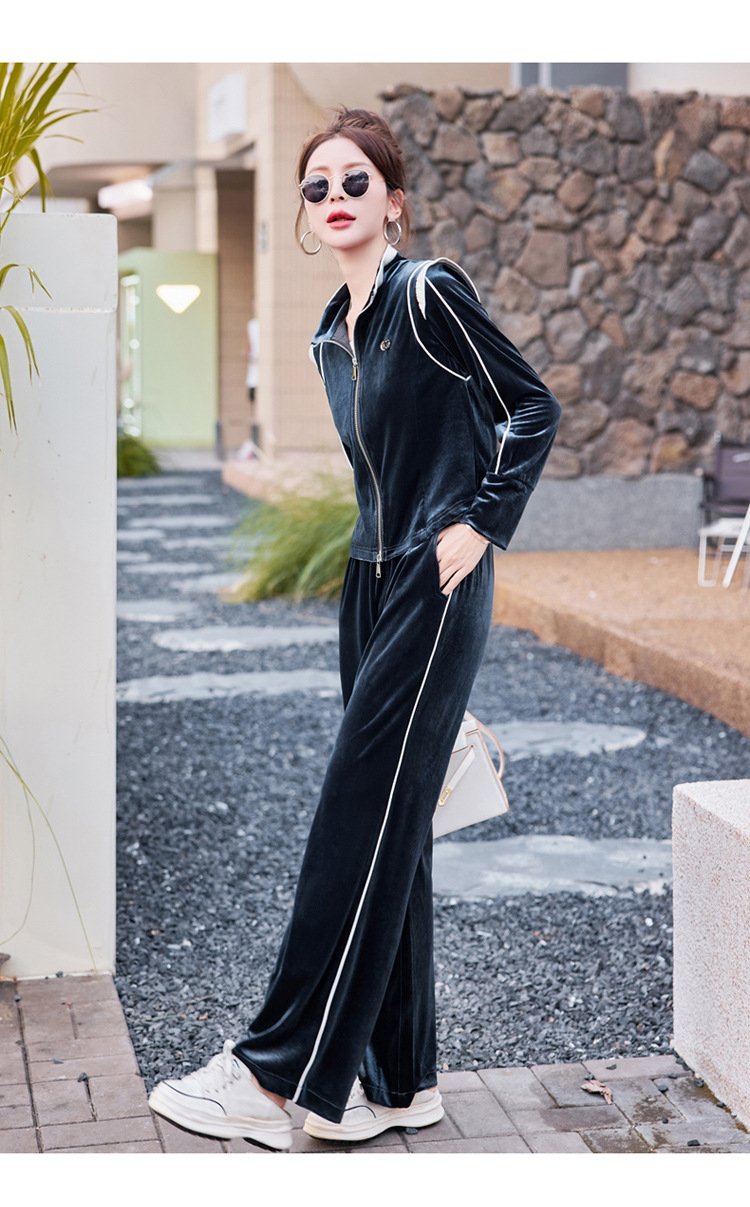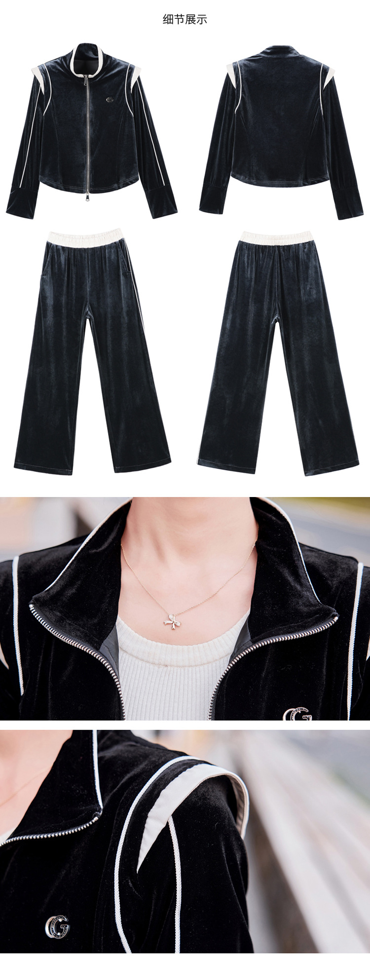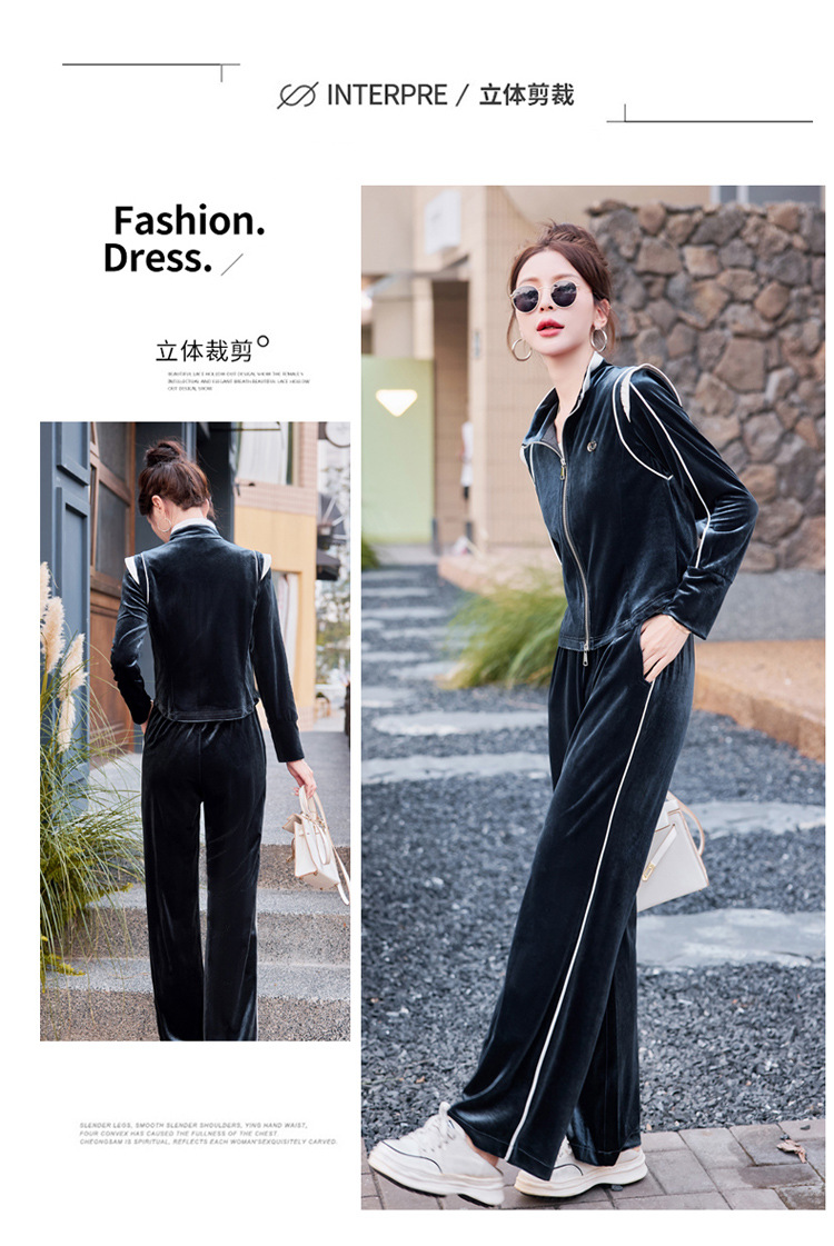 2024春季新款韩版套头金丝绒两件套运动套装YLFS8861