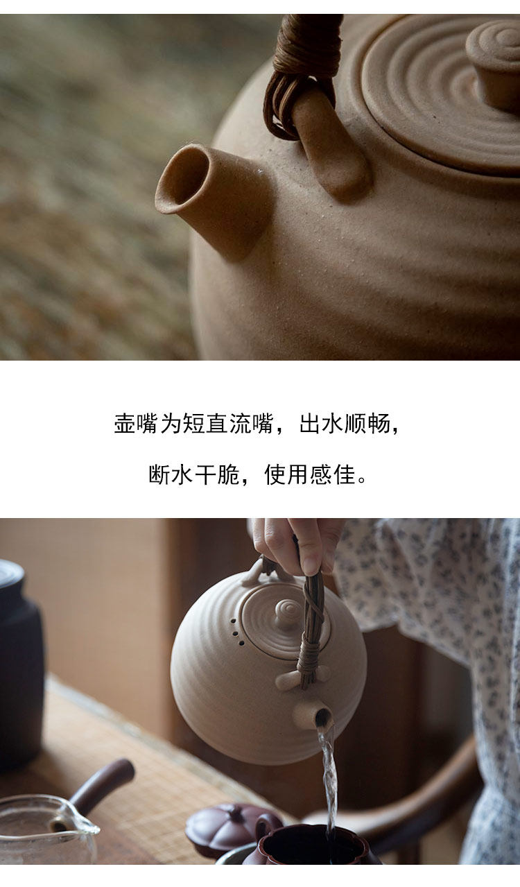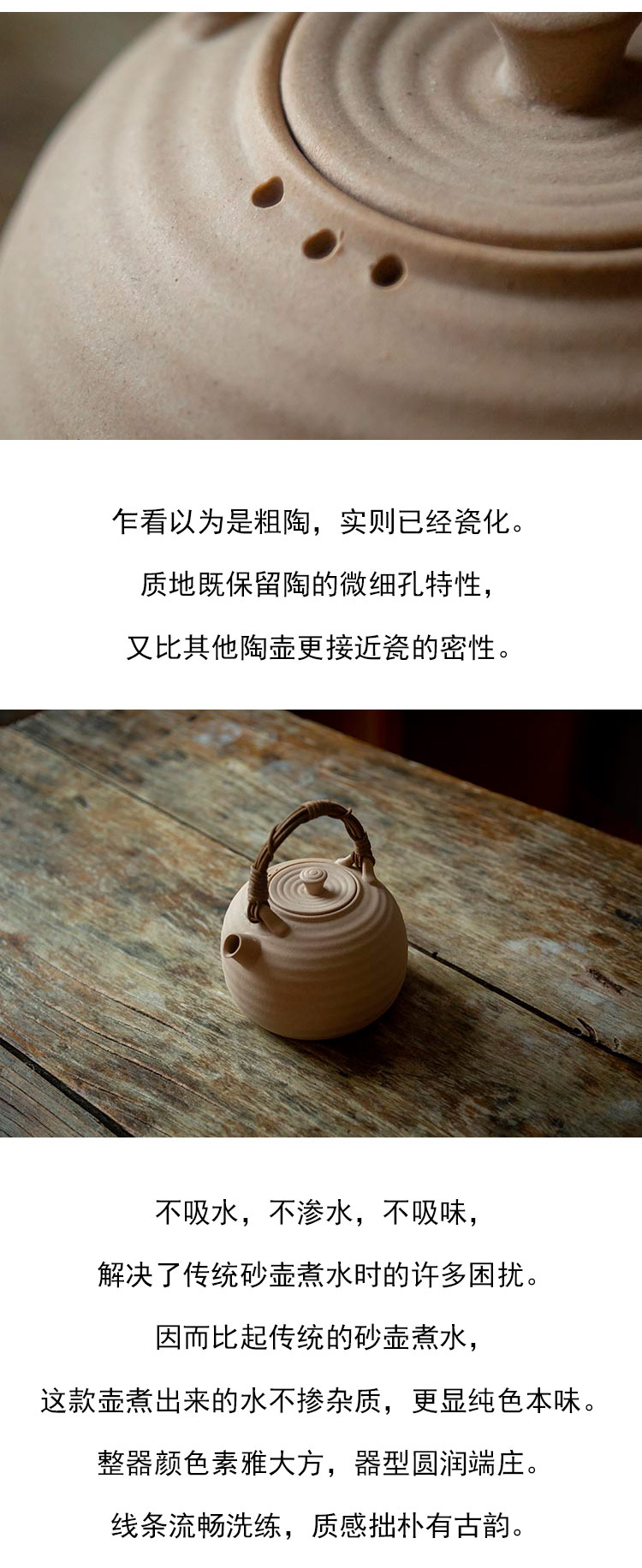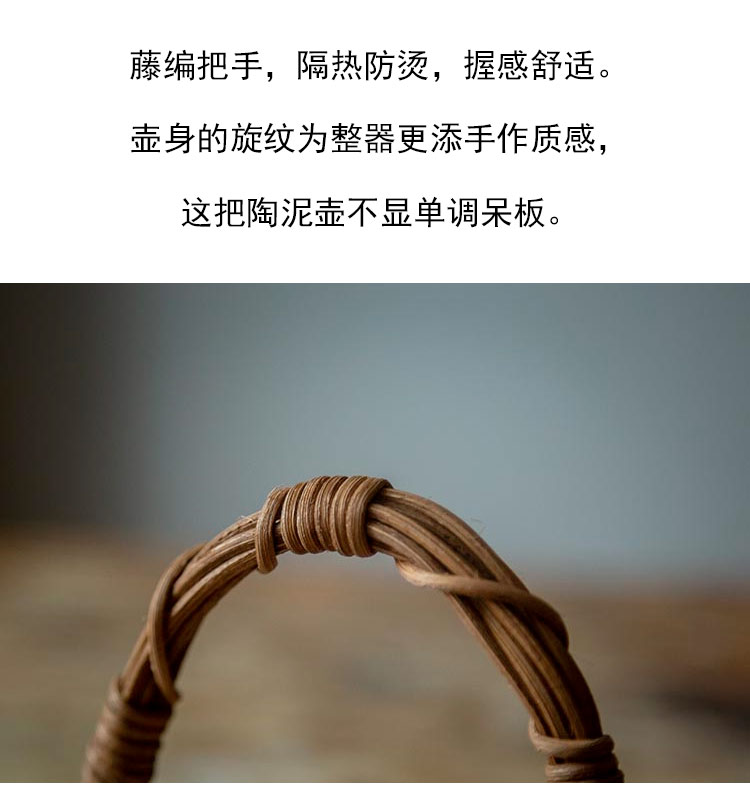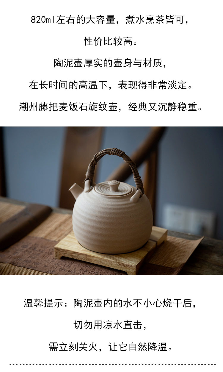 茶香记 潮州陶泥壶 藤把麦饭石 旋纹壶 大容量 实用 沉稳大气 日常使用