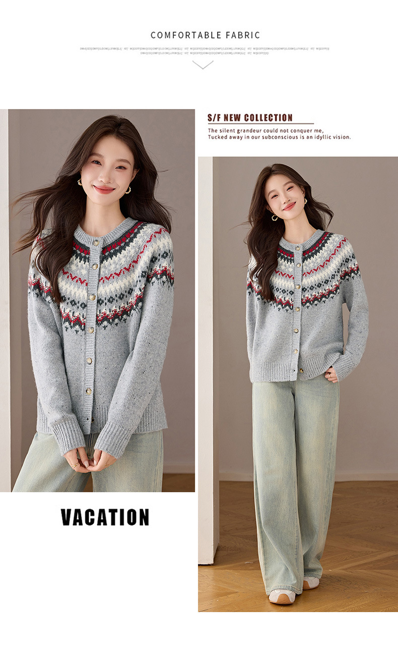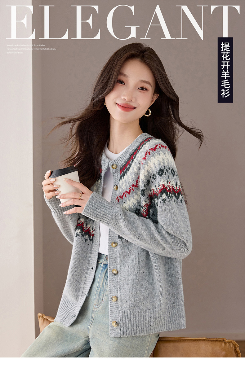 QF 20-1579费尔岛针织外套上衣显瘦洋气羊毛洋气开衫
