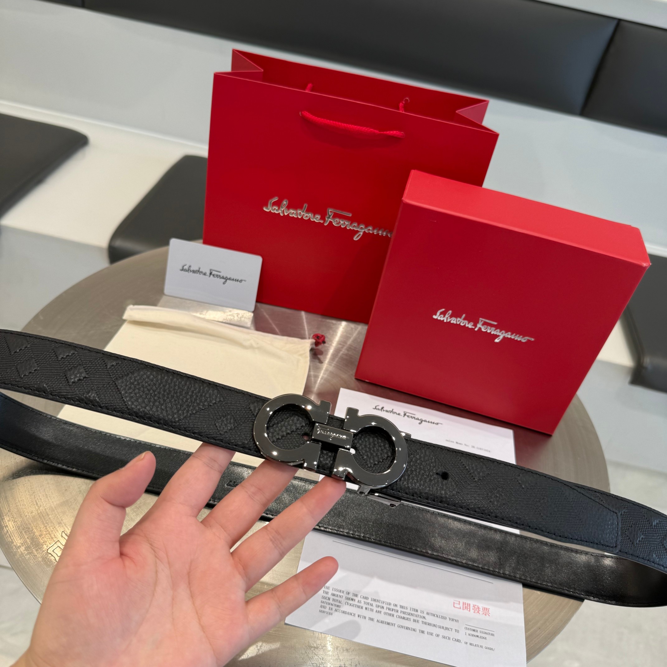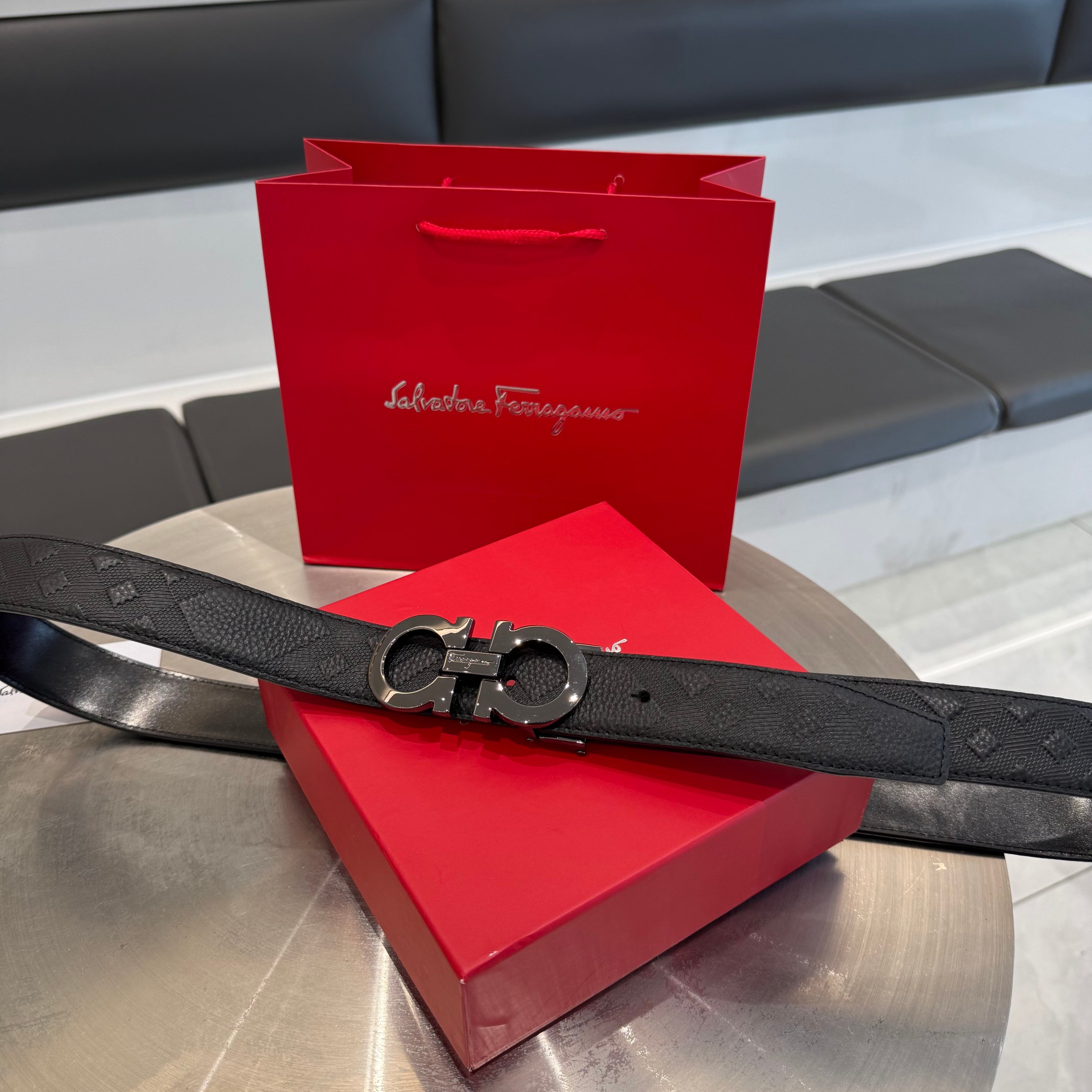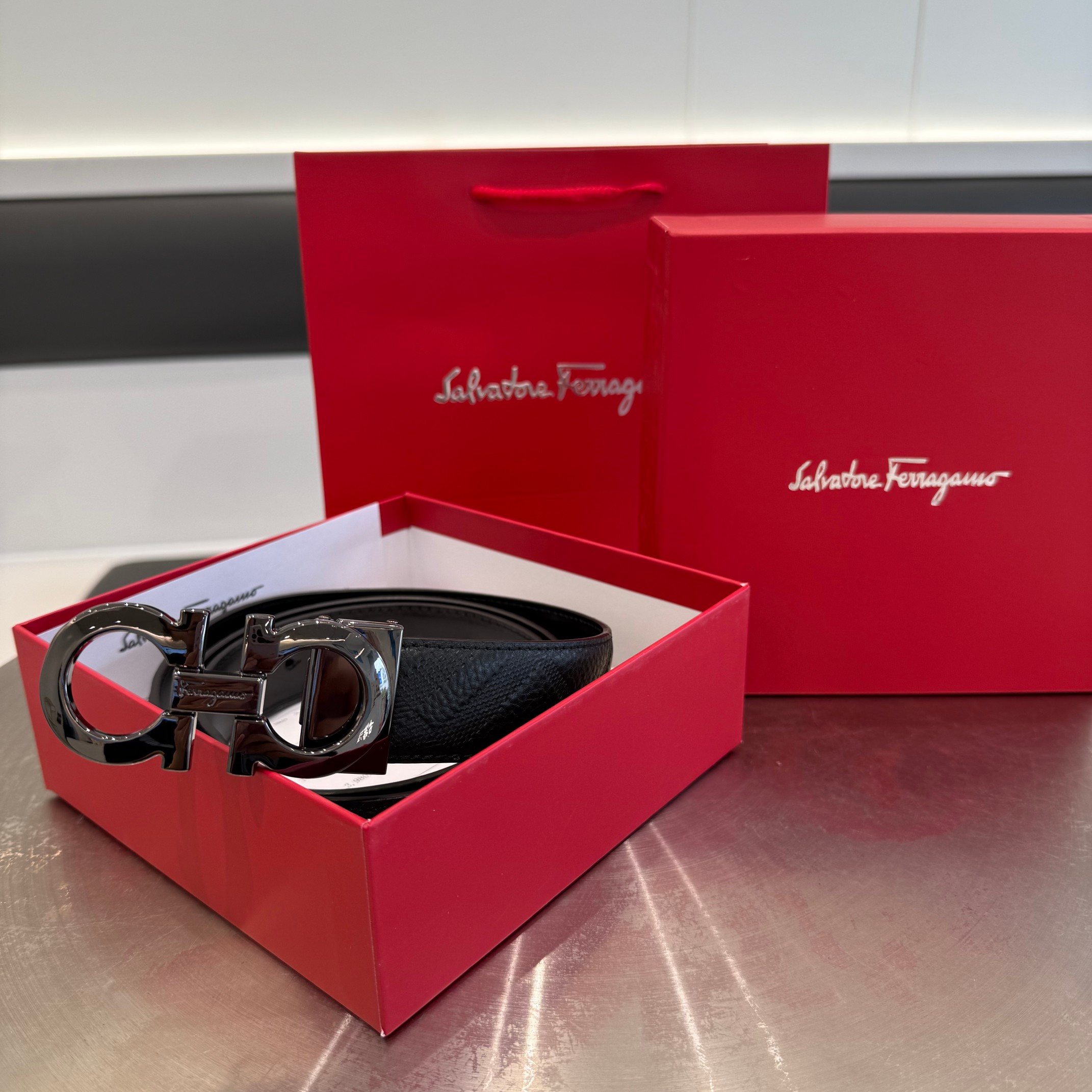 2025新款来袭🎉FERRAGAMO/菲拉格慕皮带,黑色纯色光面腰带,配红色礼盒包装,菲拉格慕皮带专柜🈶售✨牛逼质量带身采用进口二层牛皮🐂 精致油边,搭配原版钢扣💍不褪色。不挑任何年龄,送老公,男朋友,爸爸都可以,彰显气质,宽度3.4cm,有配打孔器,码数统一120cm,长度可以剪。