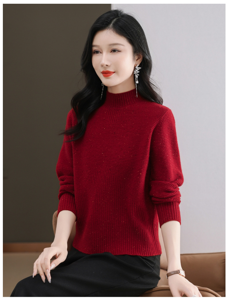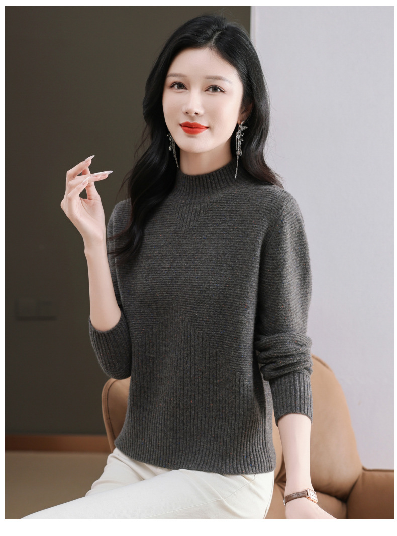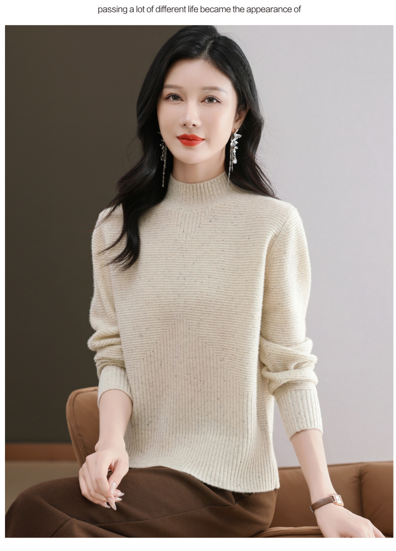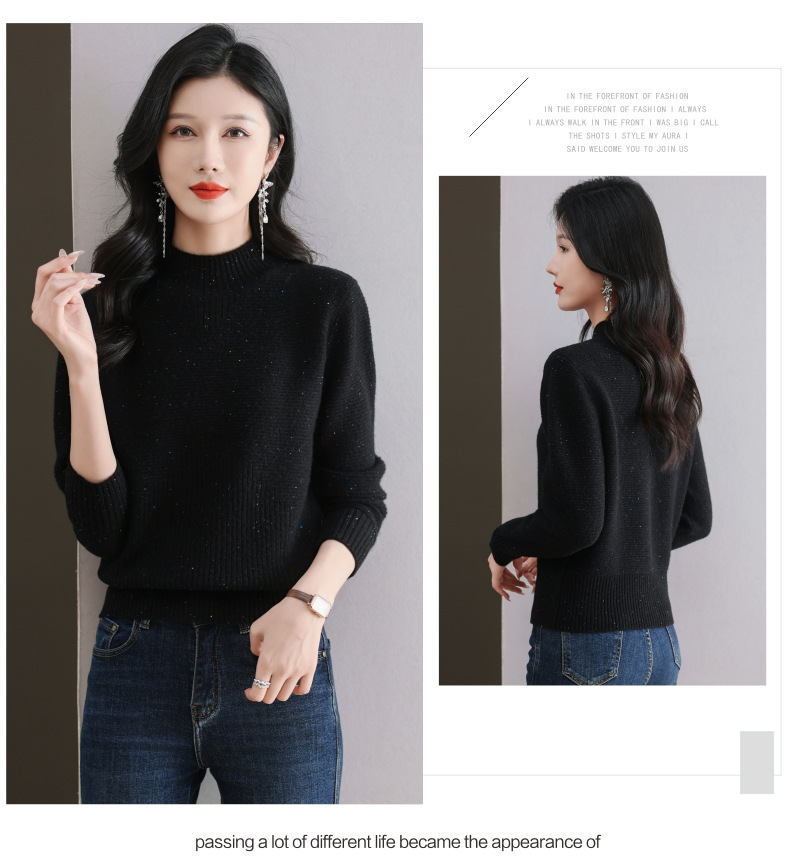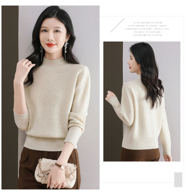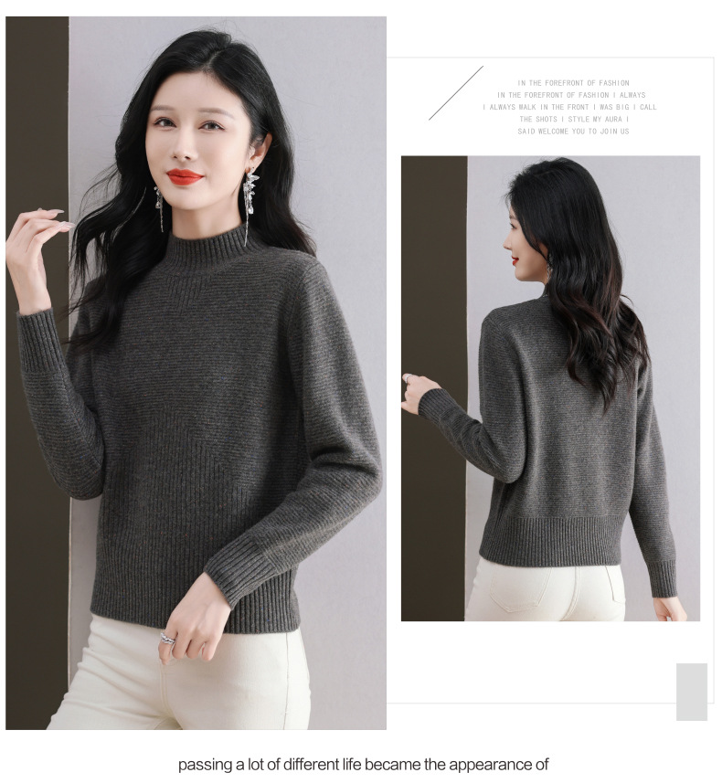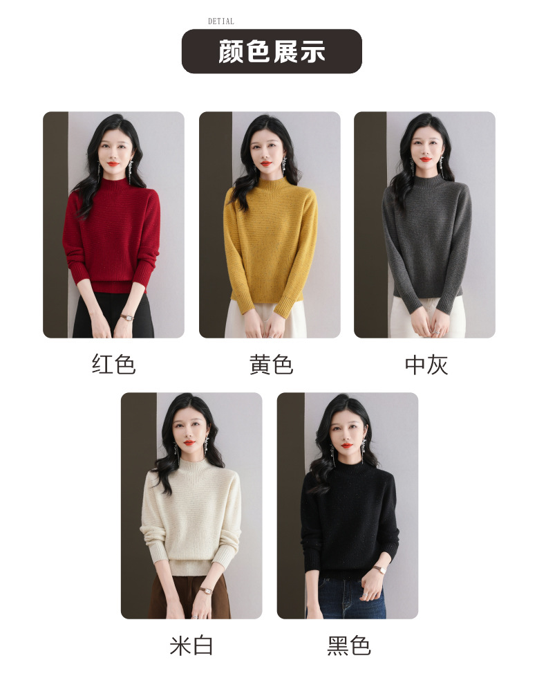 CC-101-F939秋冬新款毛衣半高领100纯羊毛衫女宽松显瘦内搭针织衫时尚打底衫