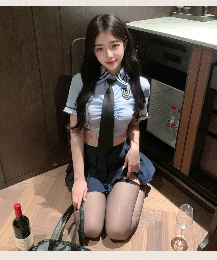 【爆款学院装】霏慕 元气短衫露腰百褶学院装 情趣内衣 角色扮演ZY6915