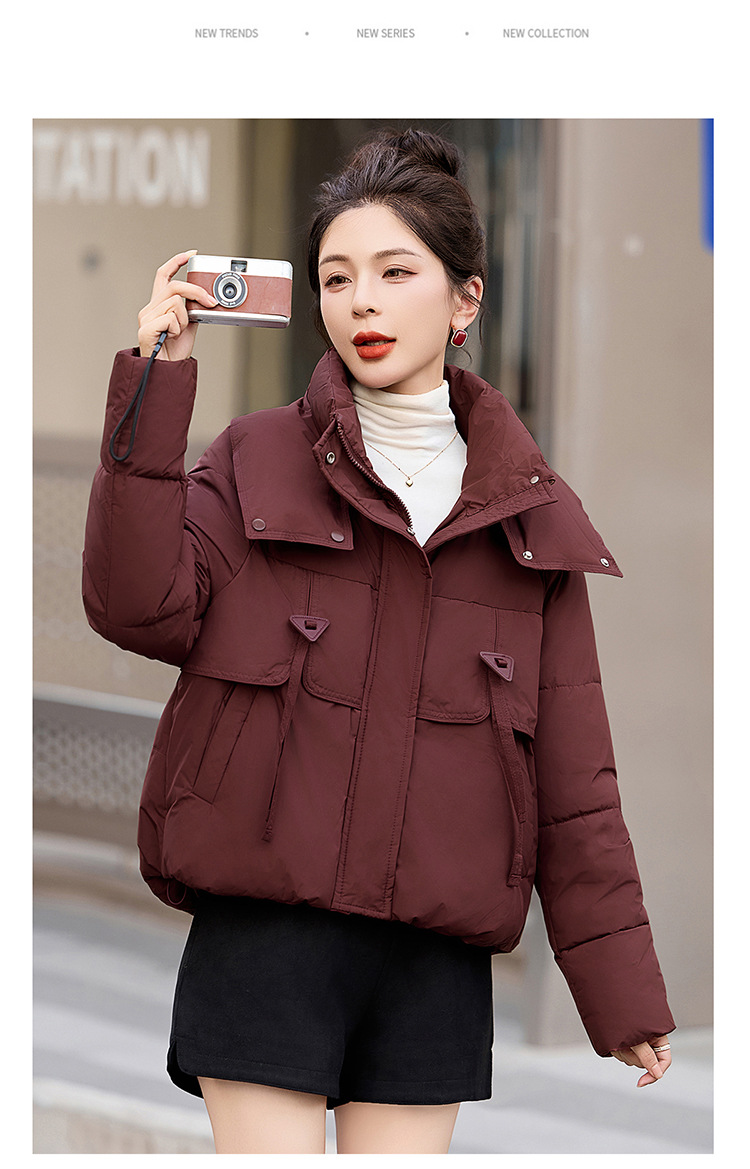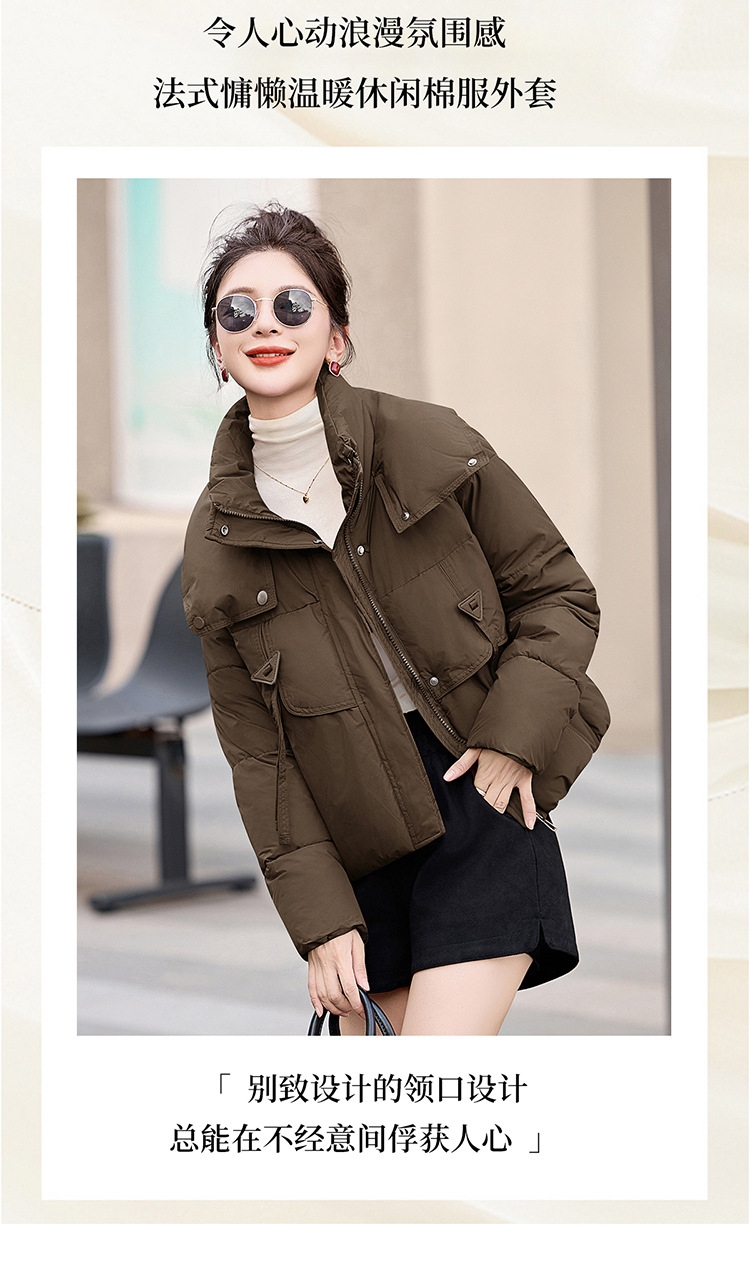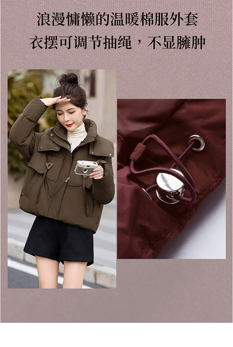 宽松休闲显瘦韩版翻领插肩袖短款百搭棉衣HHYS1392