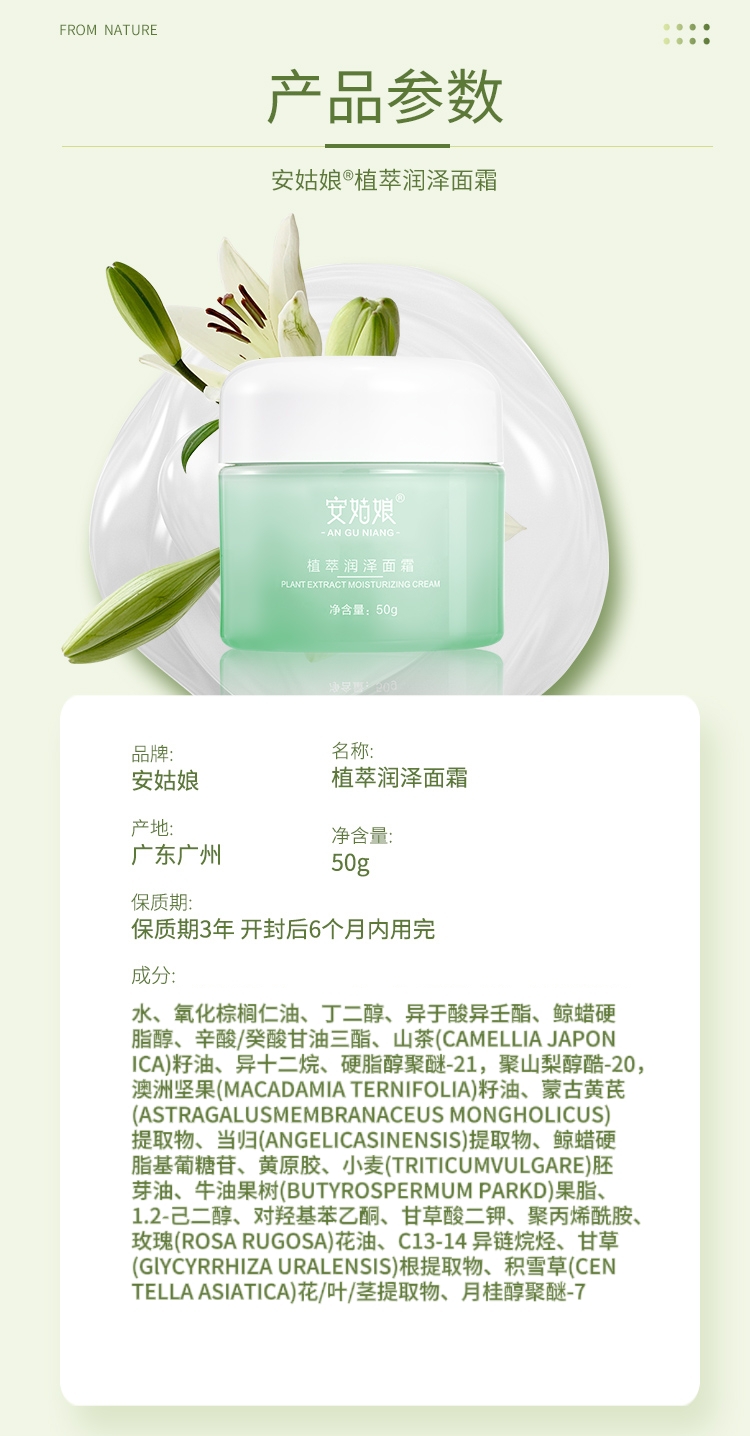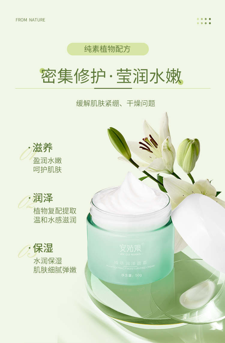 安姑娘植萃润泽面霜 无香味长效保湿锁水 细腻嫩滑 修护干裂 冬季大干皮 纯素美妆 全国包邮