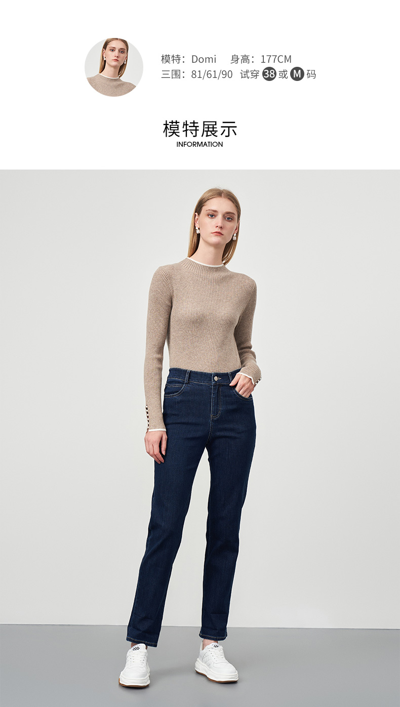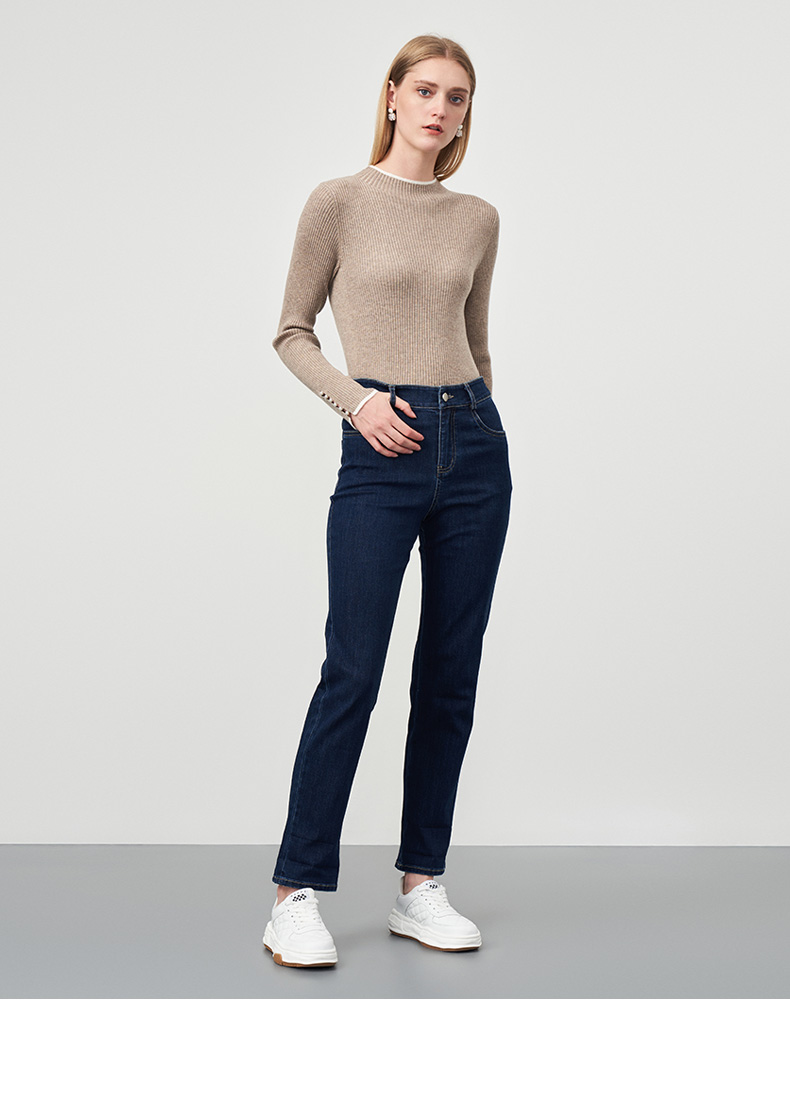 EITIE爱特爱简约纯色高领保暖舒适羊毛打底针织衫秋新款C2301218