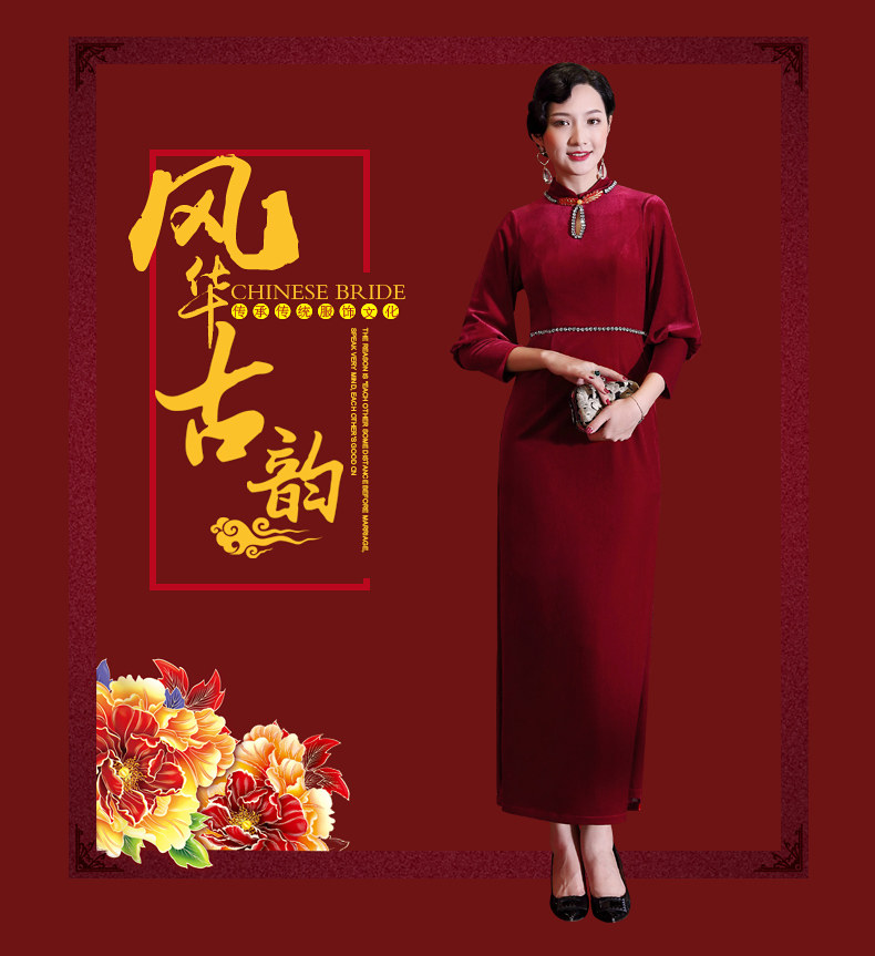 DLQ-A2136秋冬新式高端妈妈中年喜婆婆旗袍