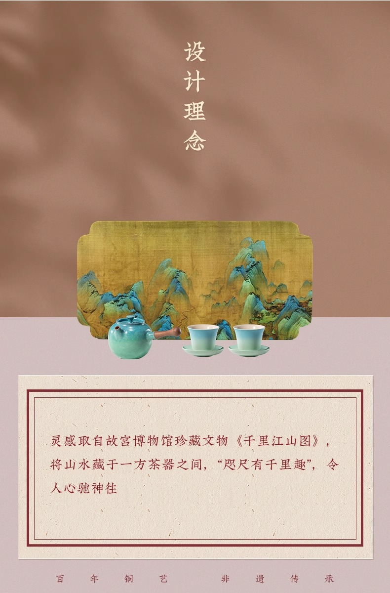 朱炳仁铜 上春山茶礼套装精致泡茶小铜壶功夫茶具千里江山礼物