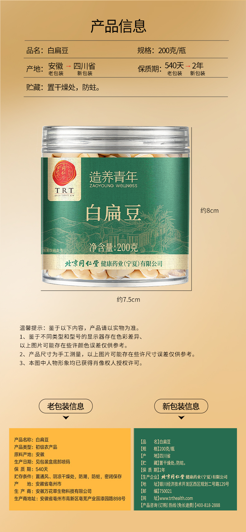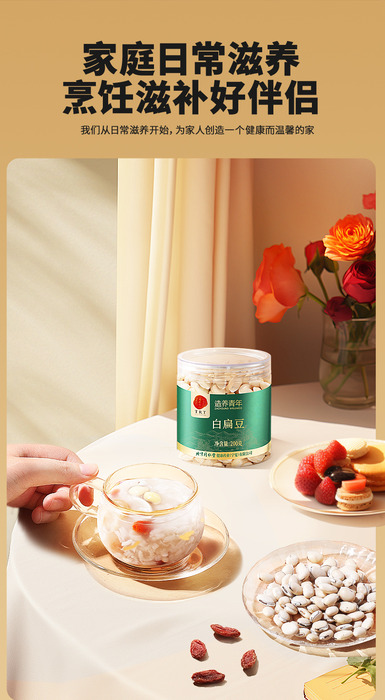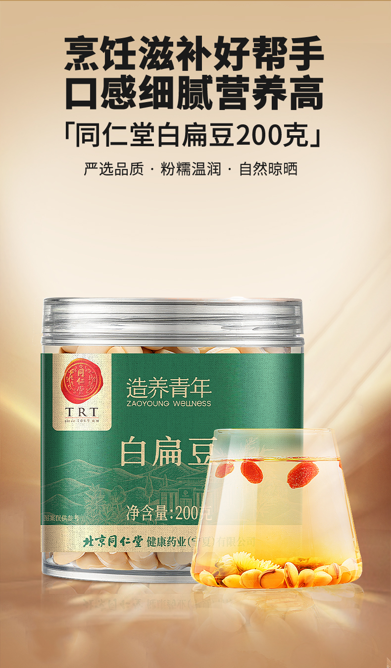 北京同仁堂 造养青年 白扁豆 200克 粉糯温润 自然晾晒SY