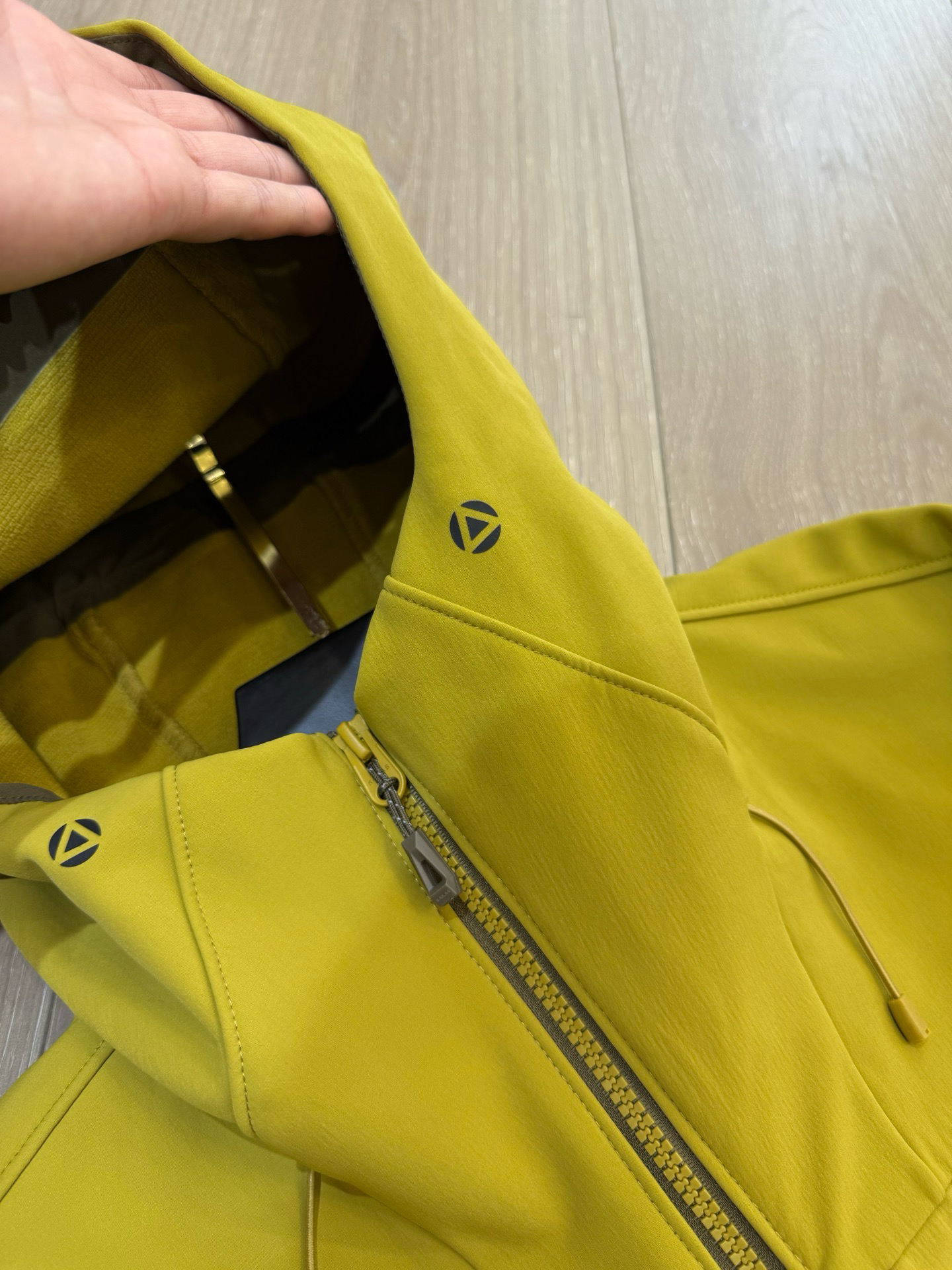 简洁干练的冲锋衣线条, 宽松连帽的合体版型,软壳薄绒,轻盈保暖,不臃肿,不支棱