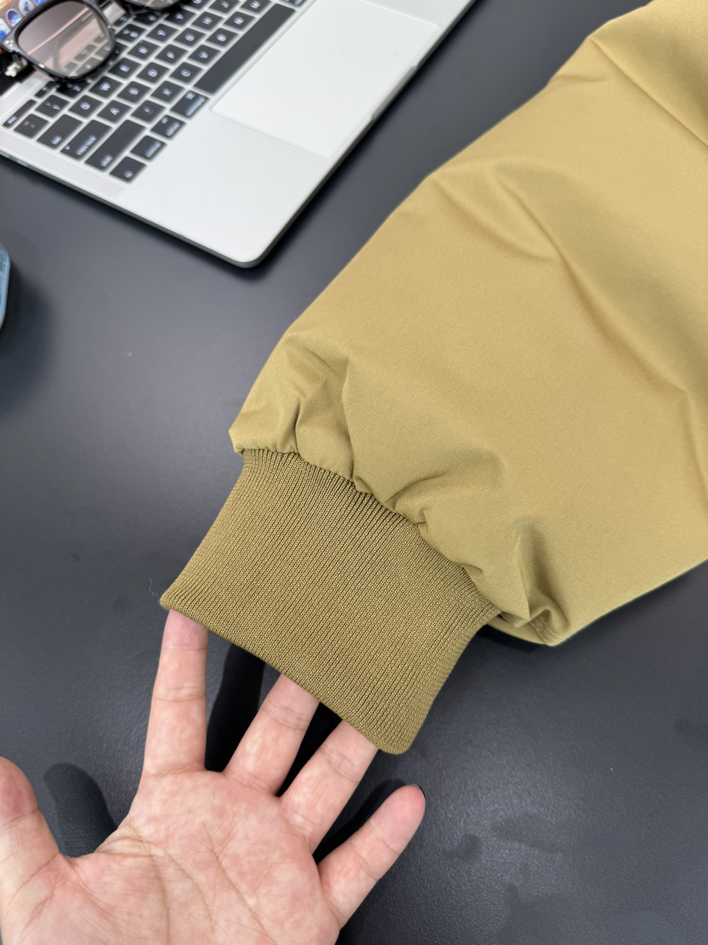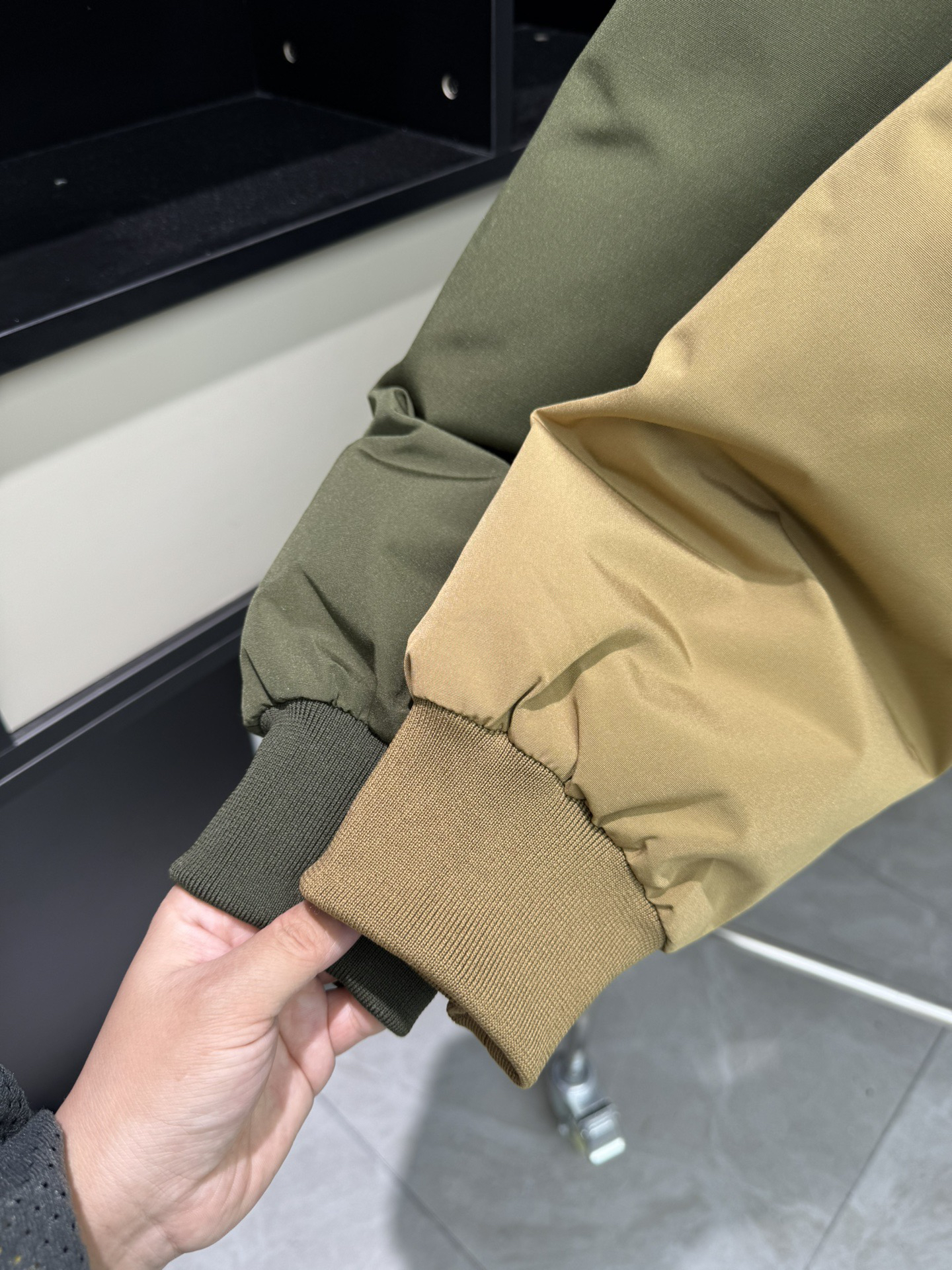 袖口、下摆定织定染的顺色螺纹松紧设计 双层的 密度很高很紧实 穿洗不易变形 贴合身体曲线 更显利落