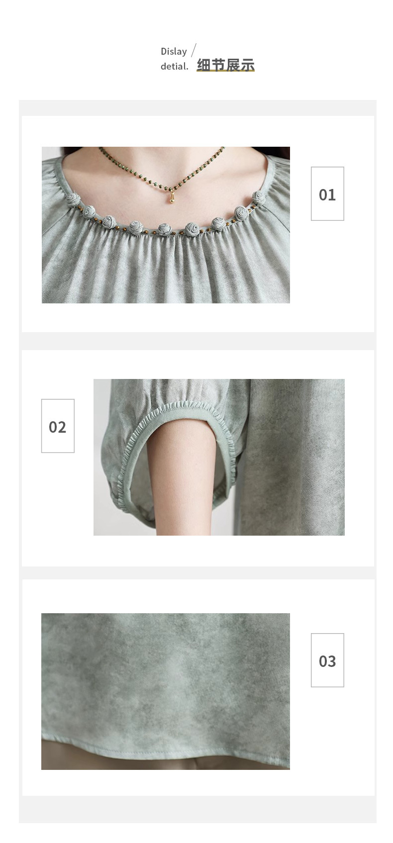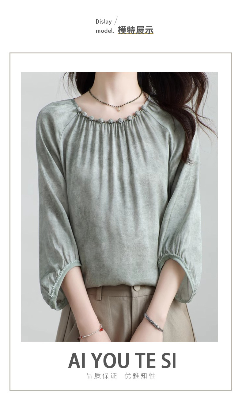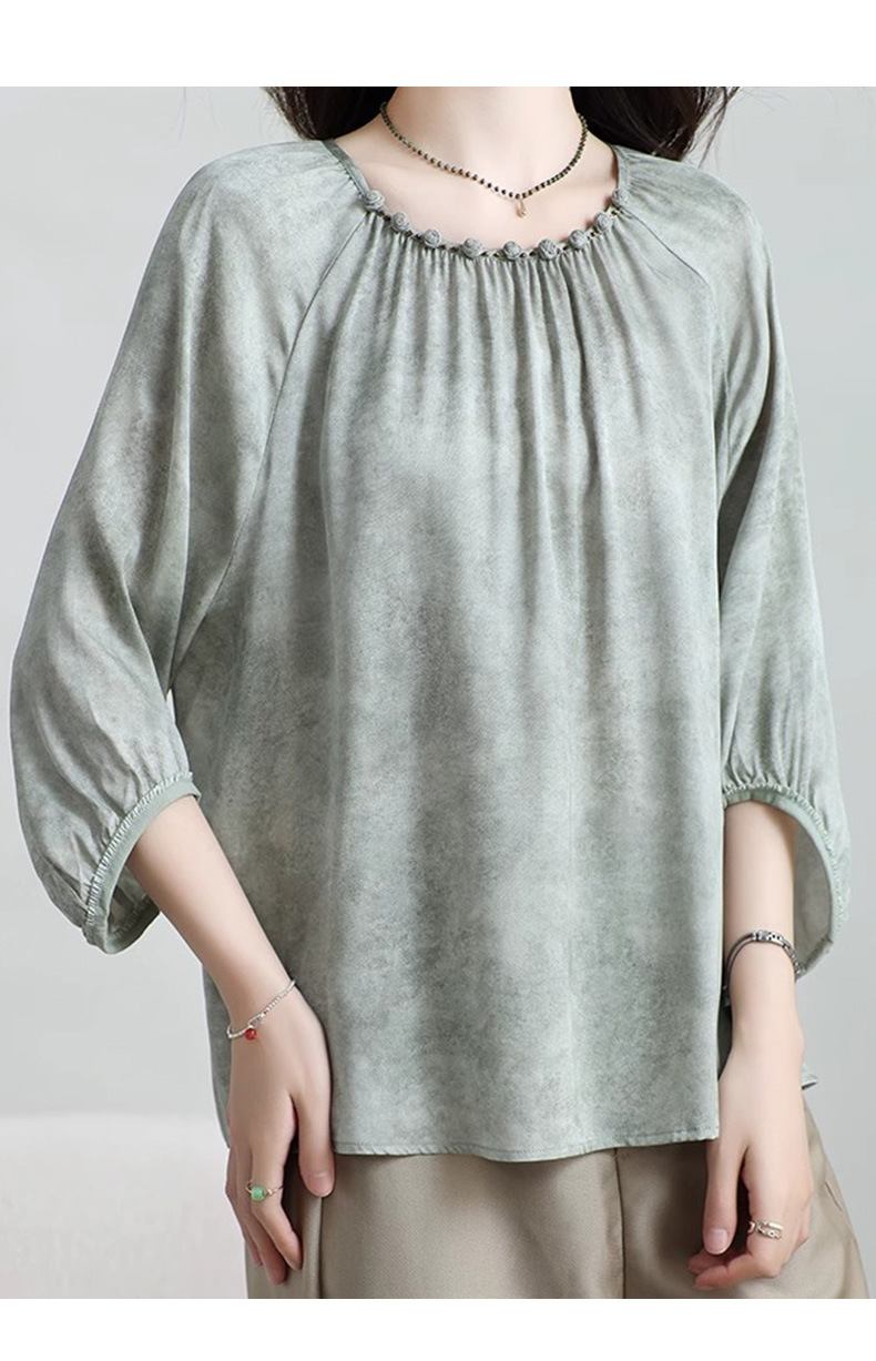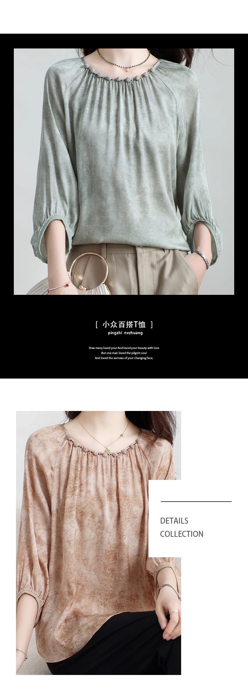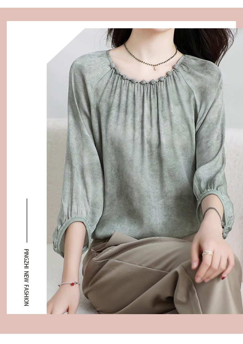 丁摩 圆领桑蚕丝灯笼袖真丝上衣TZ504182