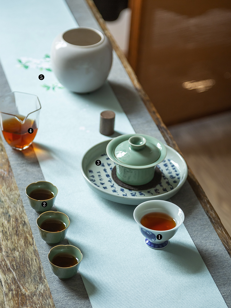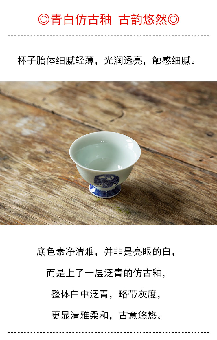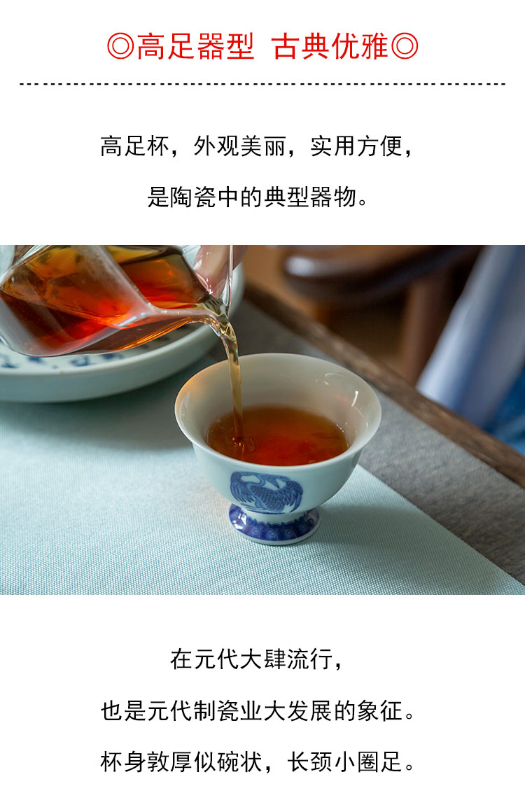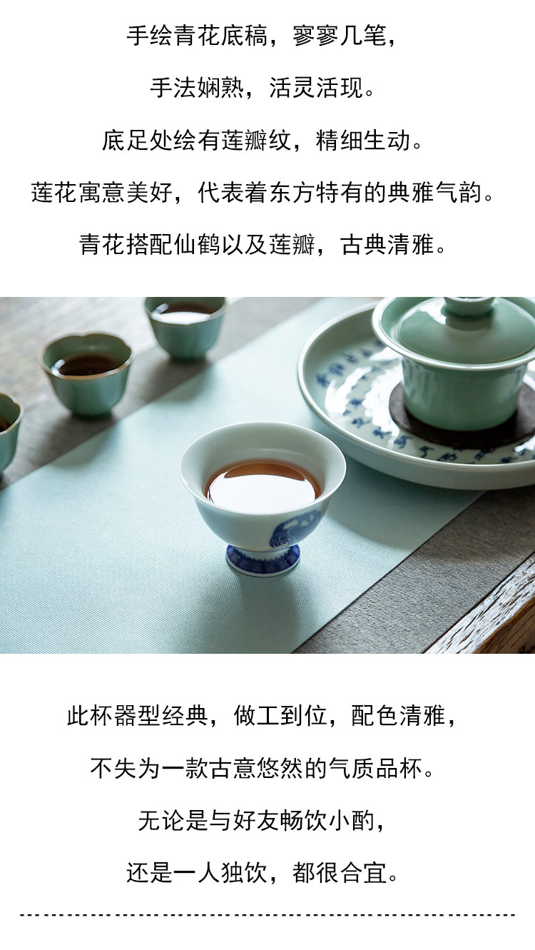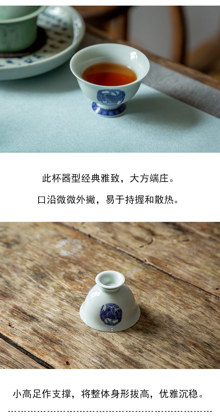 茶香记 青花团鹤高足杯90ml仿古陶瓷茶杯主人杯高挺优雅古典茶具