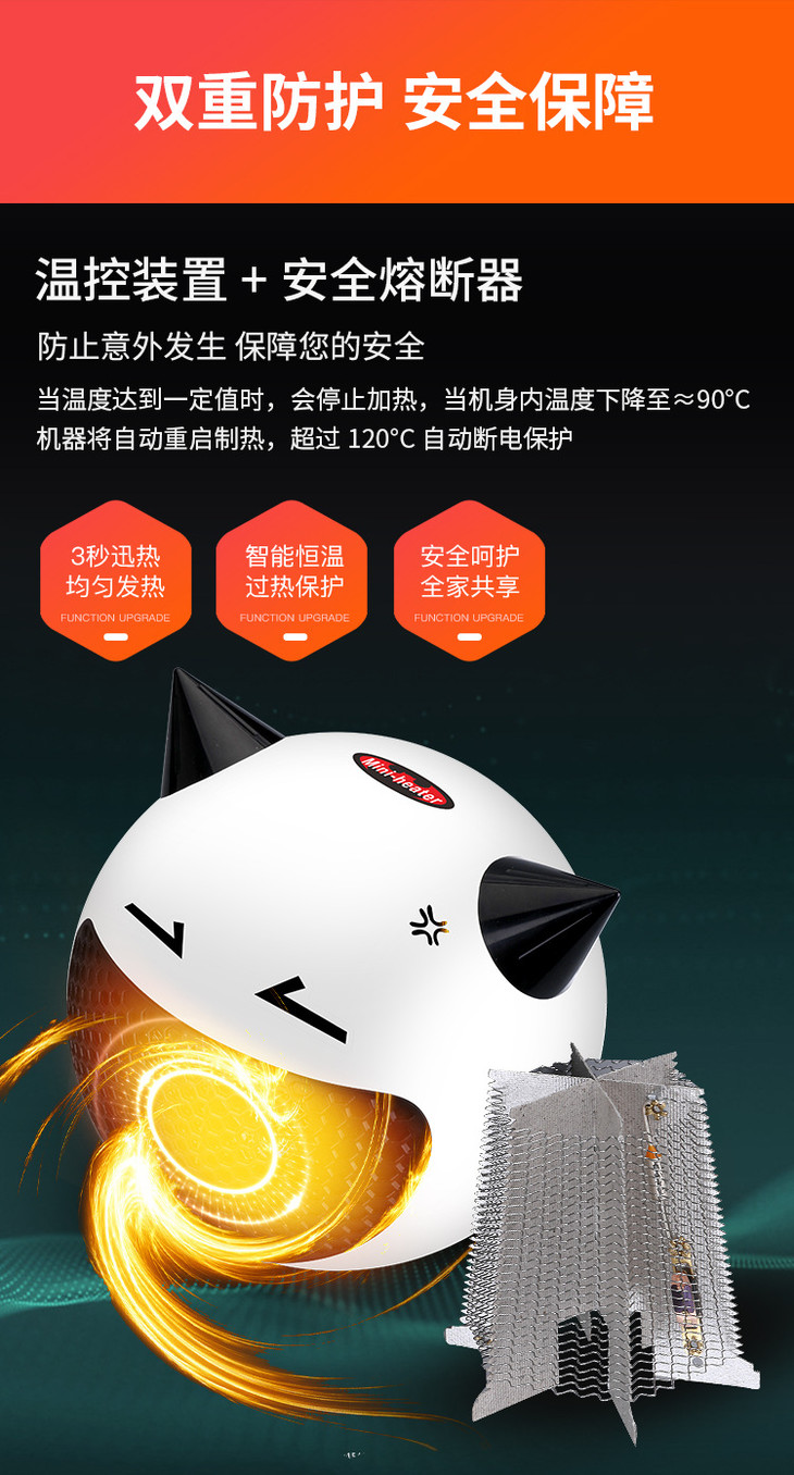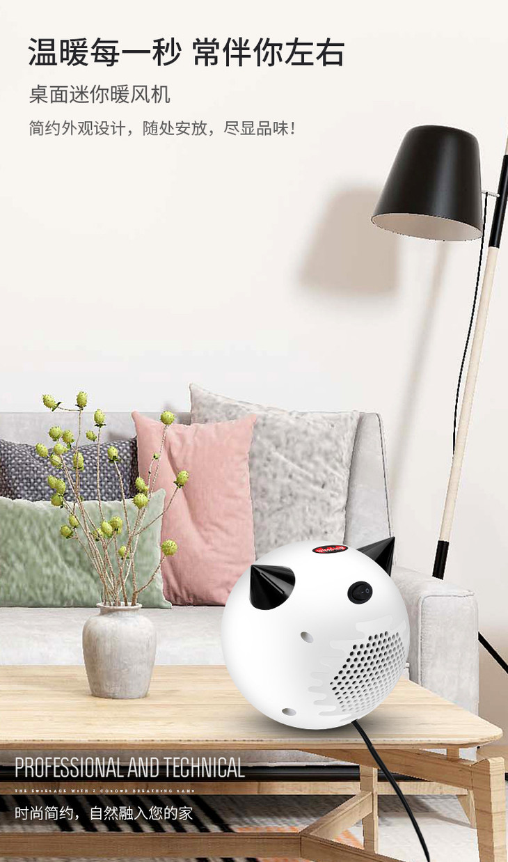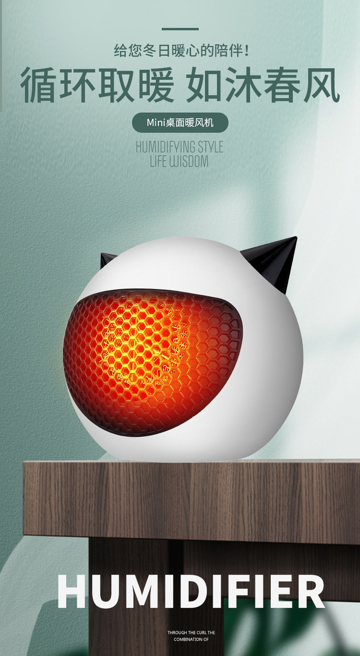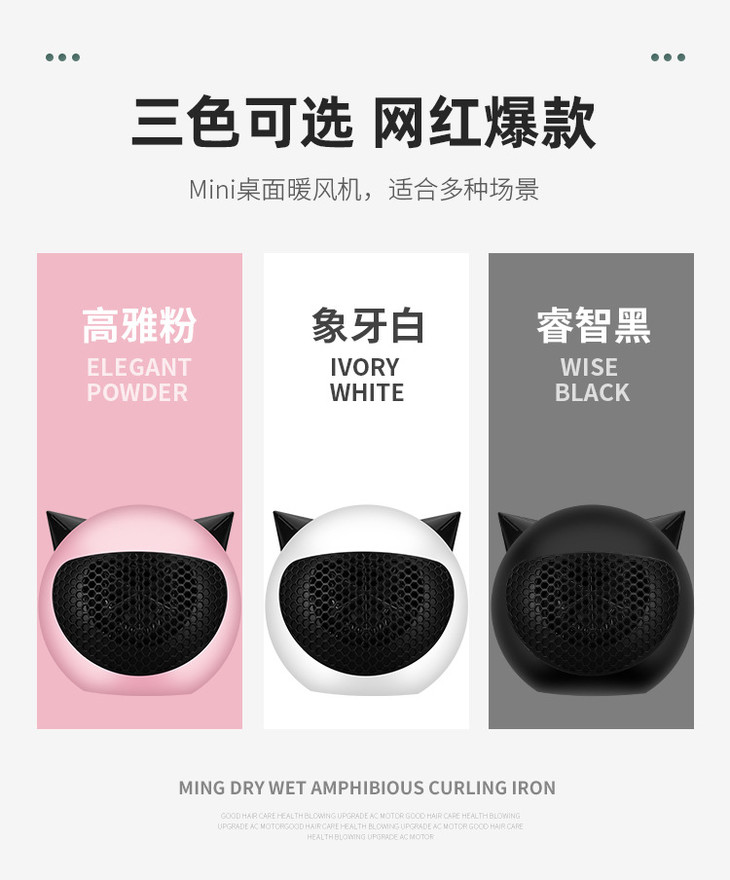 【网红新宠即开即热】2021新款小恶魔速热暖风机智能控温过热断电3色可选赠送贴纸家用小型迷你桌面暖风机