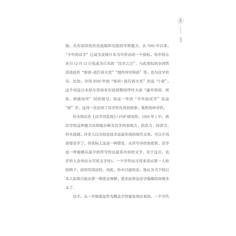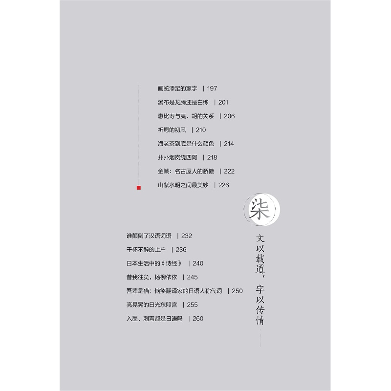 本书选取了日本日常使用的汉字、汉语词汇,以“一字、一词”对应“一物、一景、一事”的方式,给读者提供另一个解读中日文化的窗口,并侧重从字源、字意角度,来探讨这些汉字及汉字背后的文化。