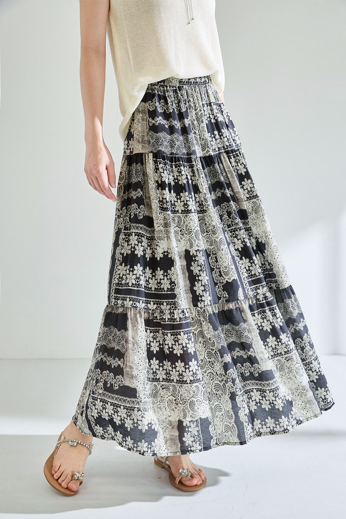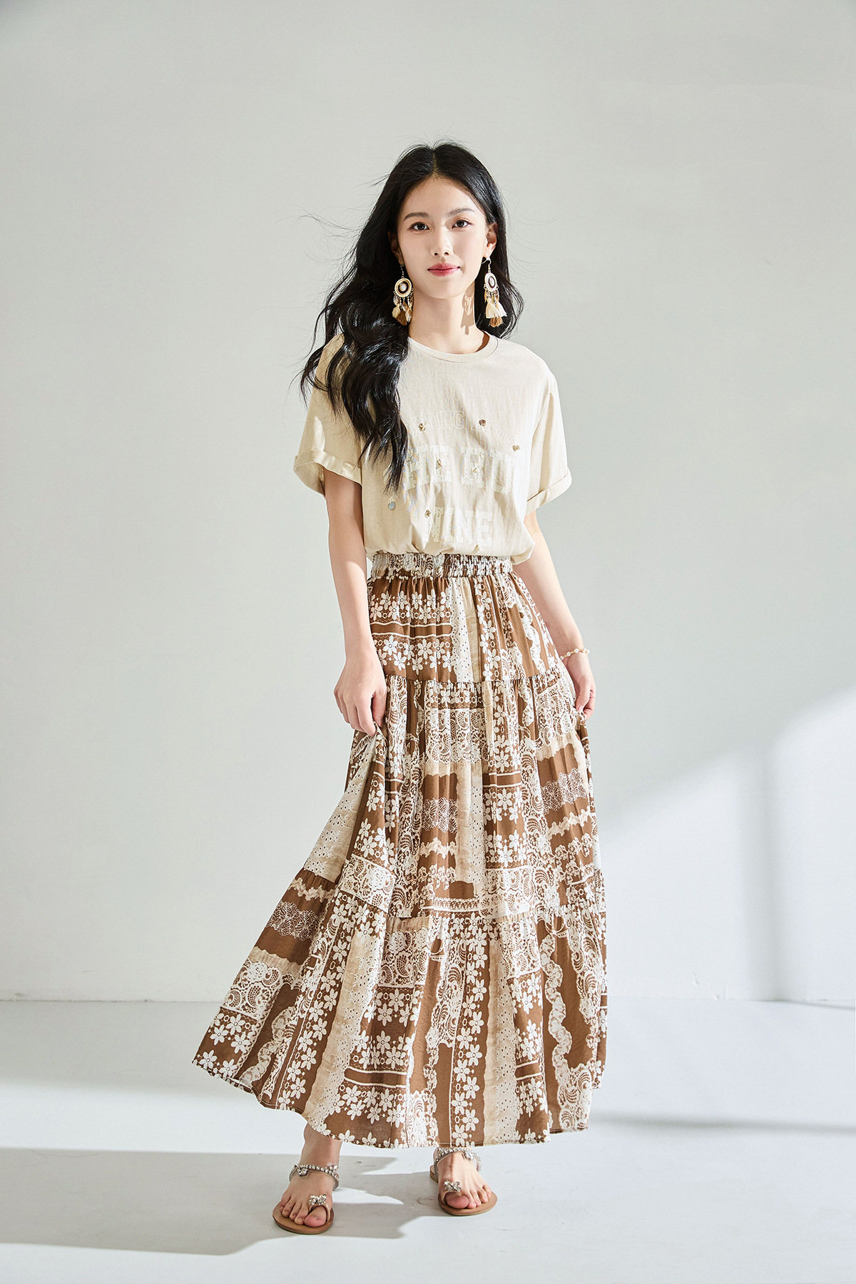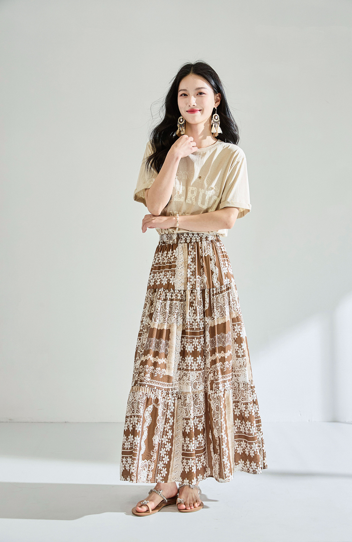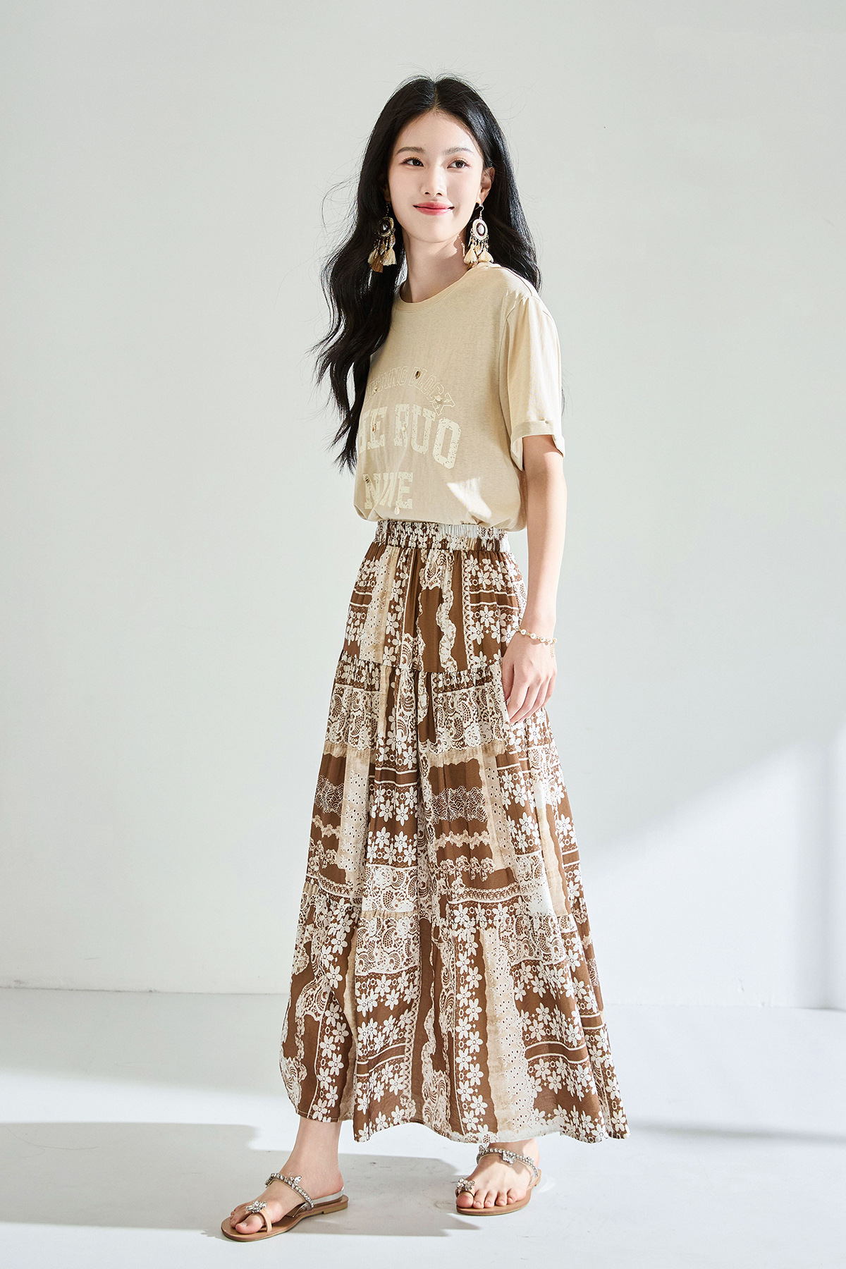 「高货sh」全新升级【铂金会员183/天猫239/差价56】(41331)洛诗琳夏季波西米亚印花拼接松紧腰A字显瘦大摆碎花半身裙
