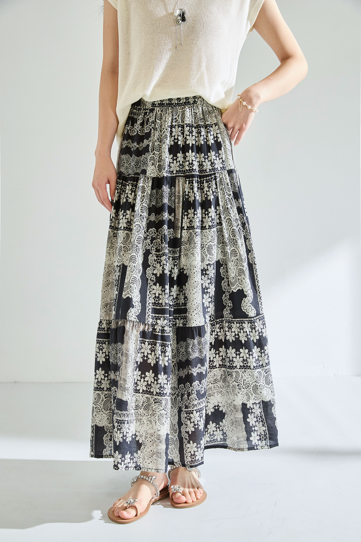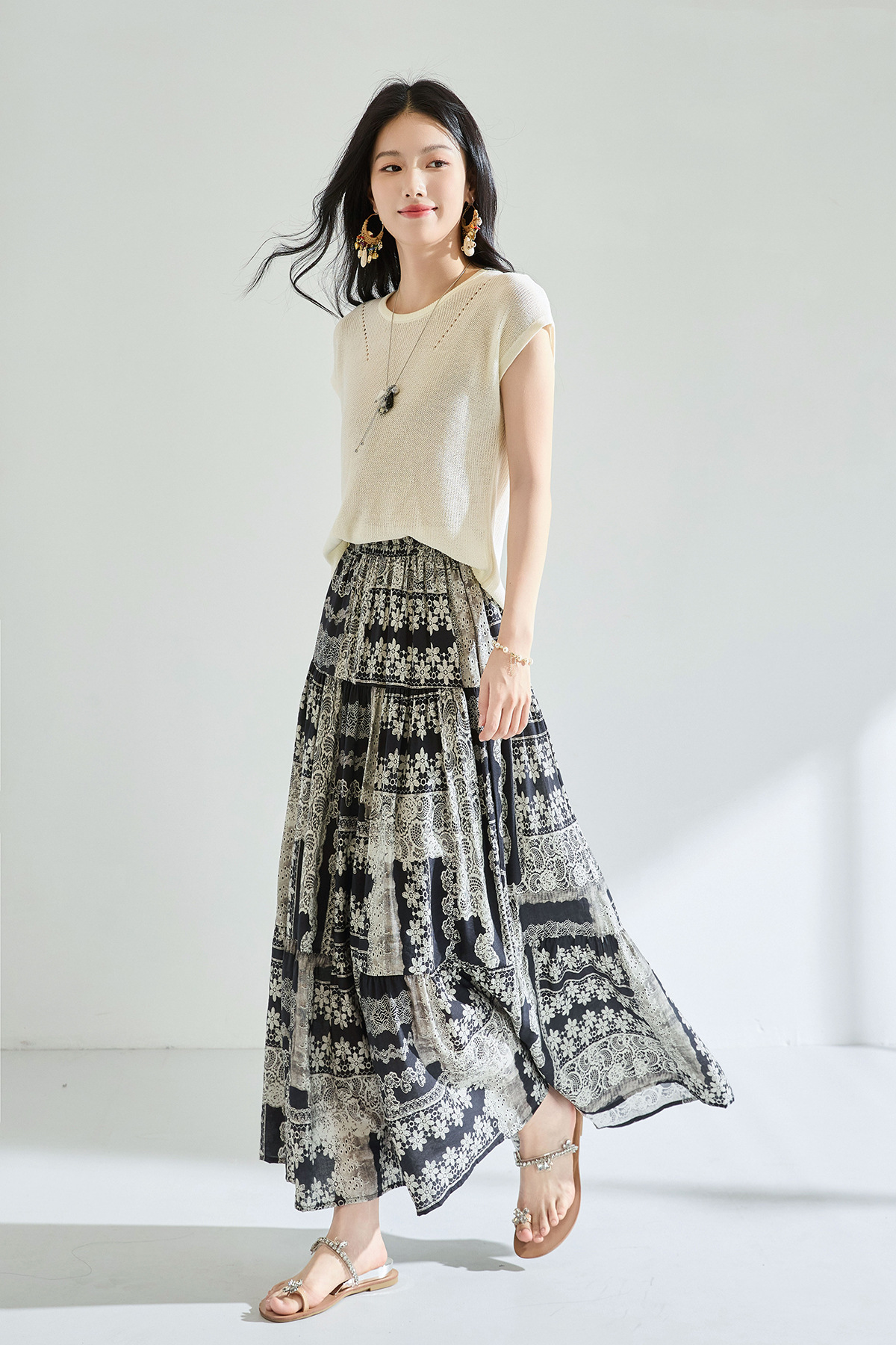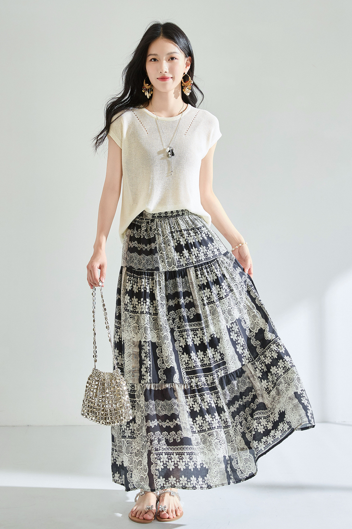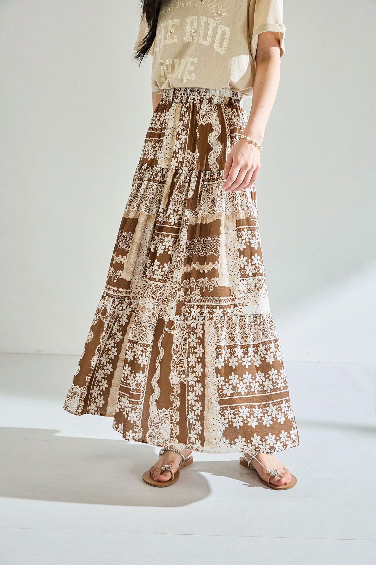 「高货sh」全新升级【铂金会员183/天猫239/差价56】(41331)洛诗琳夏季波西米亚印花拼接松紧腰A字显瘦大摆碎花半身裙
