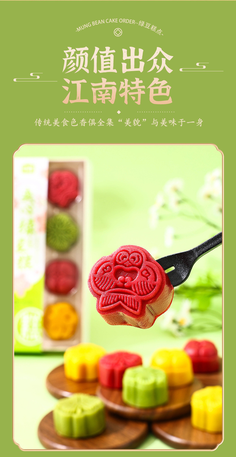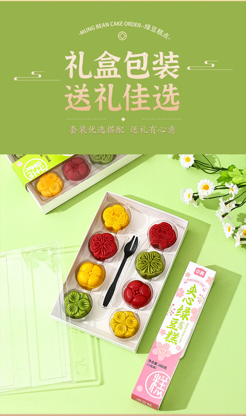 【口感细腻!送人即佳】网红绿豆糕茶点中式早餐点心摆盘特产绿豆饼传统糕点零食。xa