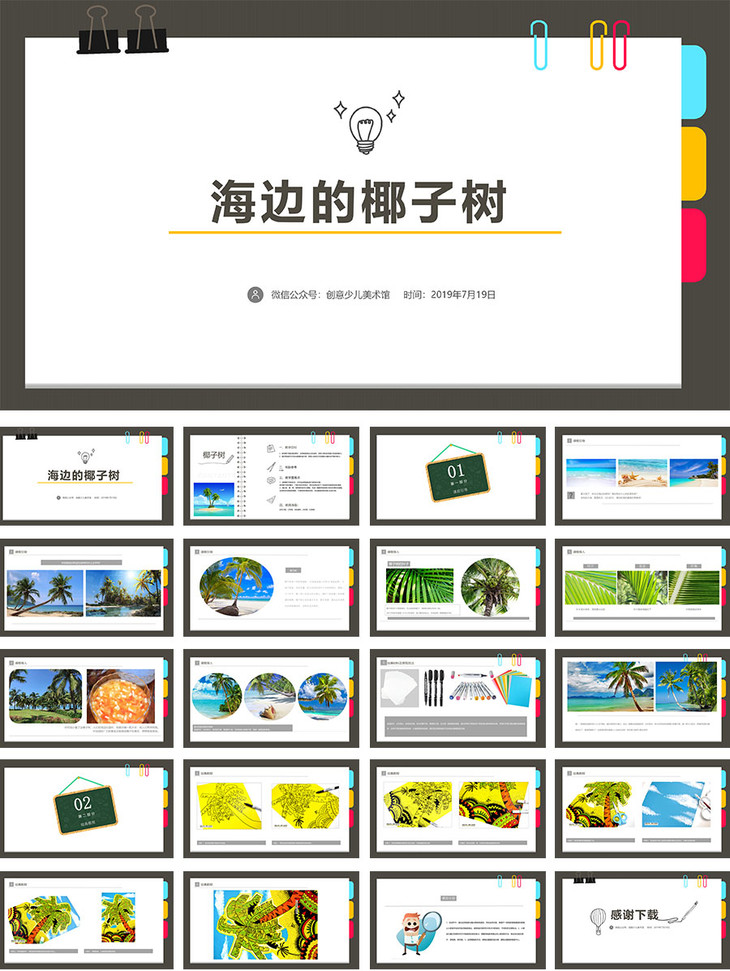 1、表现椰子树的形态,并学会运用线条进行装饰和丰富。
