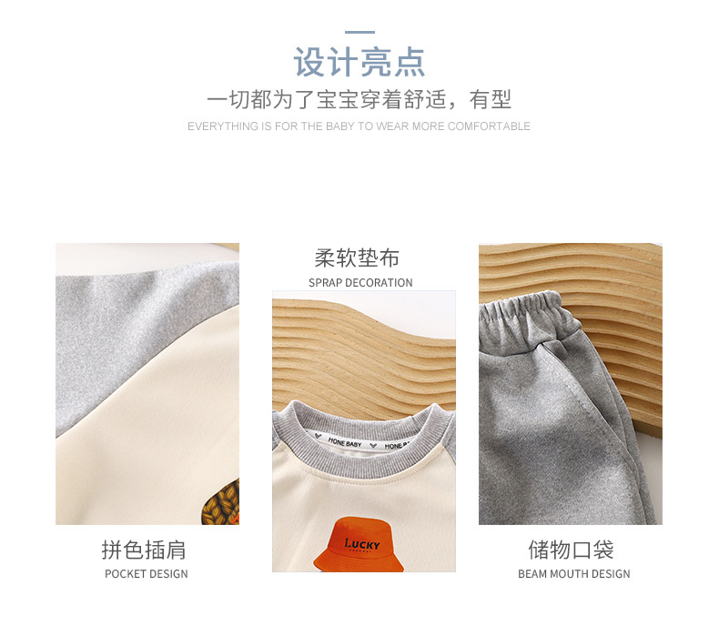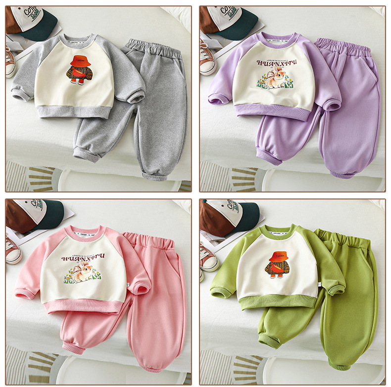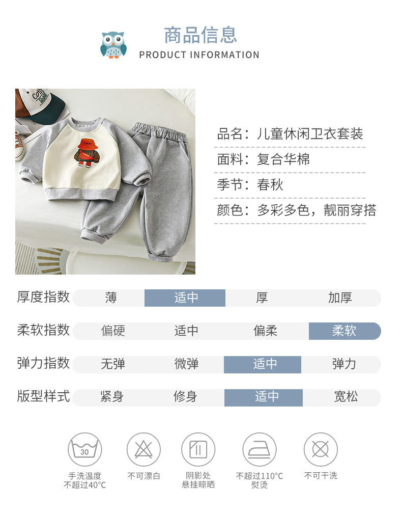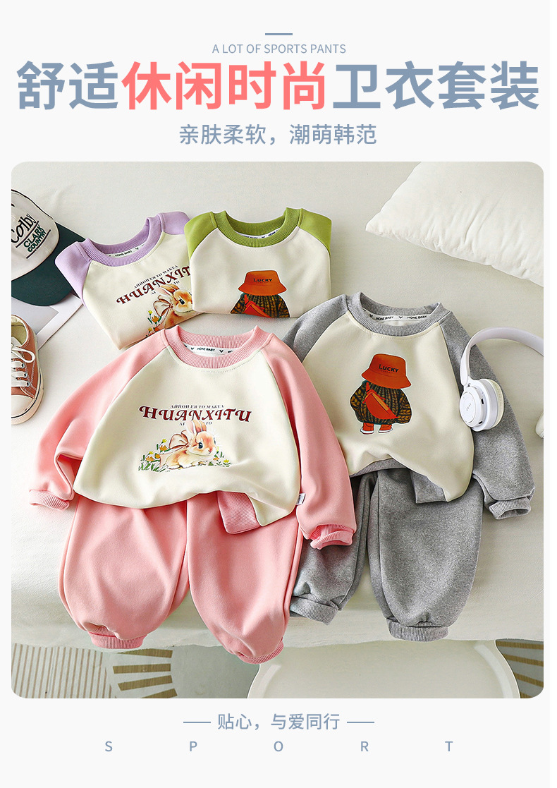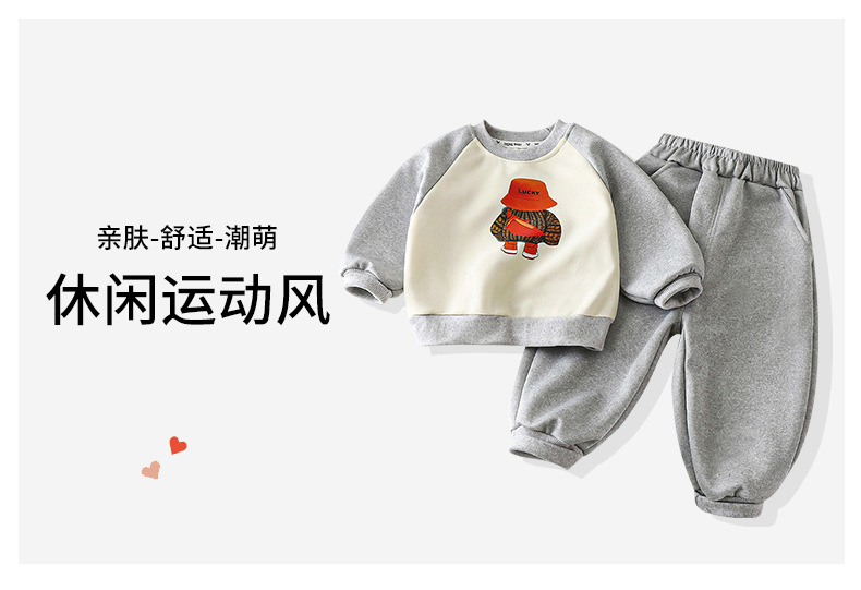 【亲肤柔软,潮萌韩范~】儿童卫衣套装 秋季新款 男童衣服 女童韩版运动套装 休闲童装-QQ