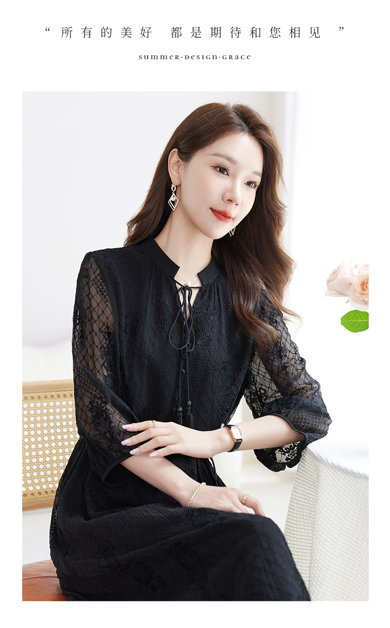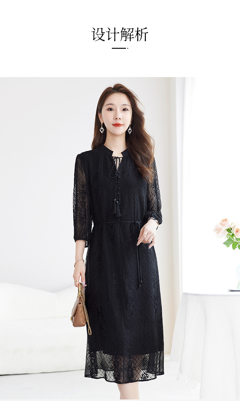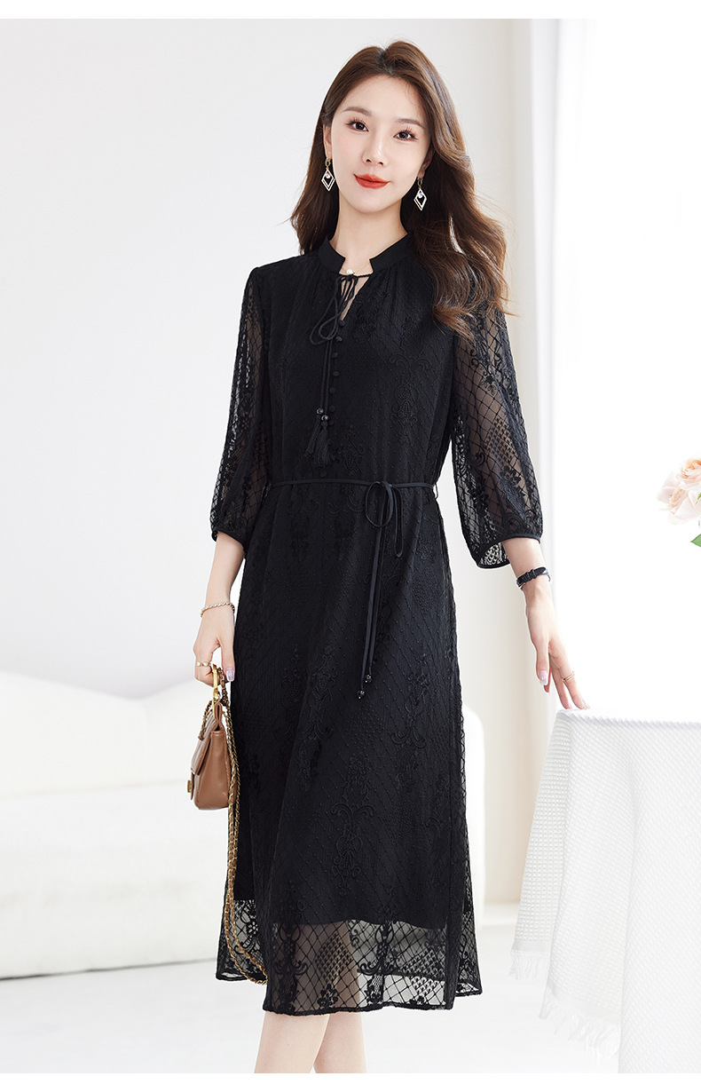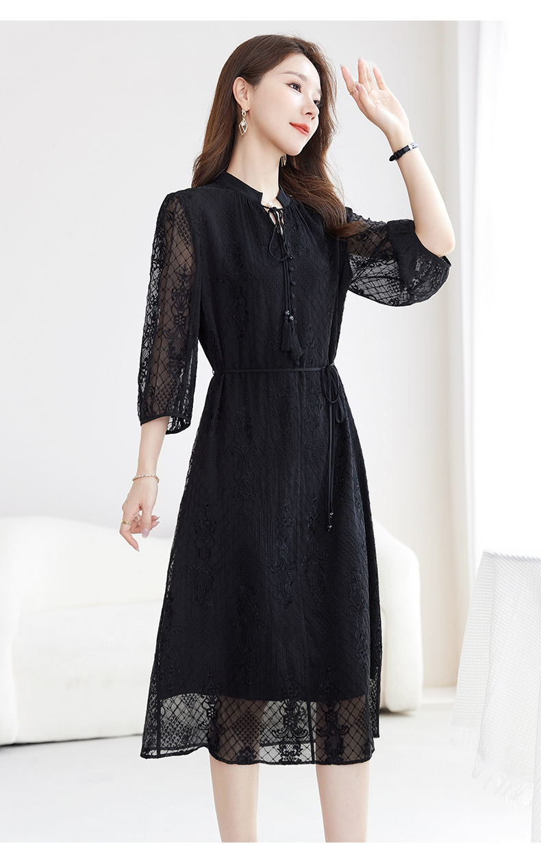 QS-82501031【5A桑蚕丝】中大淑女装100%真丝绣花连衣裙立领收腰中长裙子1031