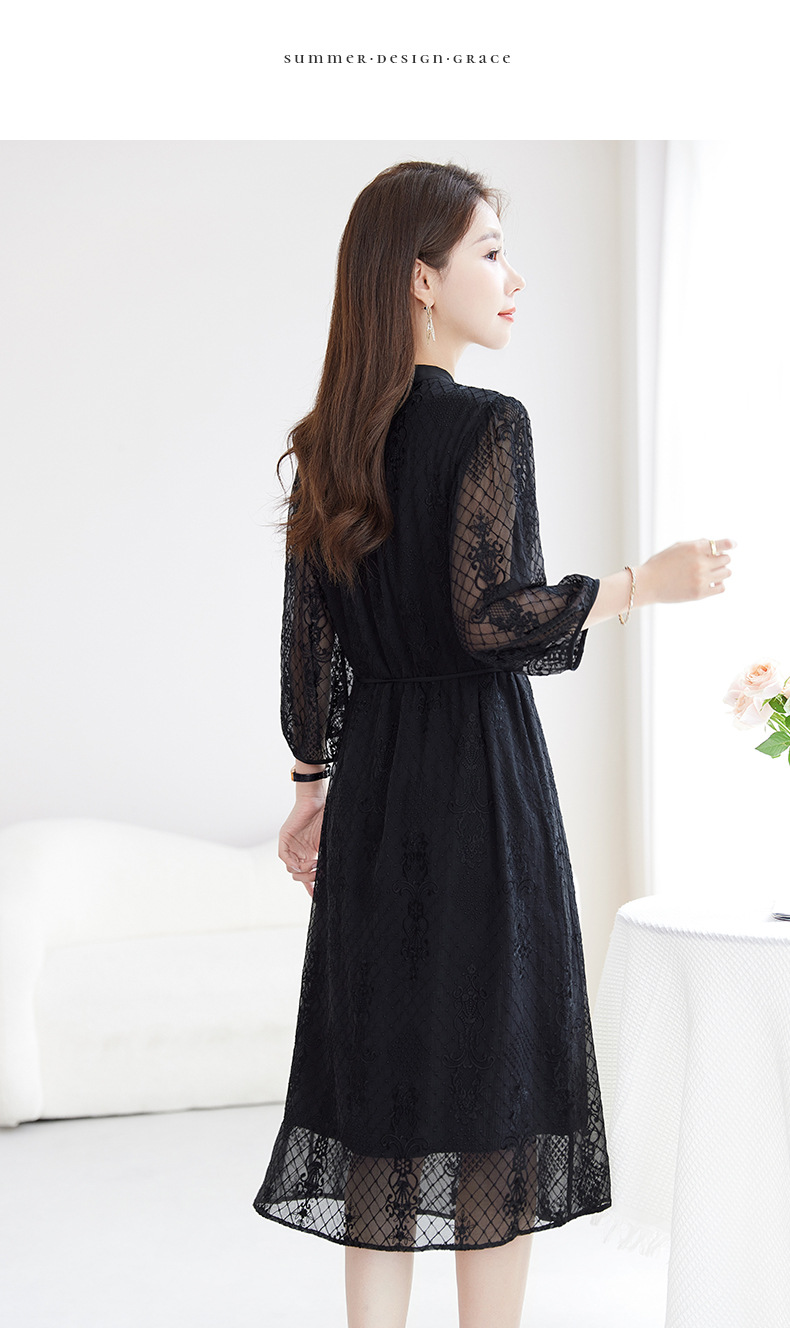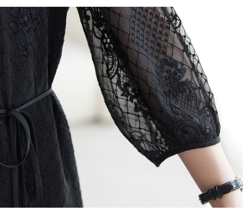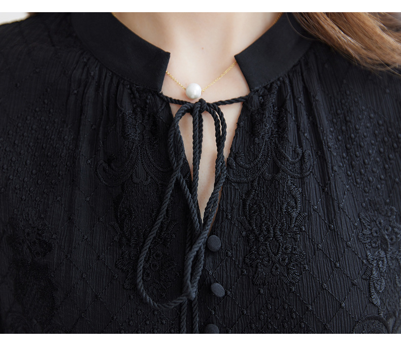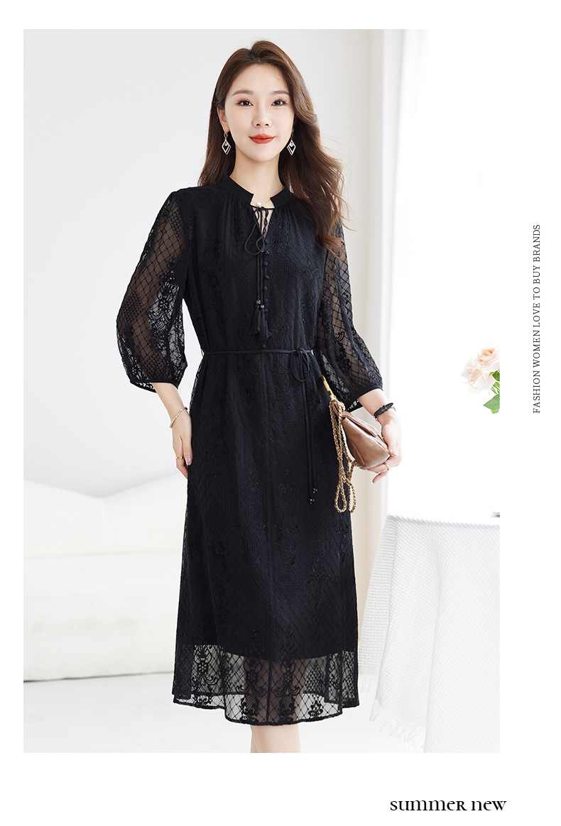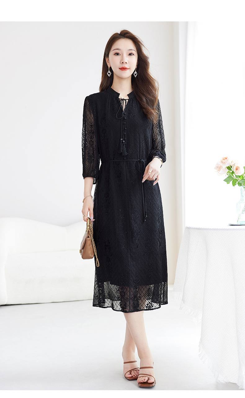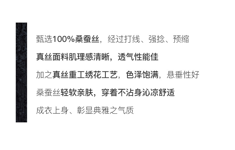 QS-82501031【5A桑蚕丝】中大淑女装100%真丝绣花连衣裙立领收腰中长裙子1031
