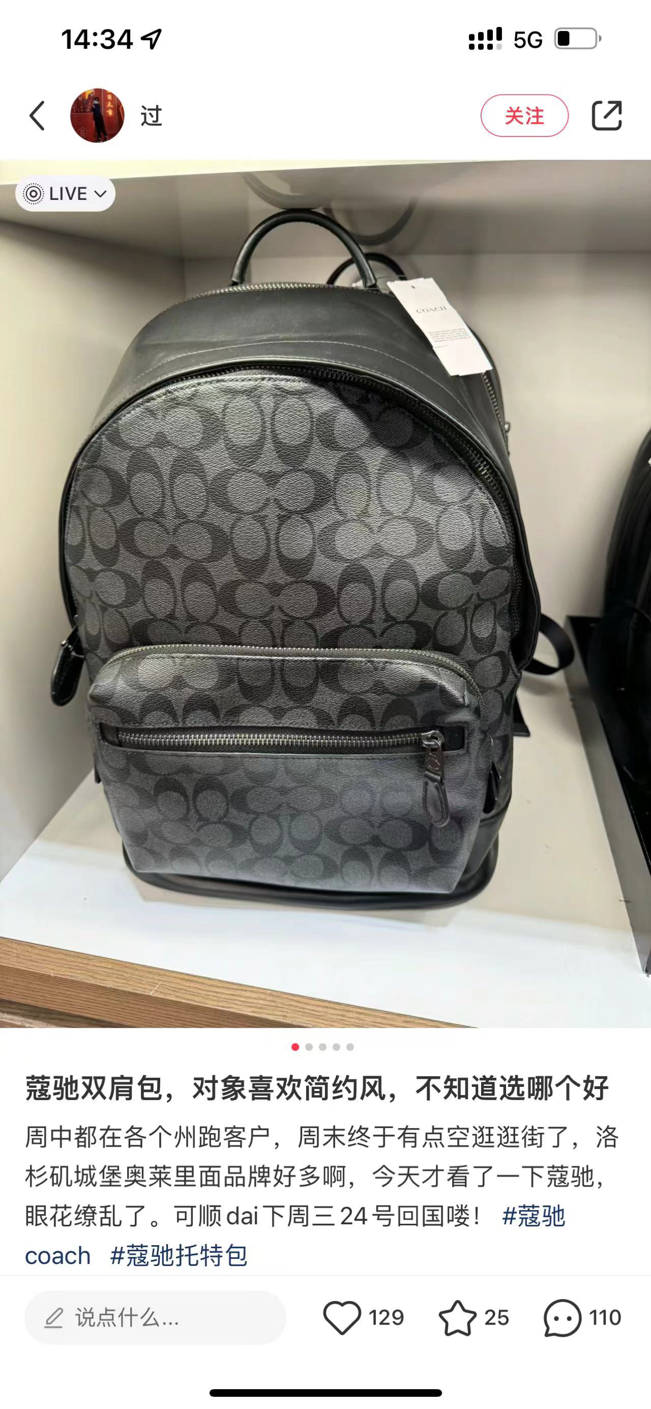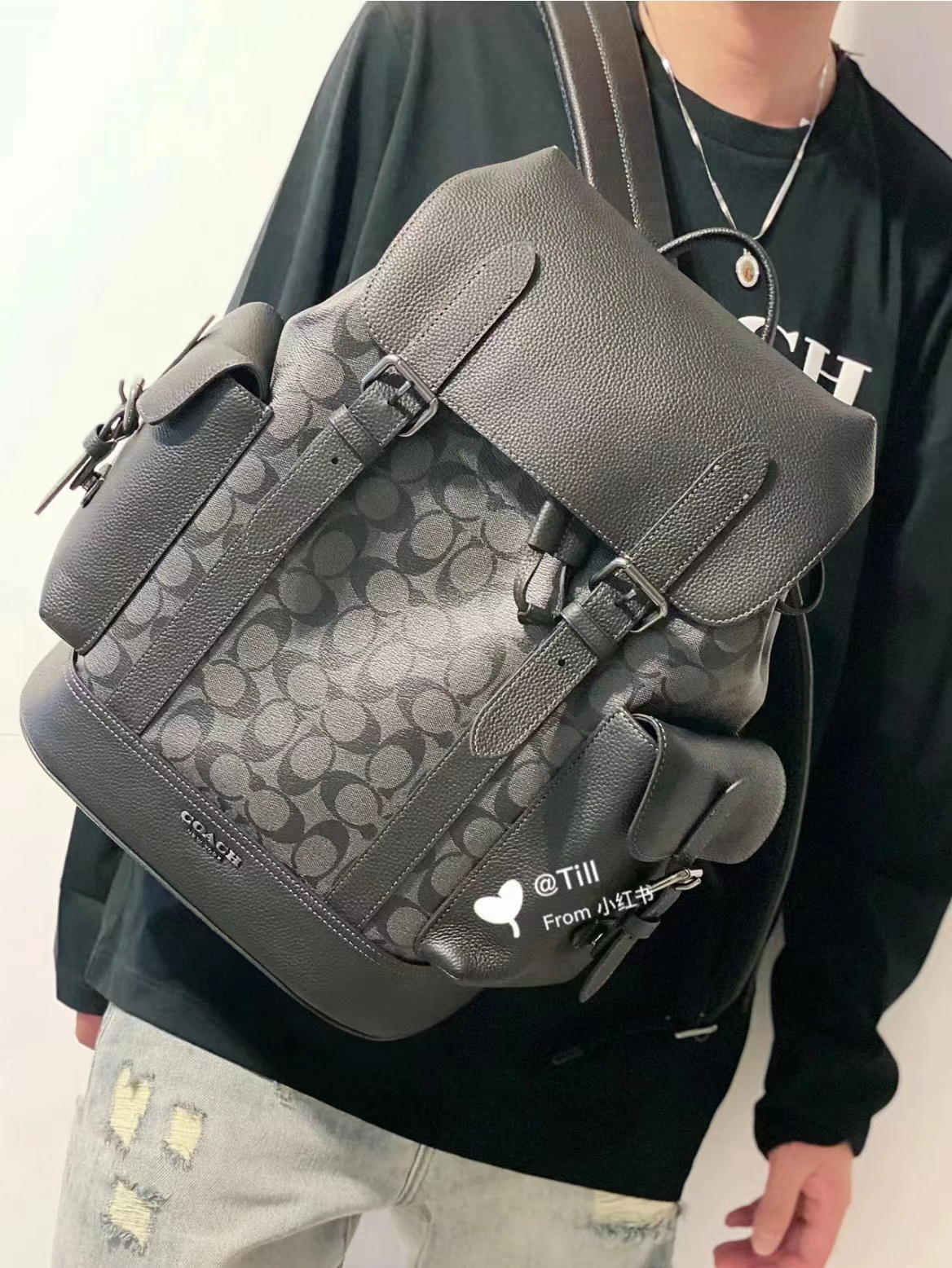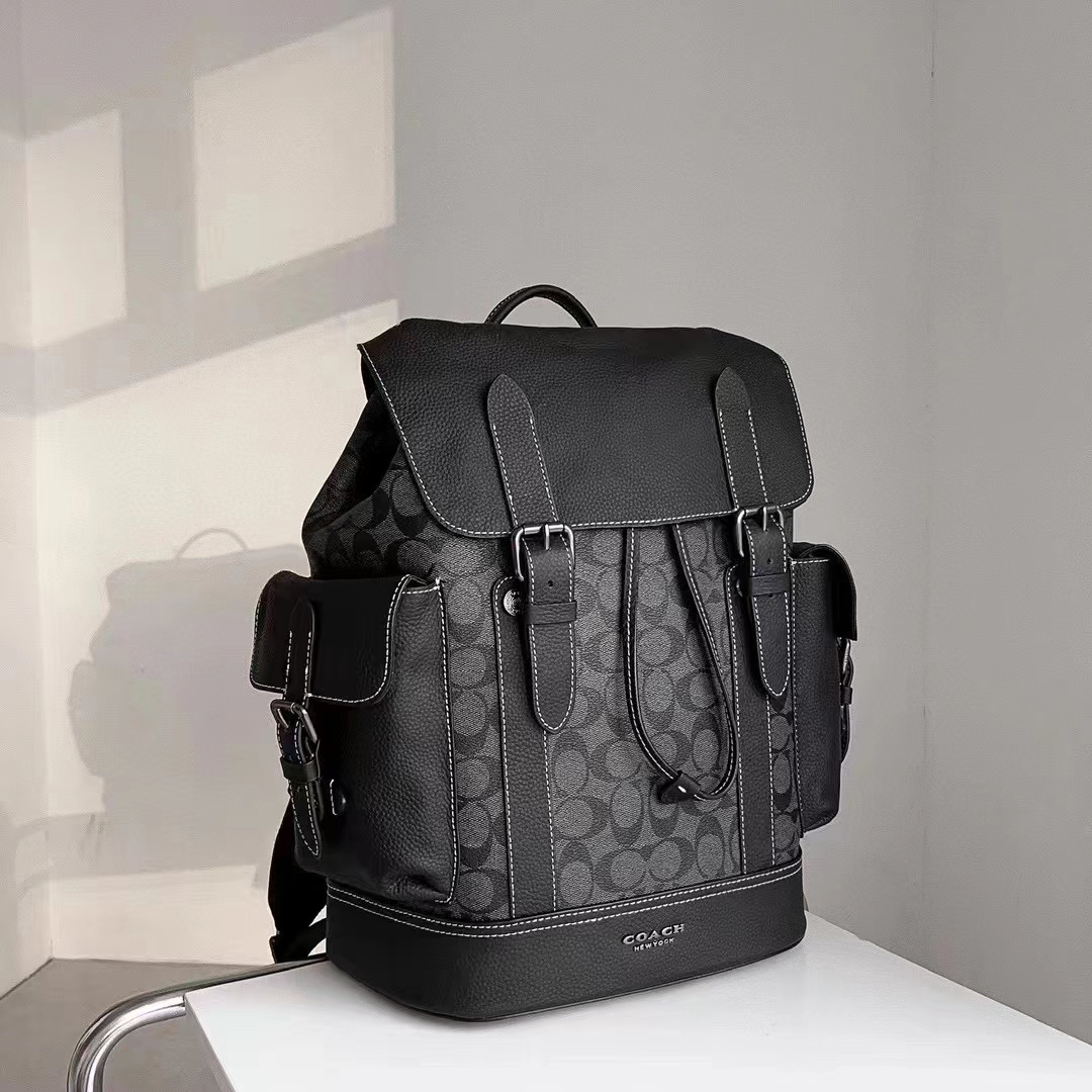COA** 男士HUDSON翻盖双肩包 书包 登山包 背包 旅行包 经典老花款头层牛皮,超大容量,尺寸约42.29.13