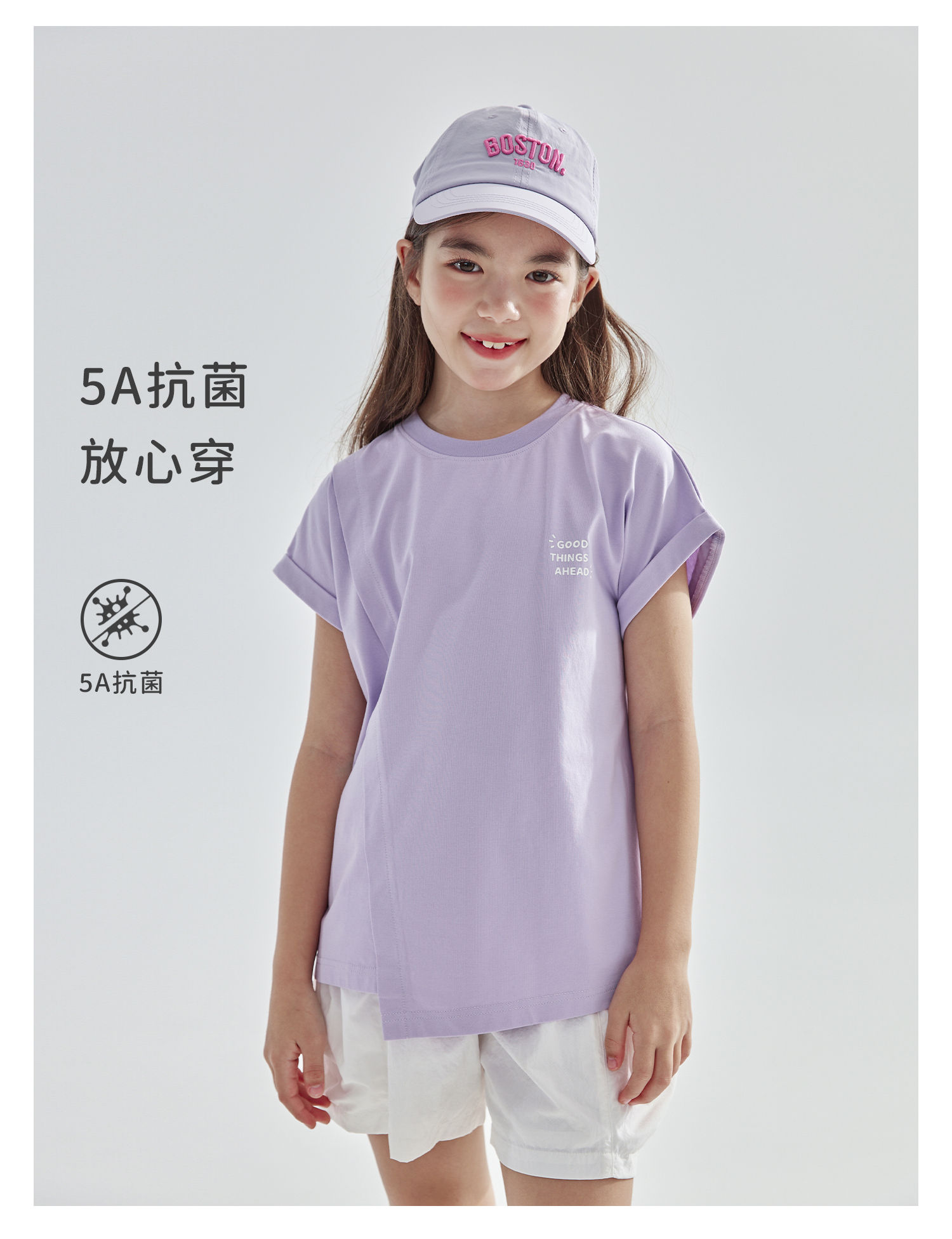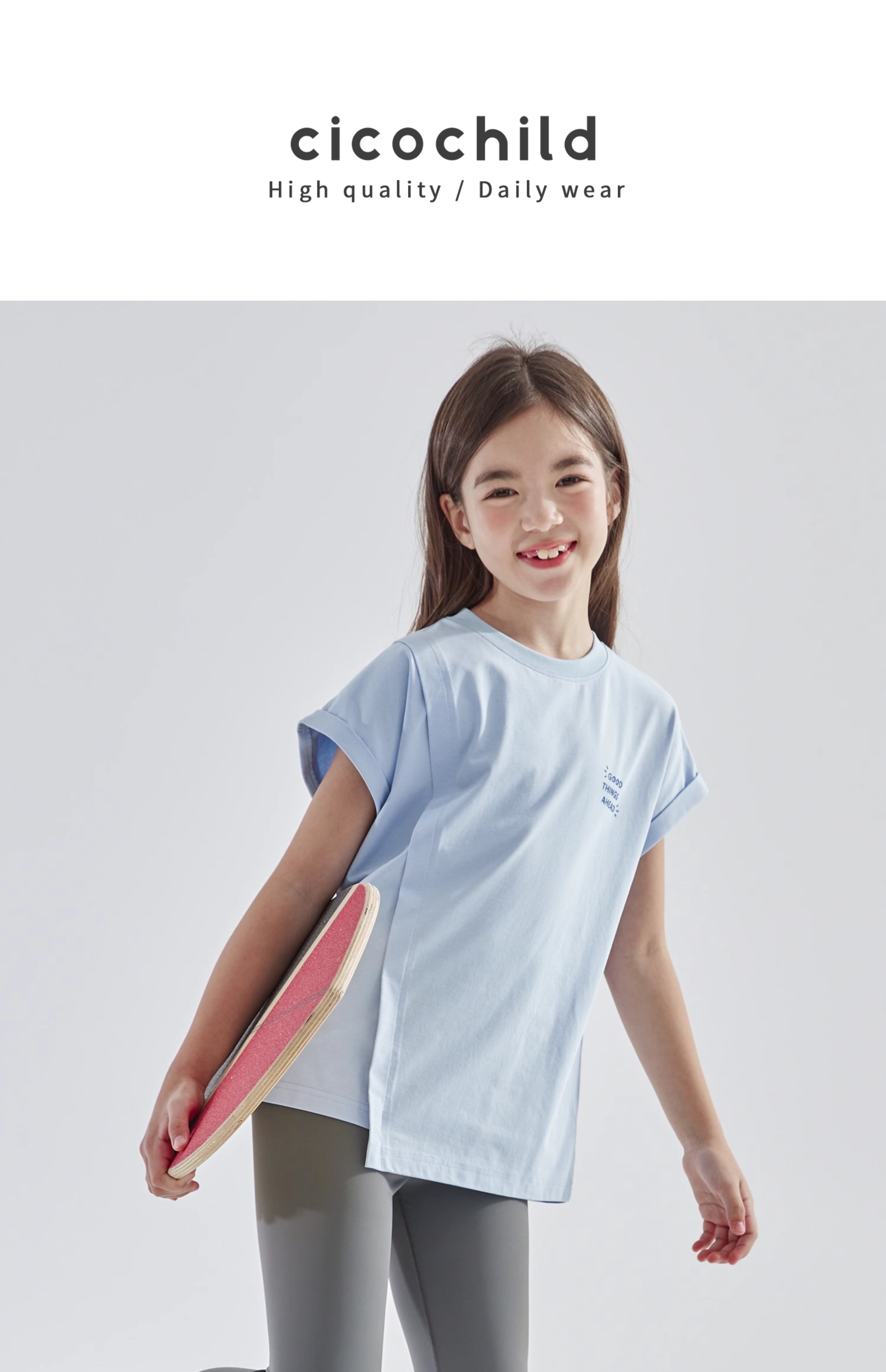 cicochild 2025年夏季新款亲子中大女童凉感抗菌卷边短袖T恤