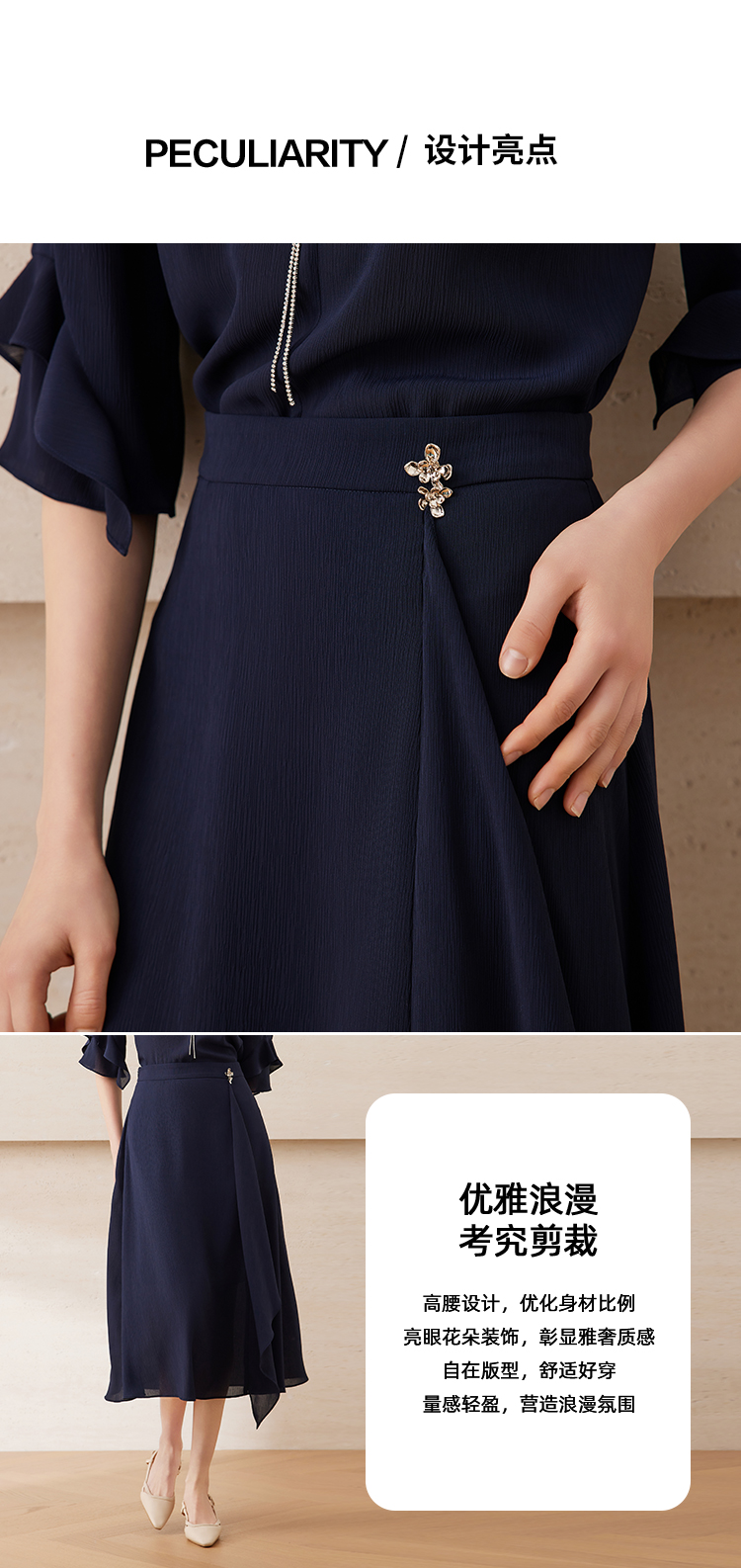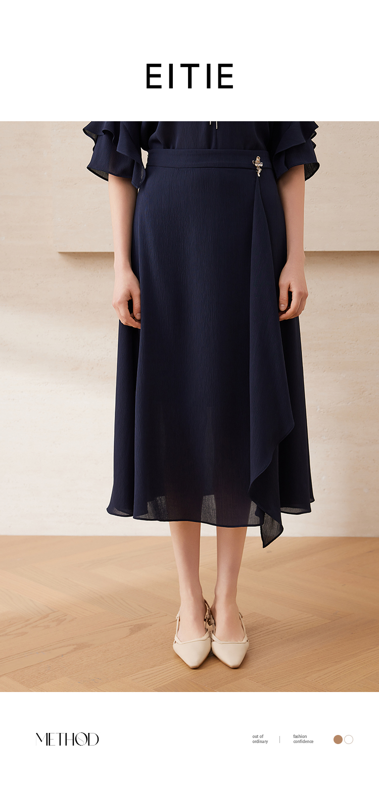 【深蓝色a字半身裙】EITIE爱特爱优雅通勤高腰显瘦2025夏新款B2506608
