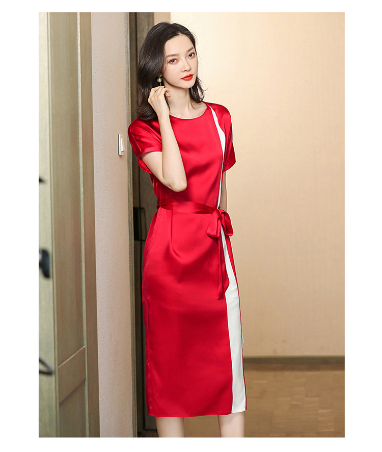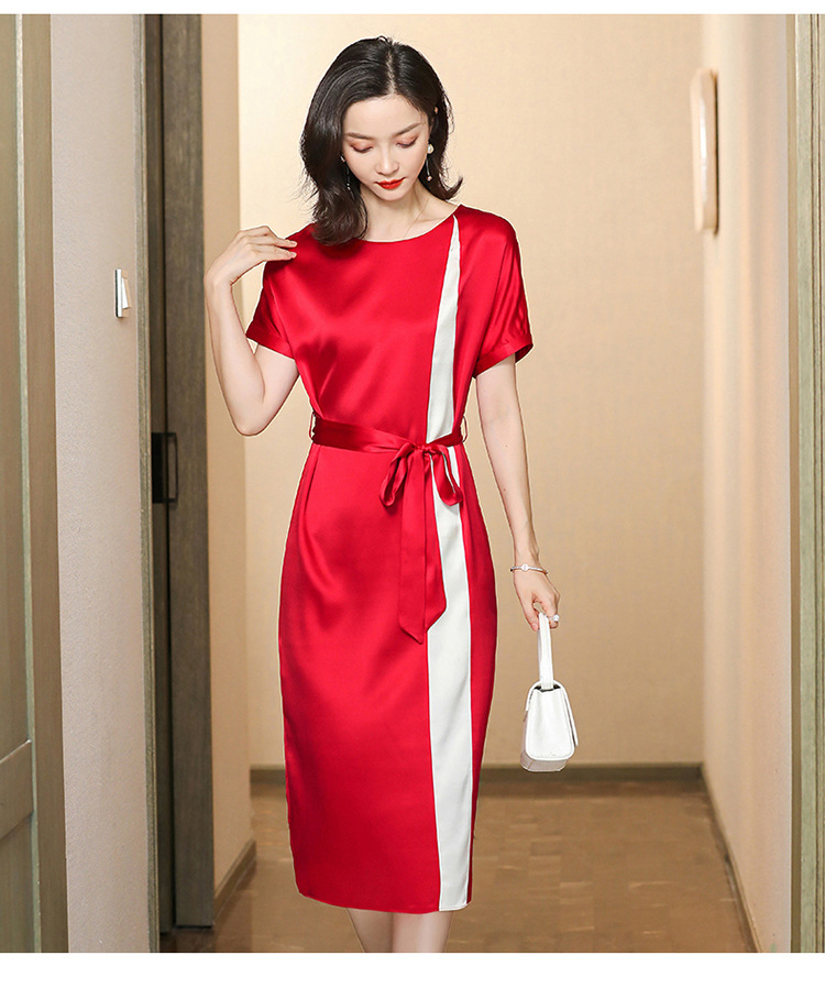 LS-6653杭州桑蚕丝拼接收腰显瘦气质2020新款性感遮肚裙子
