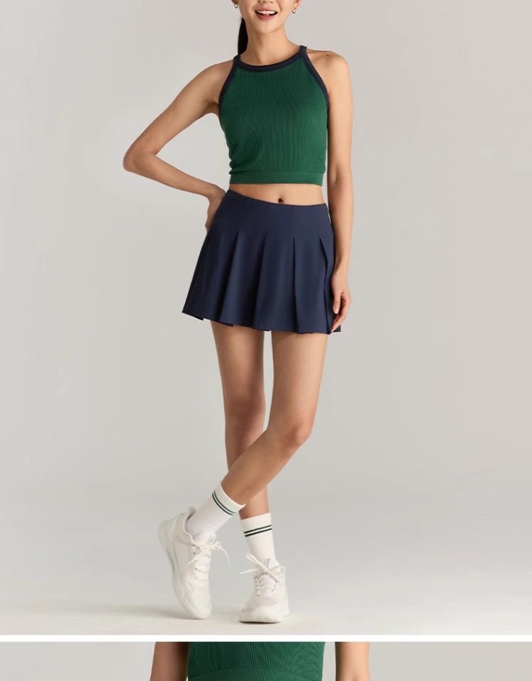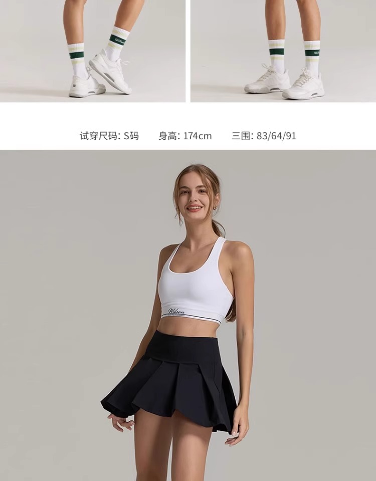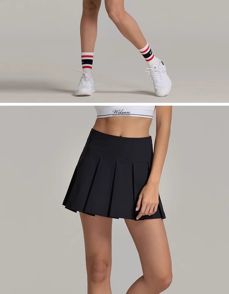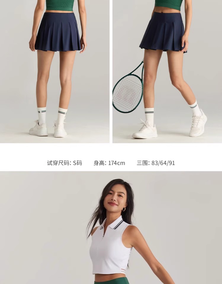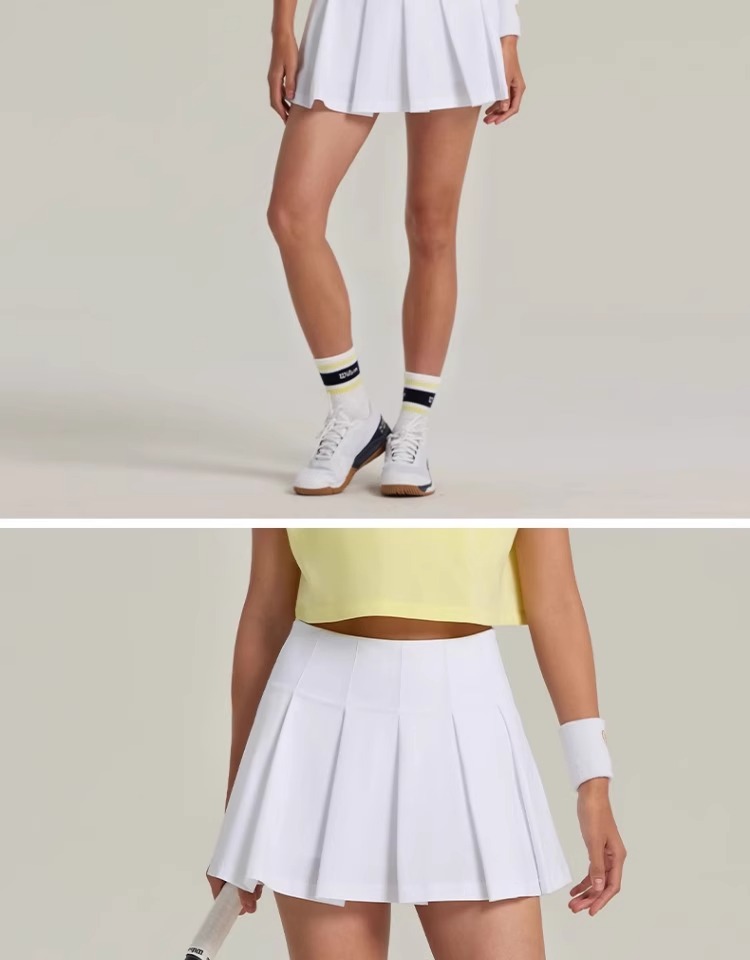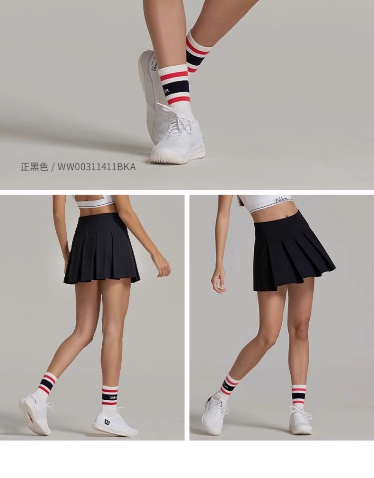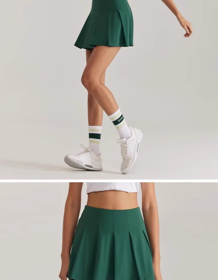 跃牌【美西西系列】跳操假两件短裤高腰防走光跑步速干健身瑜伽短裙运动百褶网球裙DK-060