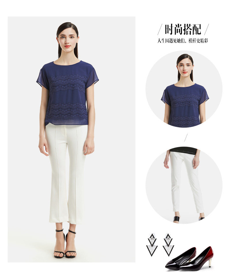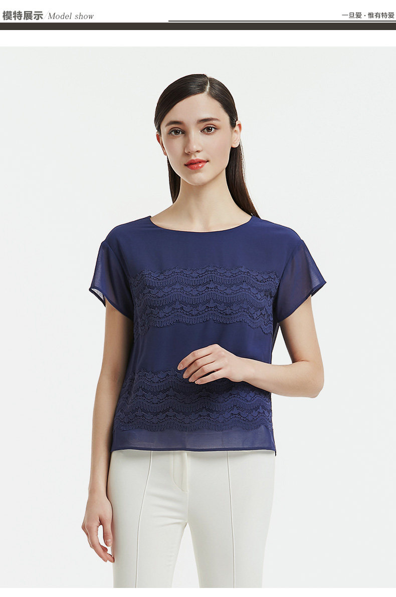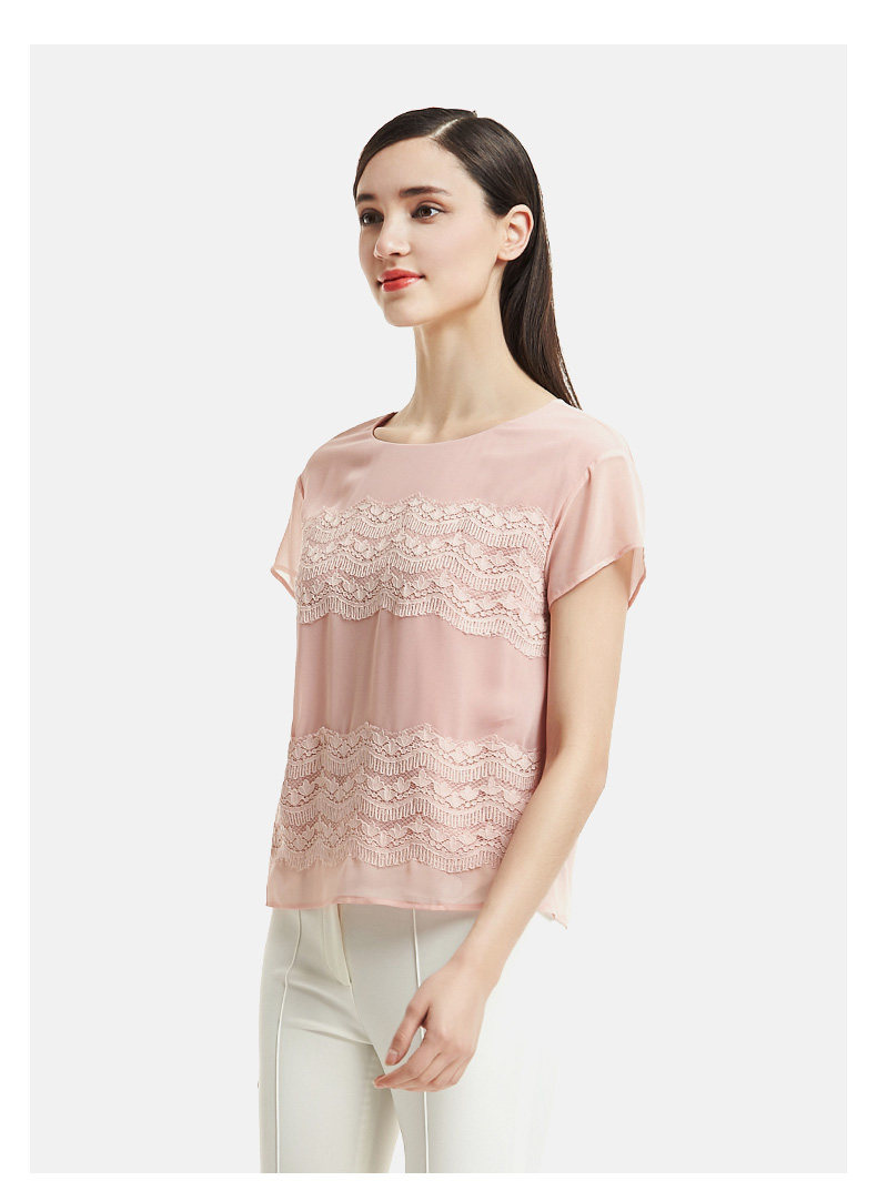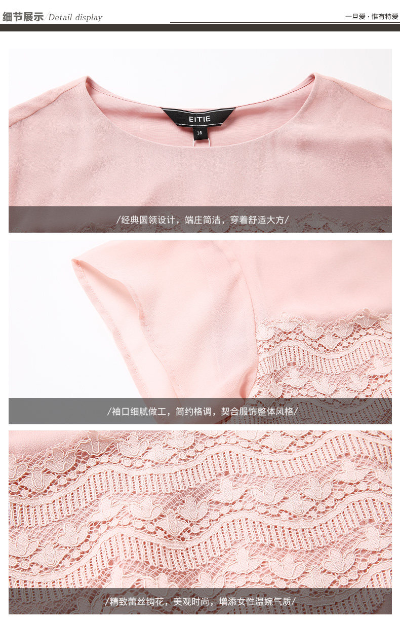 EITIE爱特爱女装夏季蕾丝钩花短袖T恤上衣宽松百搭5513227