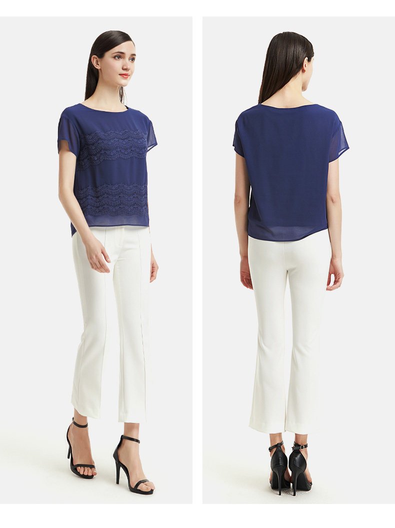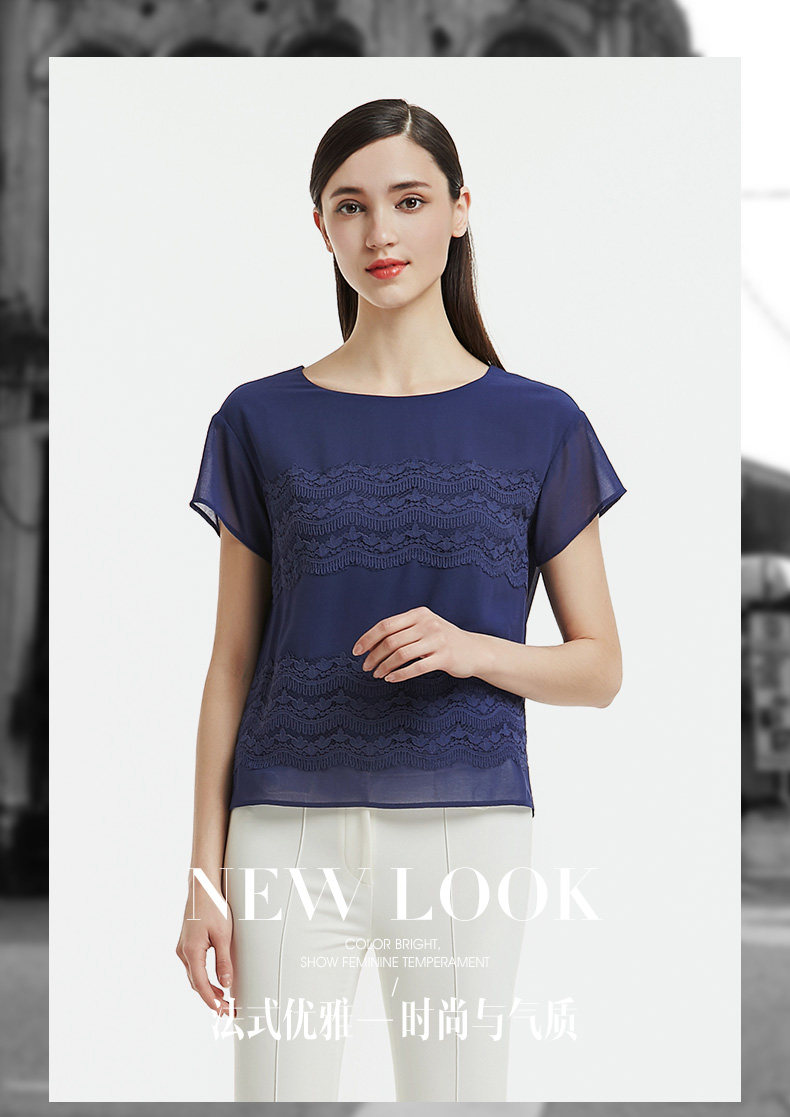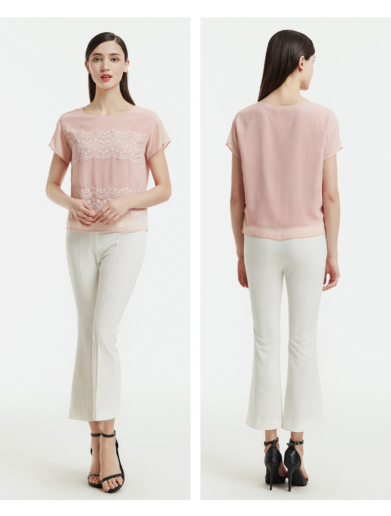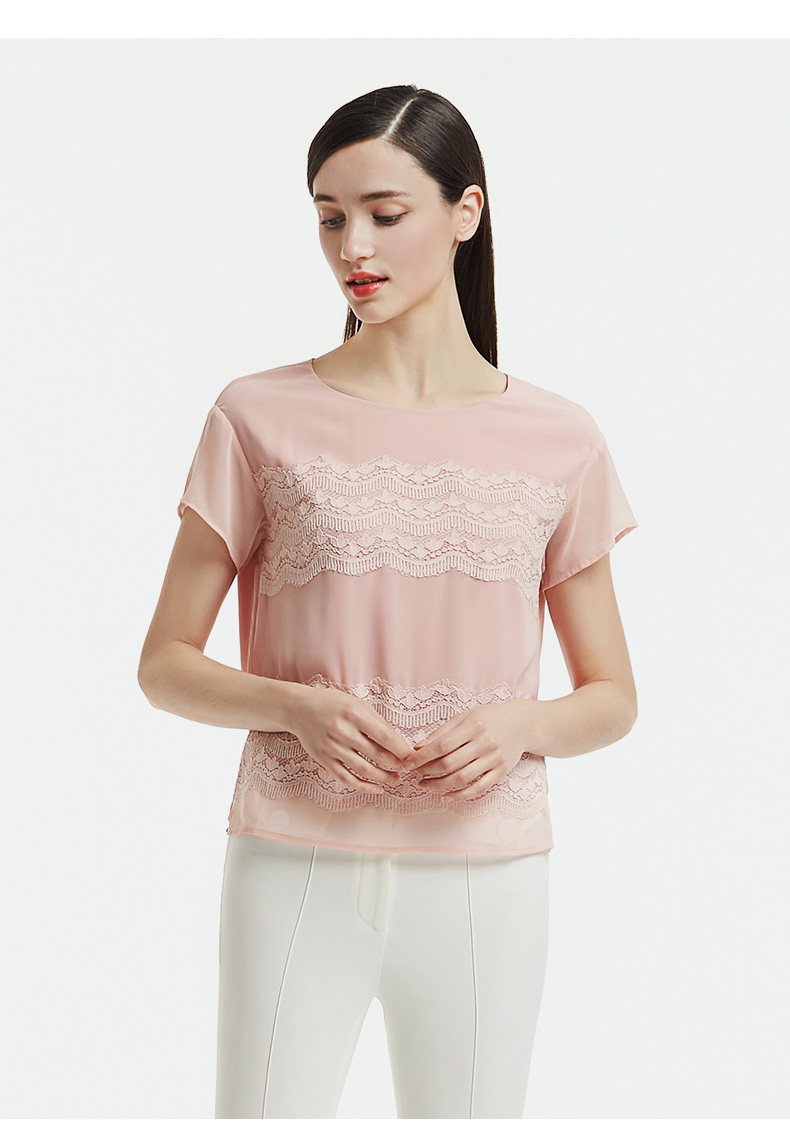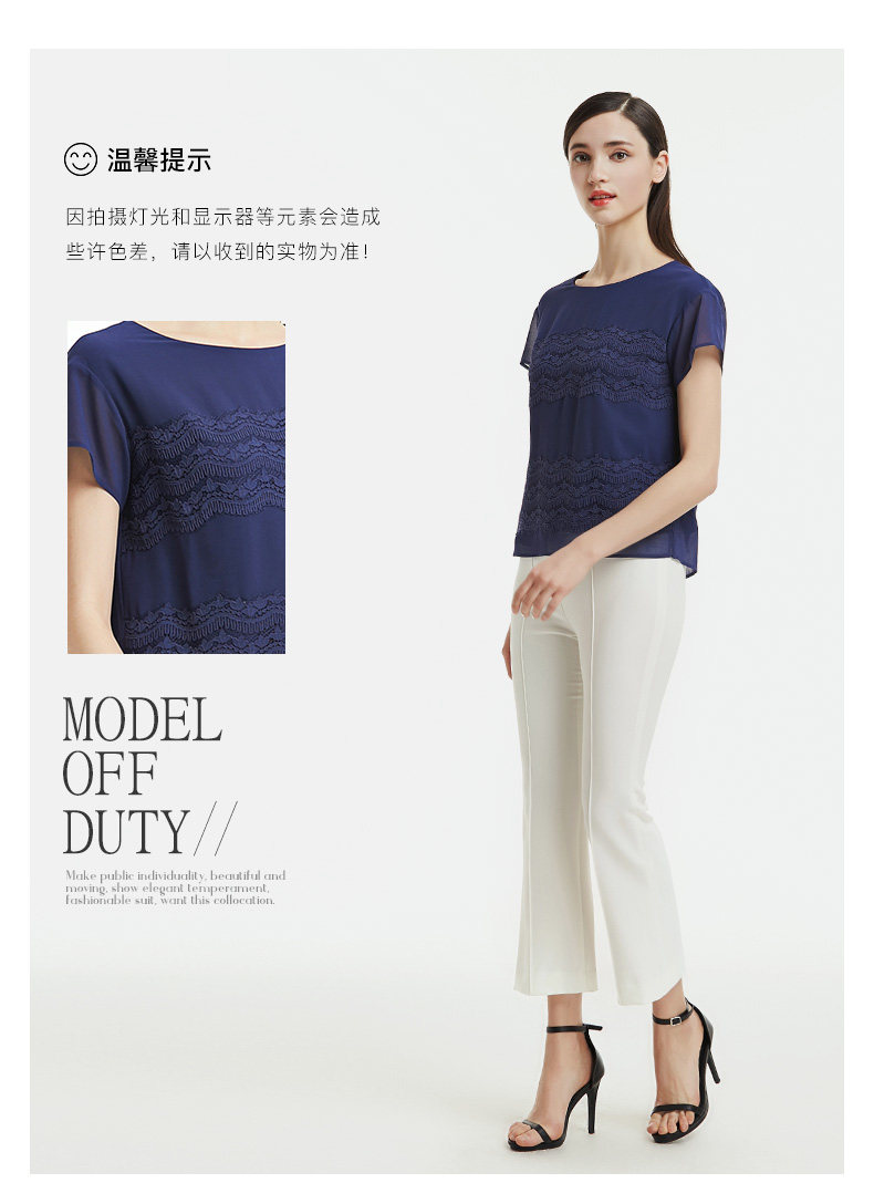 EITIE爱特爱女装夏季蕾丝钩花短袖T恤上衣宽松百搭5513227