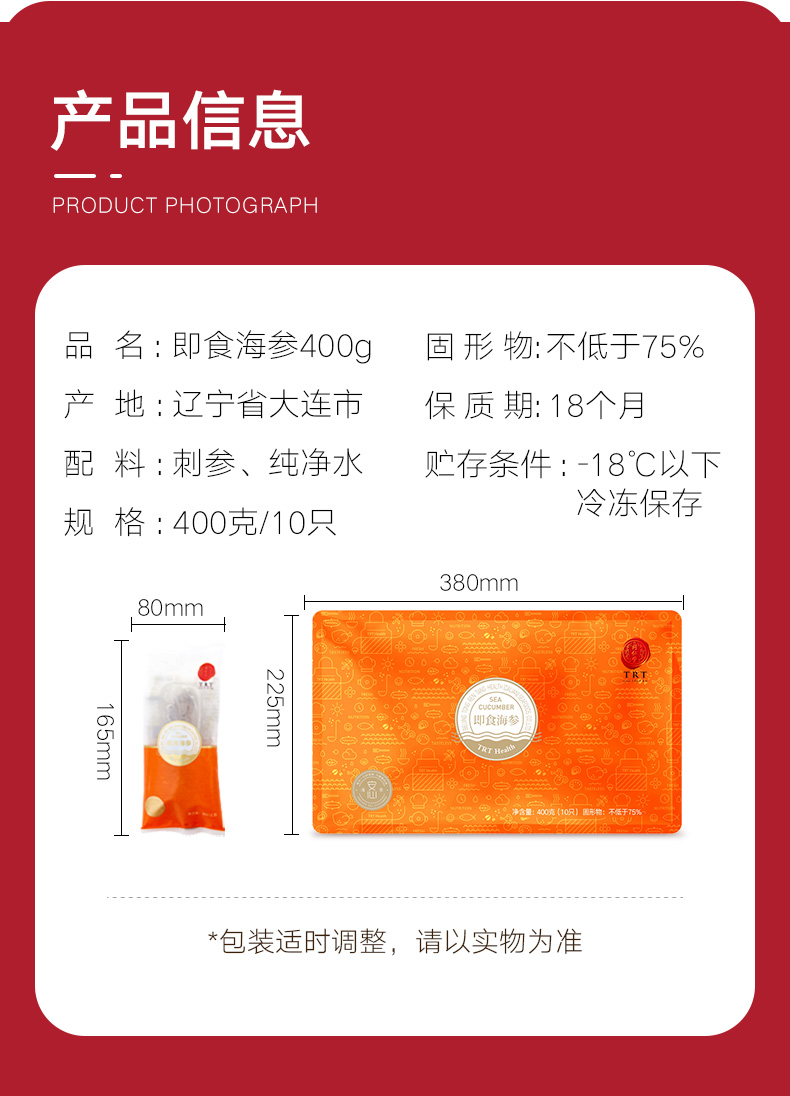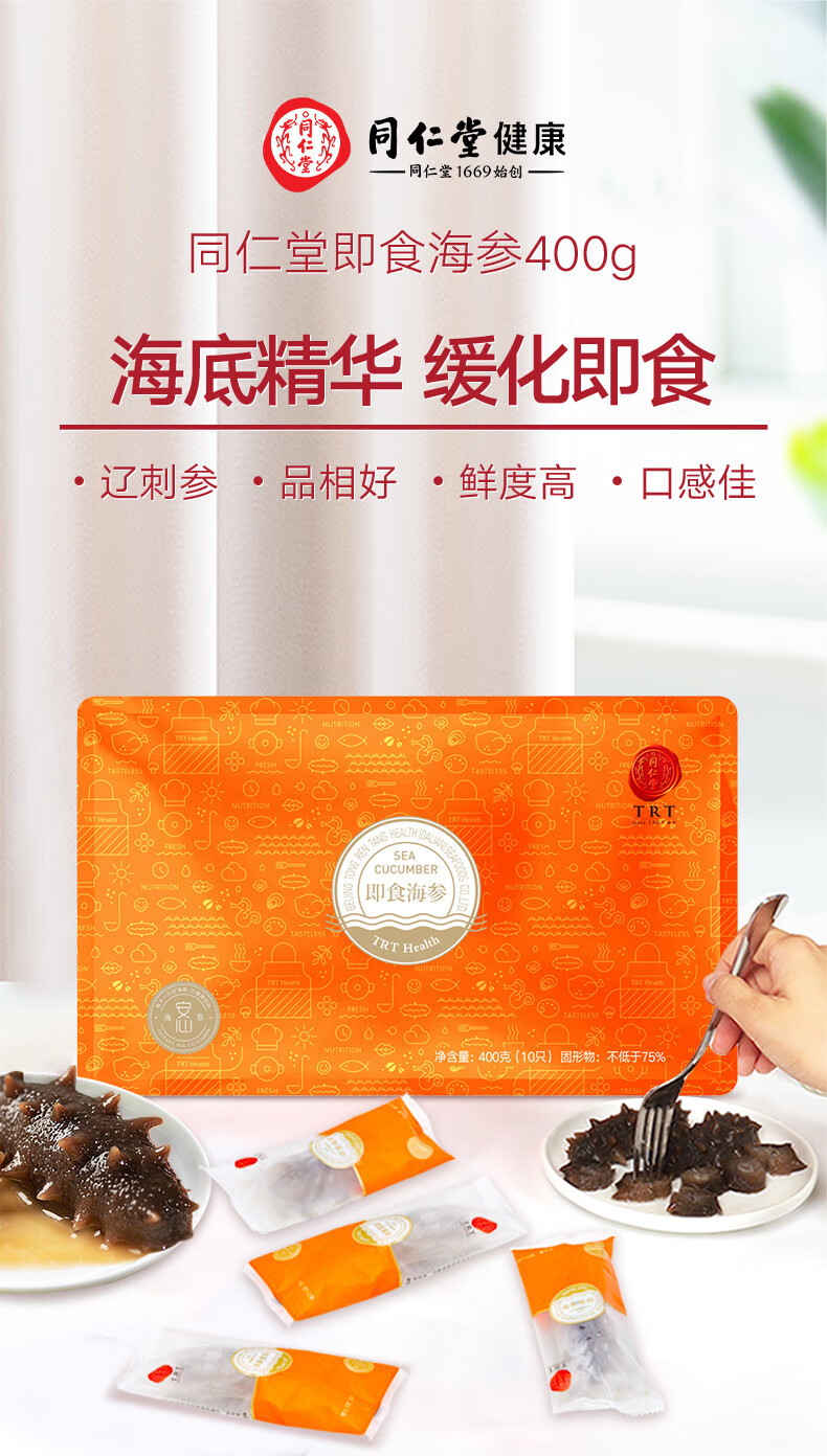 【正宗同仁堂品牌】北京同仁堂(TRT)即食海参海参400g 10只 辽参大连 固形物≥75% 参壁肥厚SY