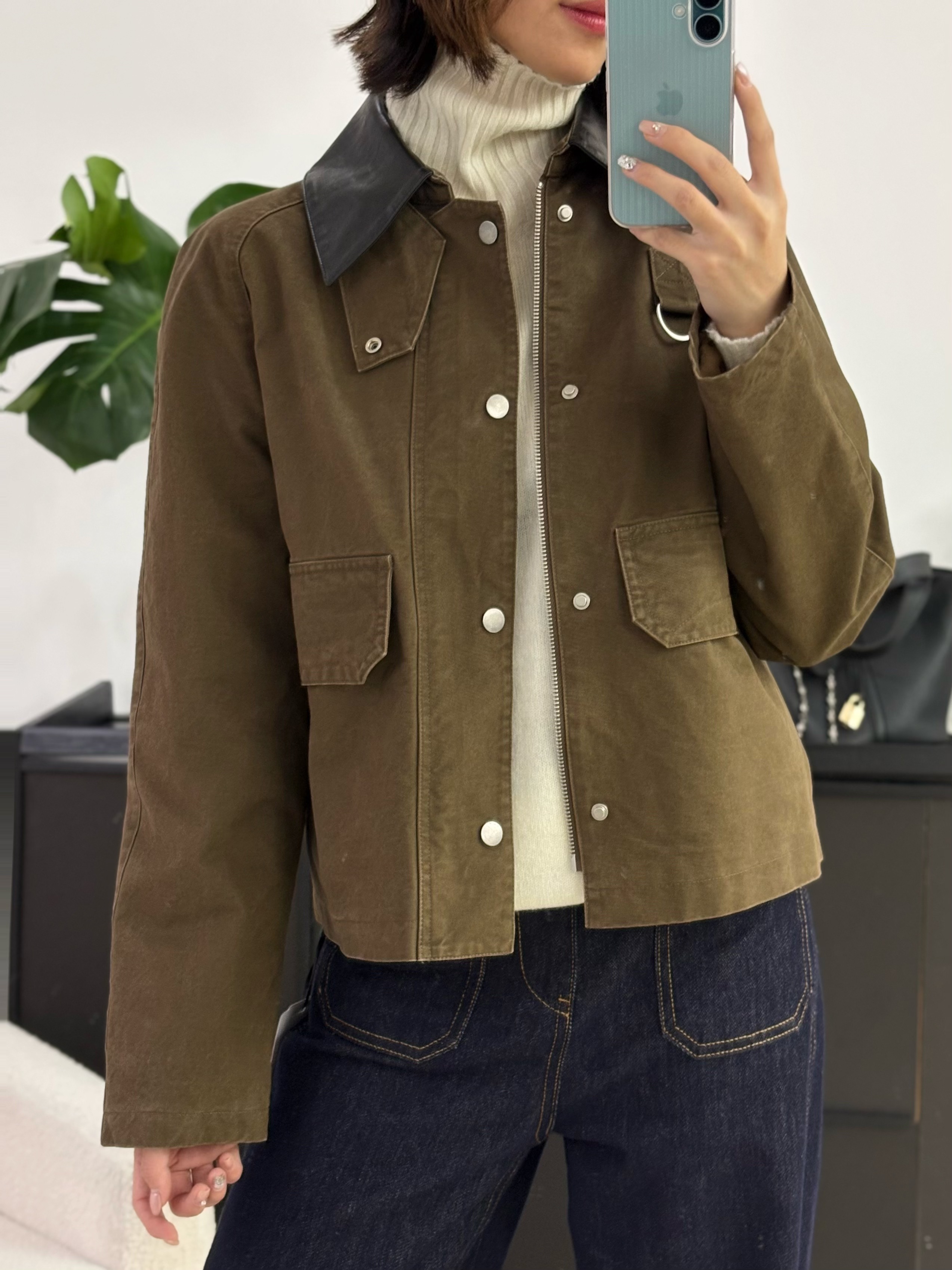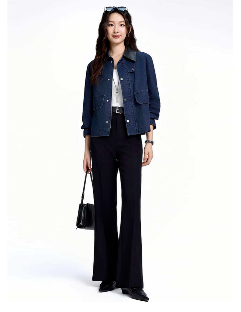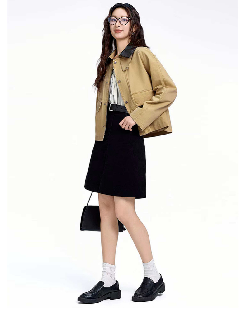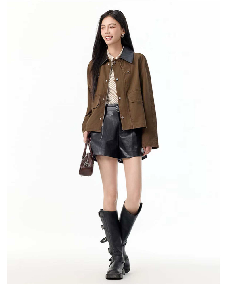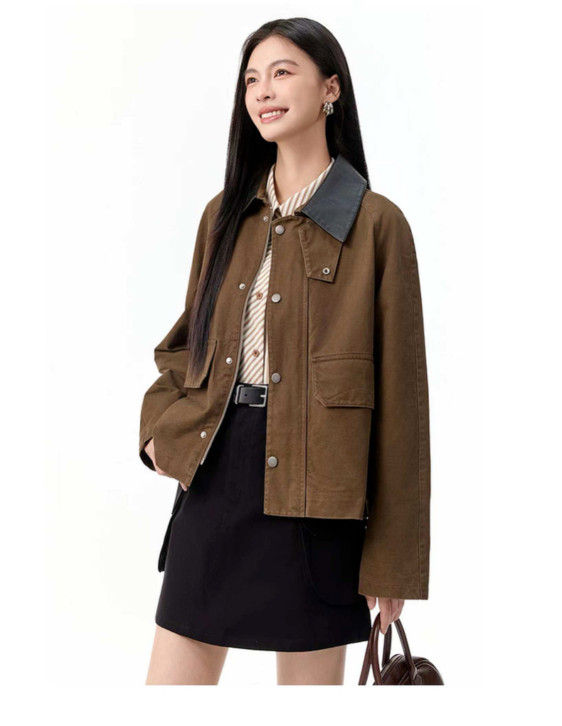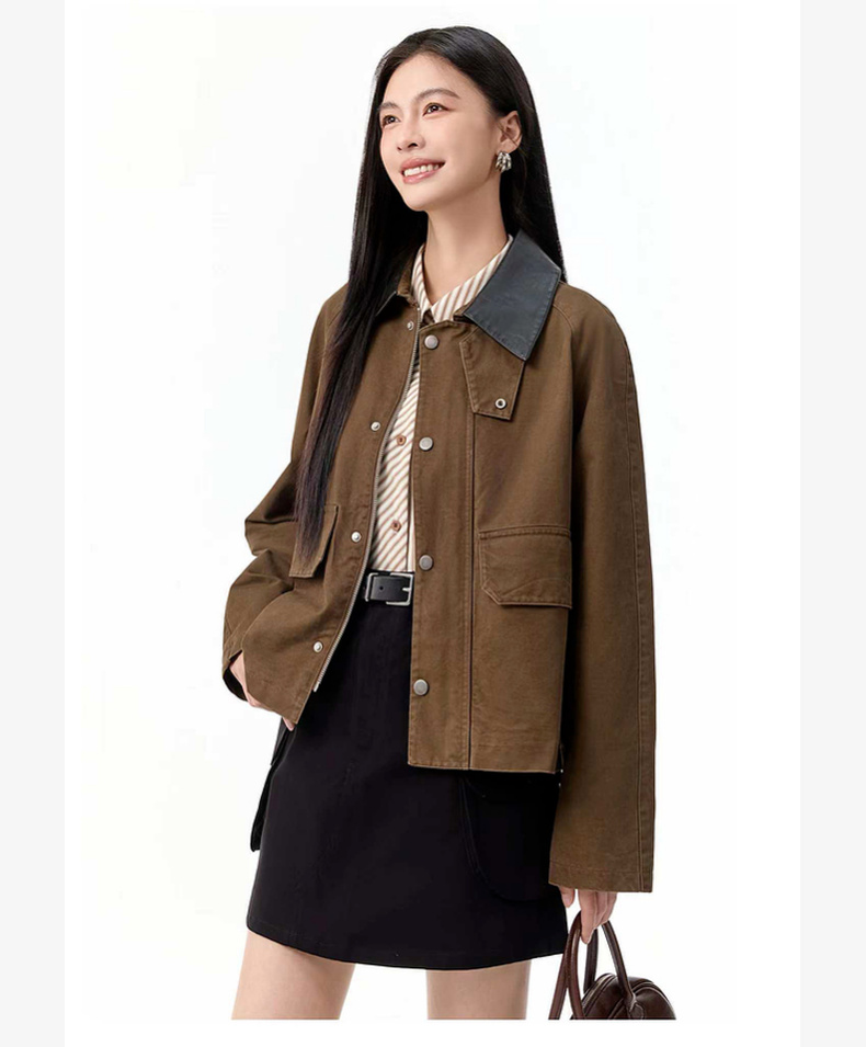 会员福利【官网1k+高端品质 非常重磅】拉夏贝尔/La Chapelle巴恩风上衣秋季复古风D字环翻盖口袋外套