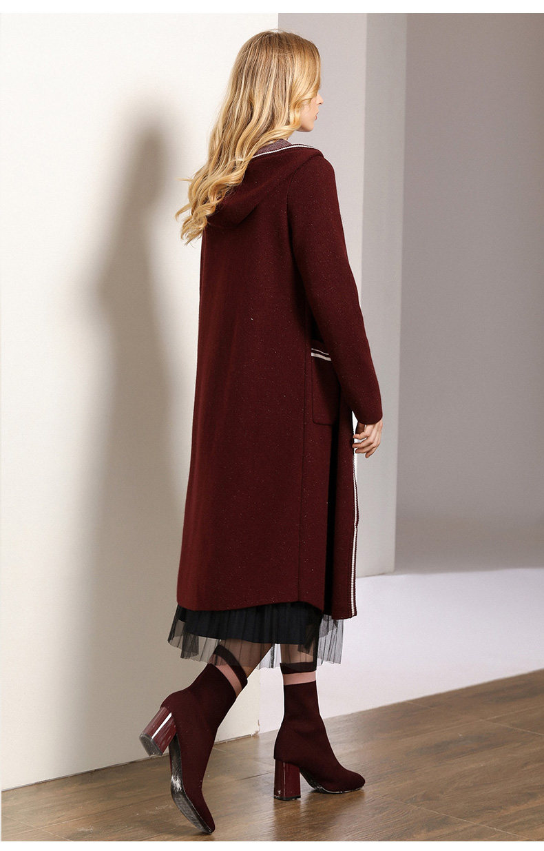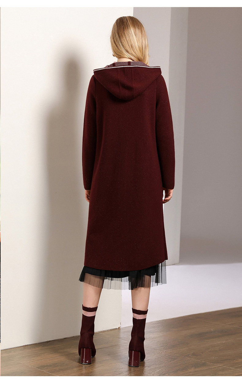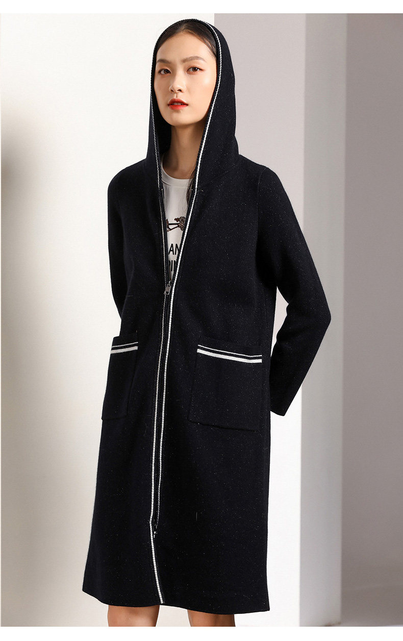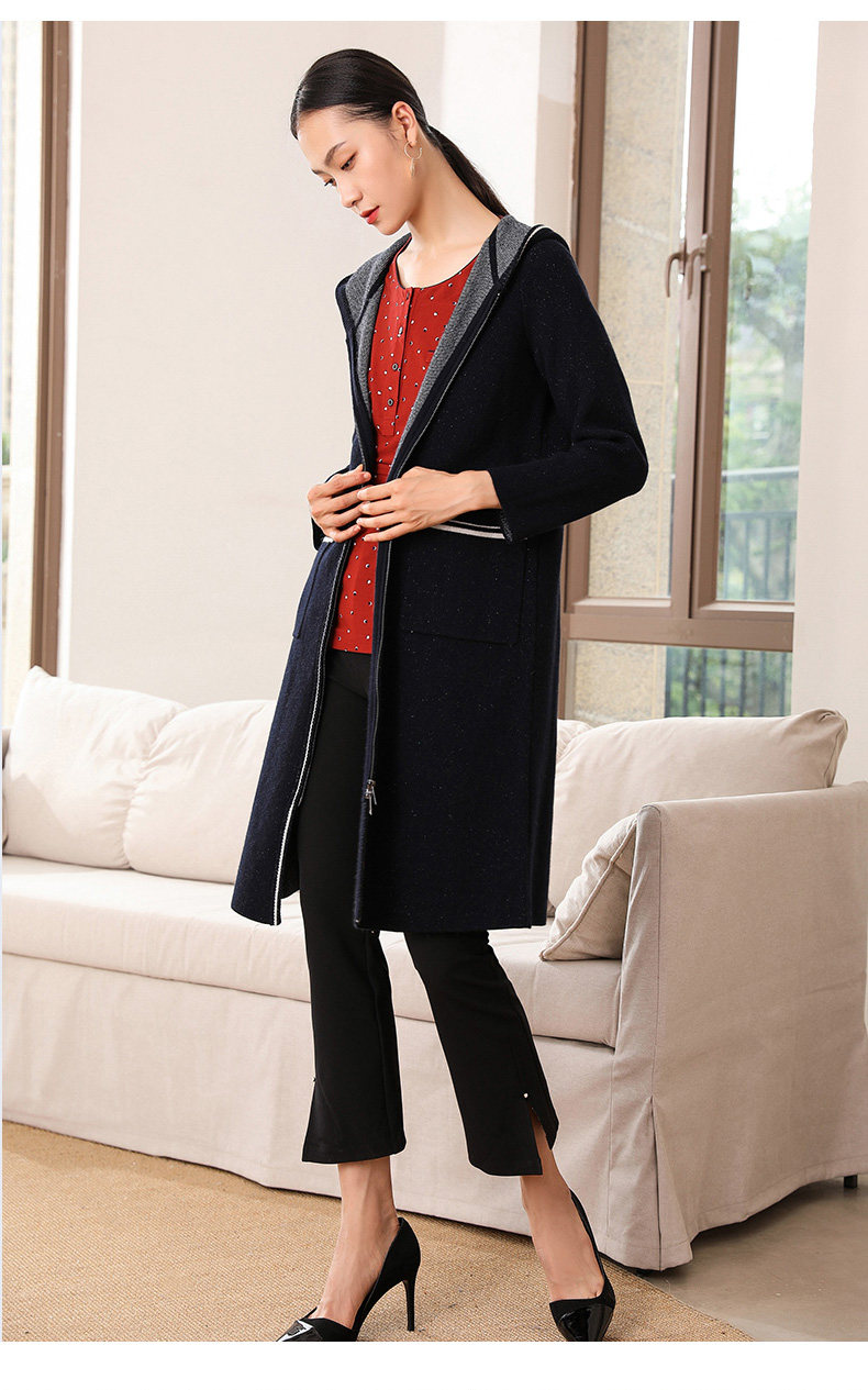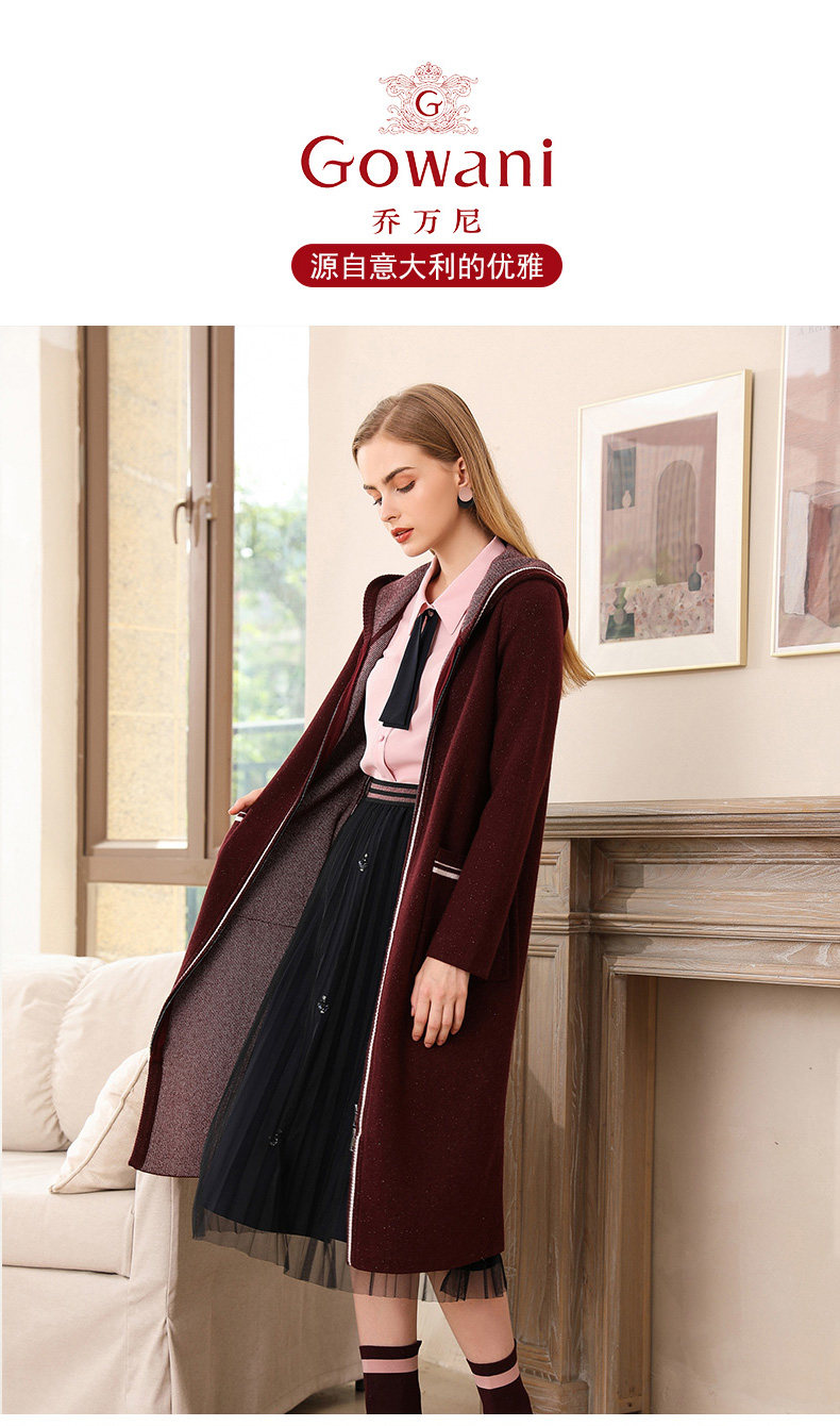 【两色可选】乔万尼秋装修身外搭连帽长袖羊毛针织衫开衫外套女中长款EN3M397