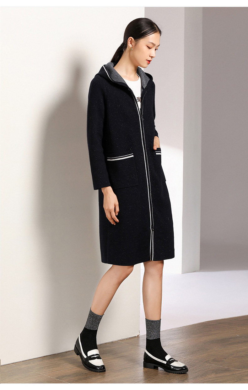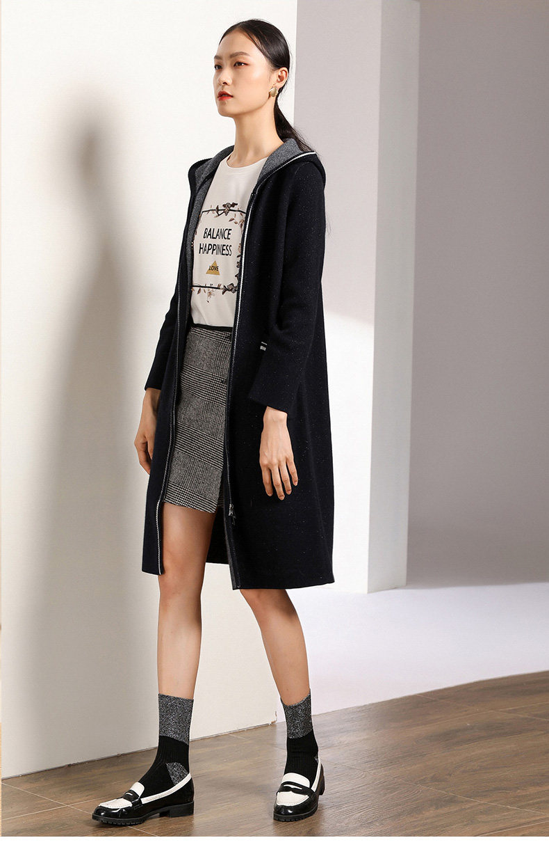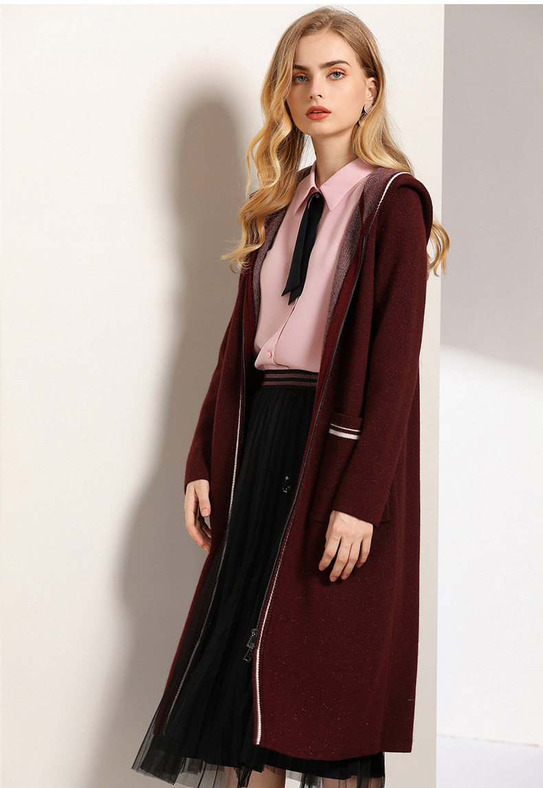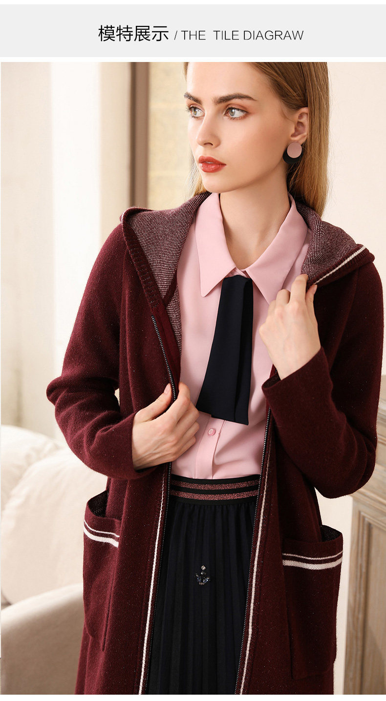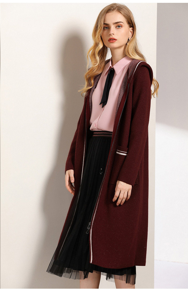 【两色可选】乔万尼秋装修身外搭连帽长袖羊毛针织衫开衫外套女中长款EN3M397