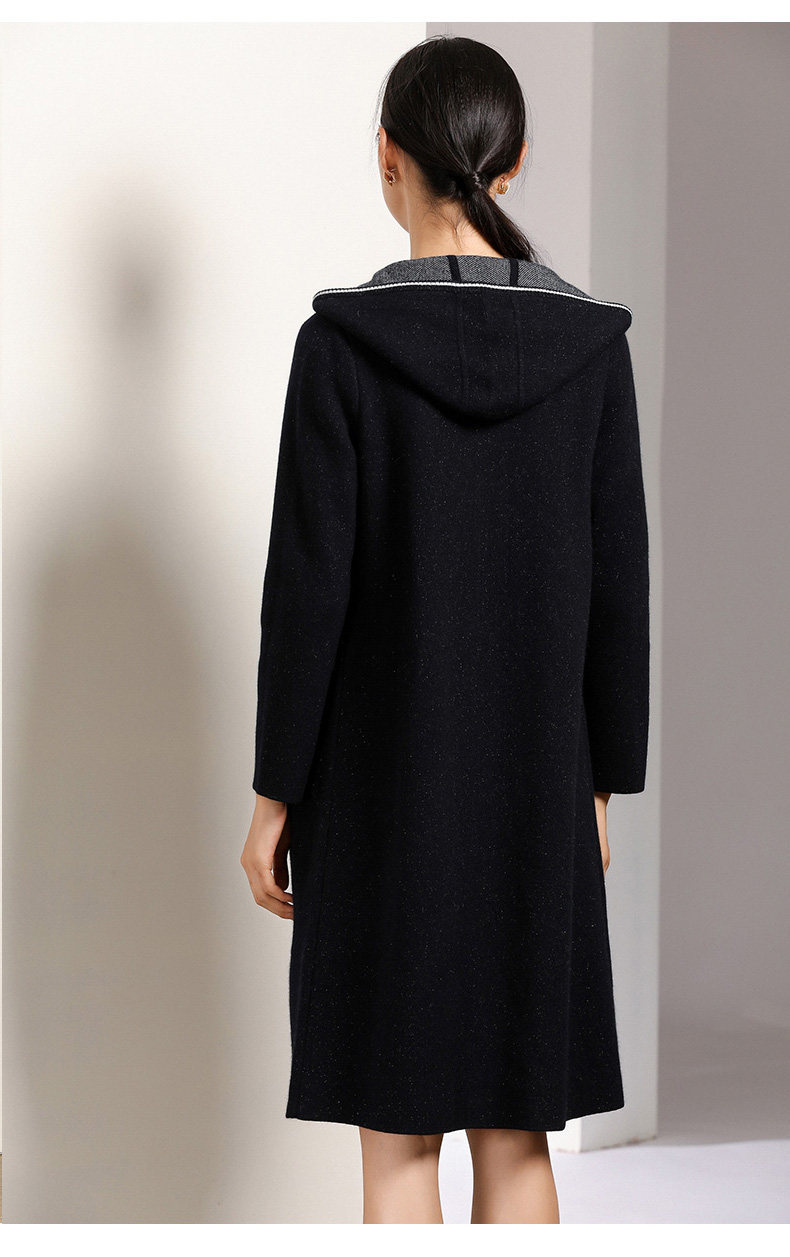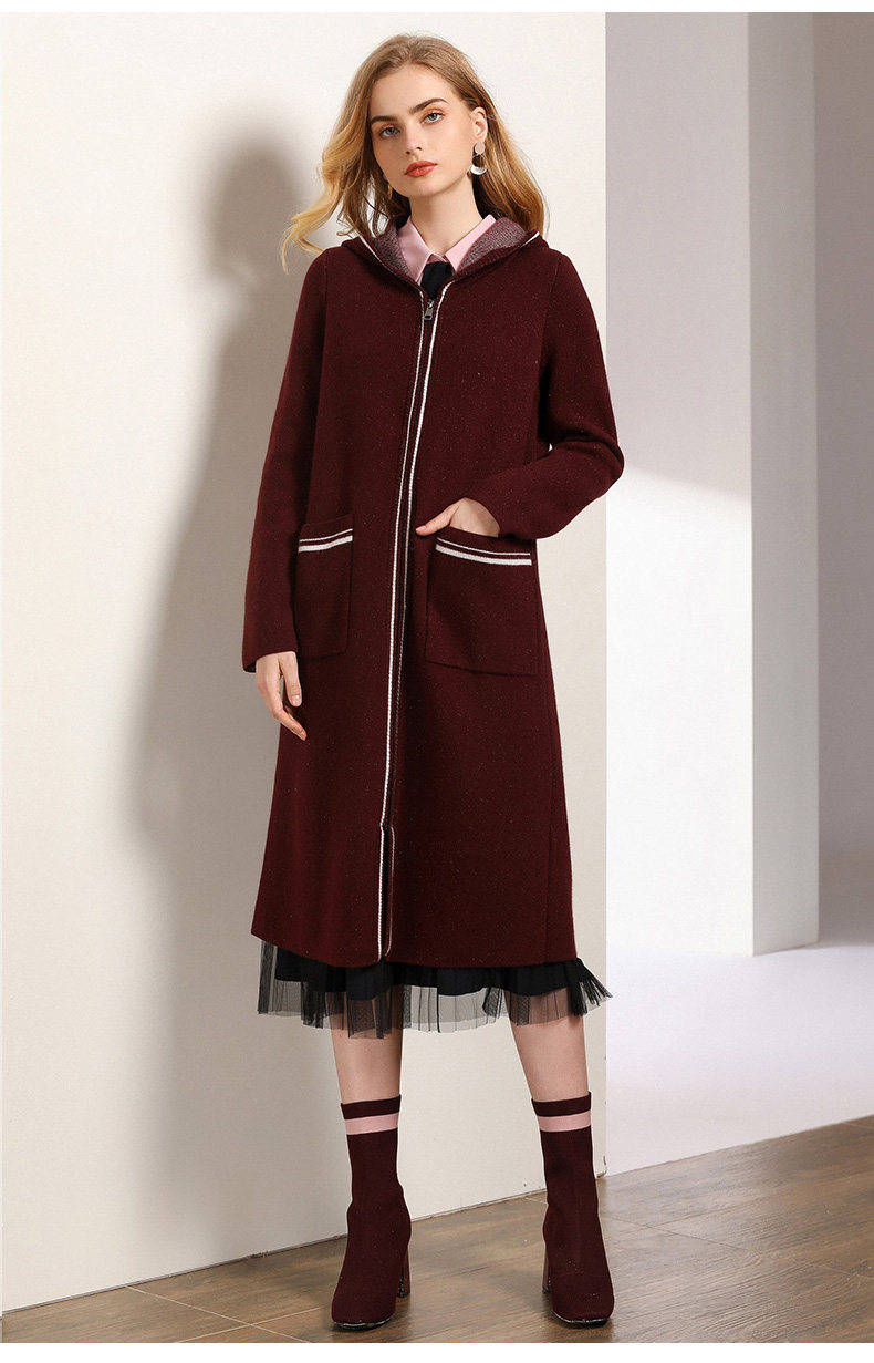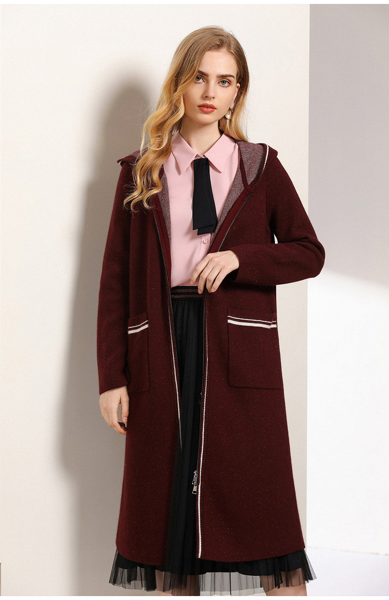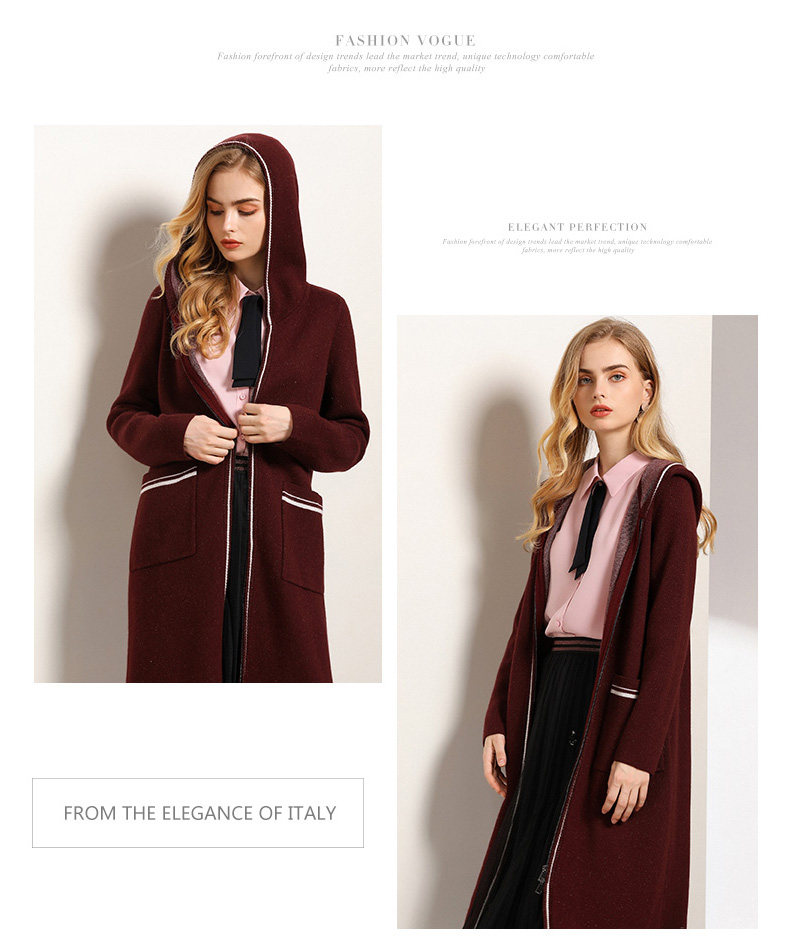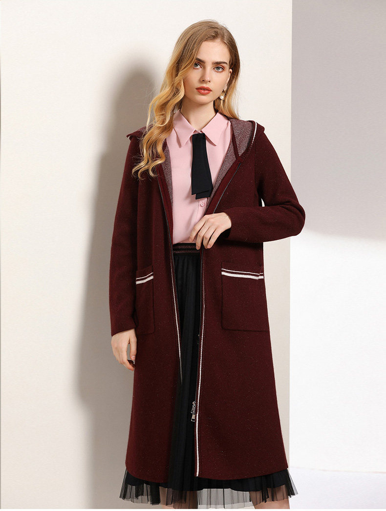【两色可选】乔万尼秋装修身外搭连帽长袖羊毛针织衫开衫外套女中长款EN3M397