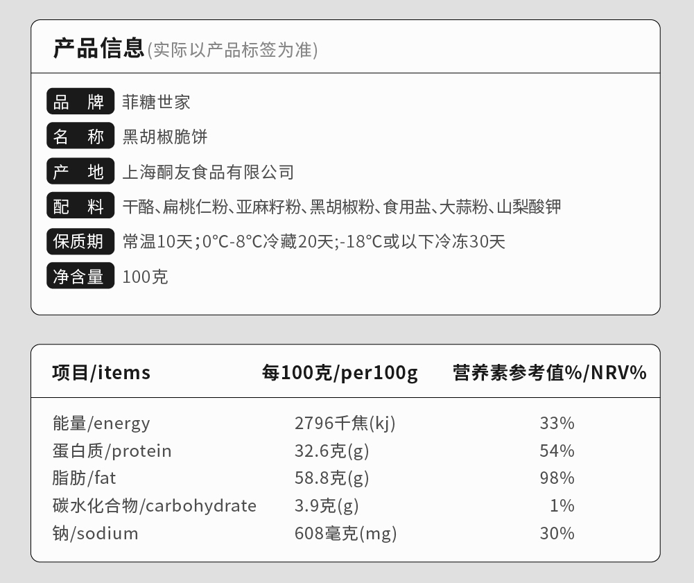 【酮友食品】控糖生酮饼干咸味黑胡椒无面粉糕点碳低零食点心菲糖世家
