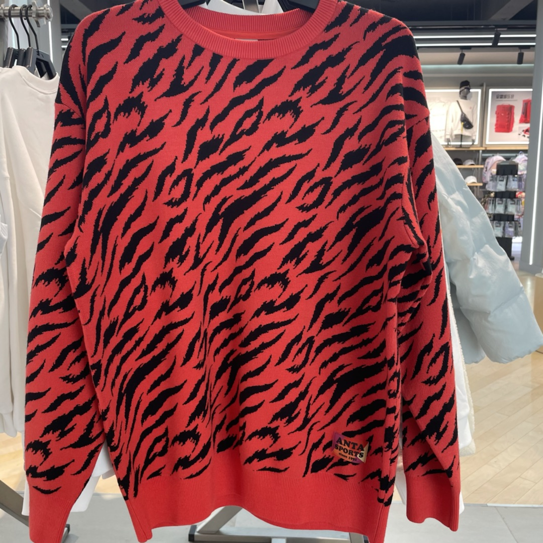 【库存有限,如无货将做退款,介意慎拍!】安踏新年编织衫春季虎年纹毛衣圆领毛衫宽松针织衫女162218736