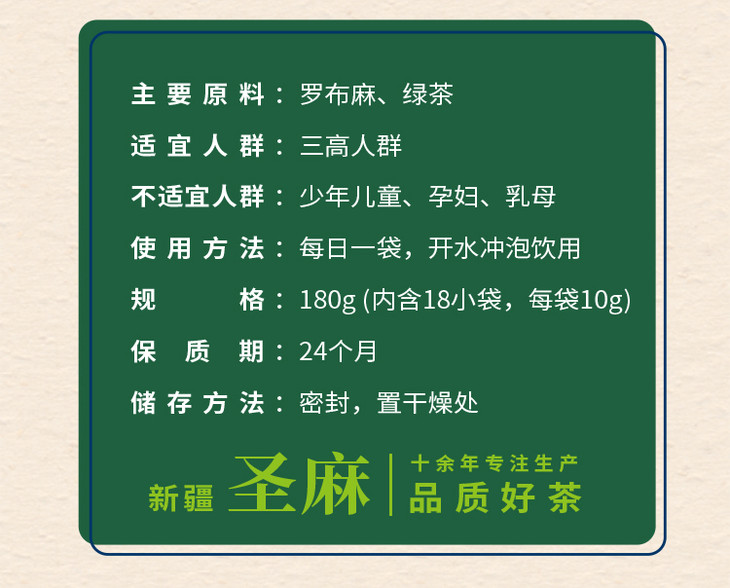 圣麻新疆原叶罗布茶 180g/盒礼盒装【18g/袋*10袋】
