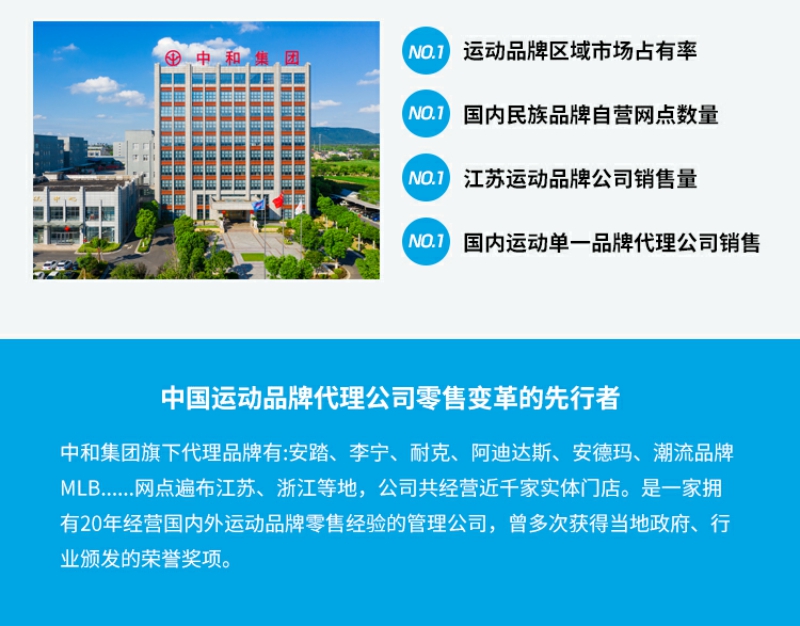 - 中和集团旗下代理安踏、李宁、耐克、安德玛、耐克、中国李宁、MIB等运动时尚品牌,网点遍布江苏、浙江、湖北等身份