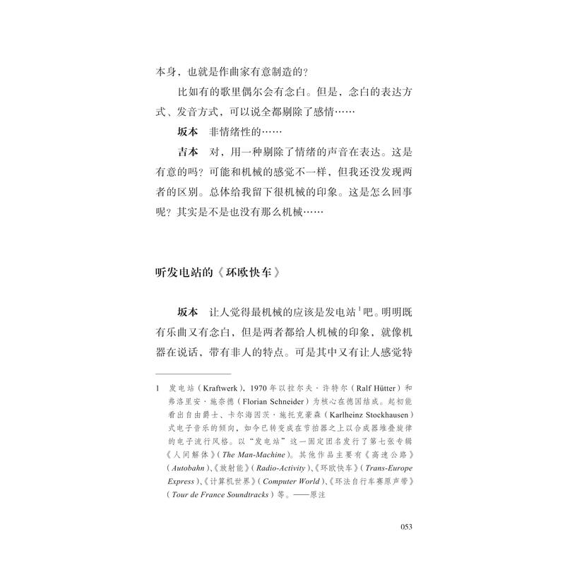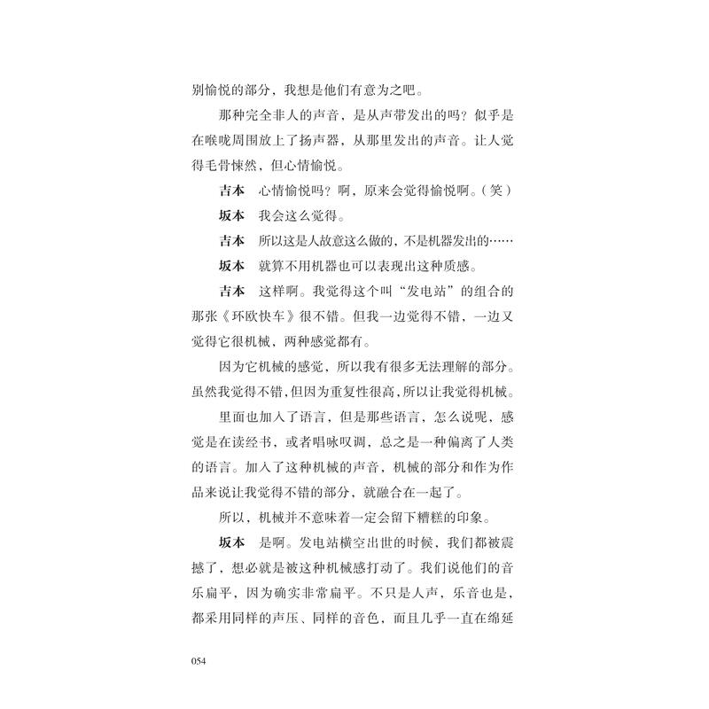 继大友良英自传性质的个人音乐小史《我成长的音乐时代》、偏向女性叙事和人物回忆的《邂逅:户川纯随笔集》、灵性感悟与人生随笔的《氛围驾驶员:细野晴臣随笔集》之后,这次出版的《音乐机械论》则是充满哲思和对音乐思考的对谈录,同时也是日本最重要的音乐人之一坂本龙一的作品,为该系列添上了浓墨重彩的一笔。