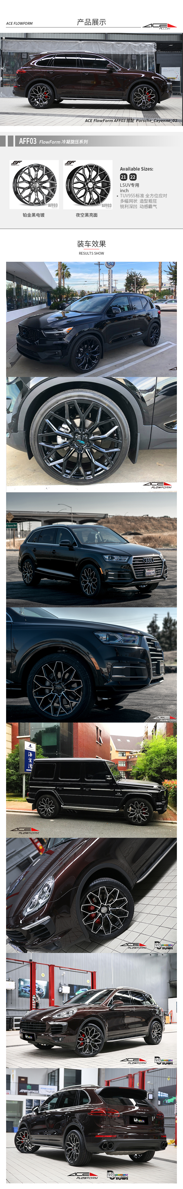 美国ACE AFF03轮毂 21寸 大型SUV专用 奔驰G GLS 卡宴 揽胜 发现 宝马X5等