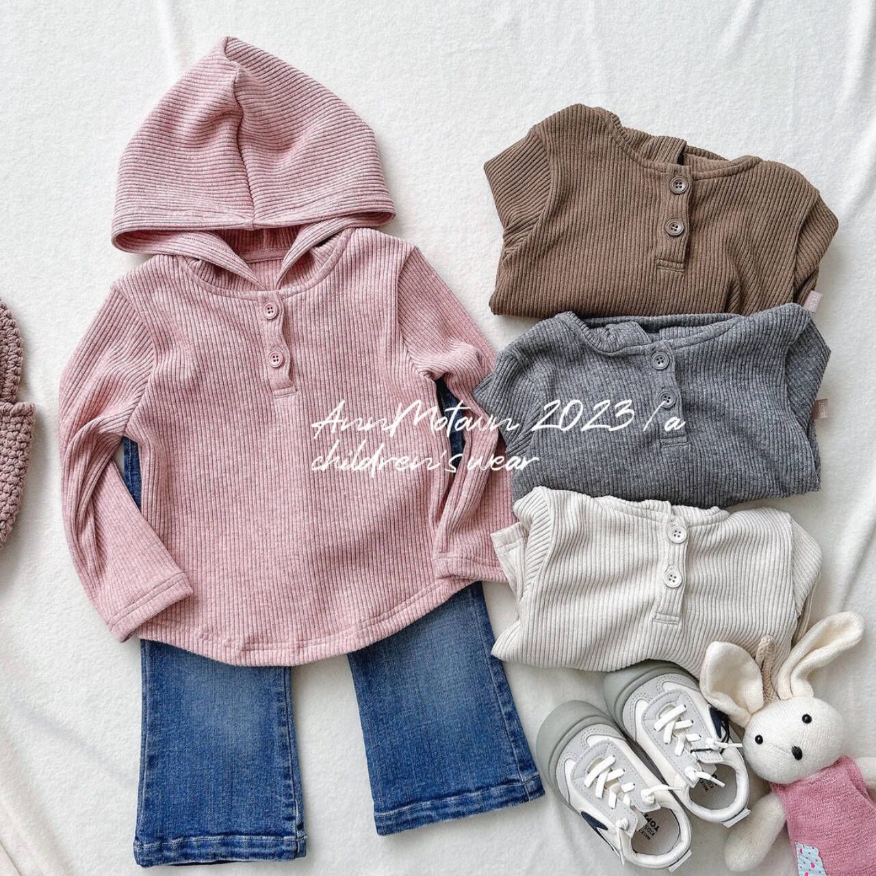 【各种下装搭配,打造多样化的造型!】柠里女童韩系童装2023年秋季新款儿童休闲百搭日常针织连帽上衣潮lm
