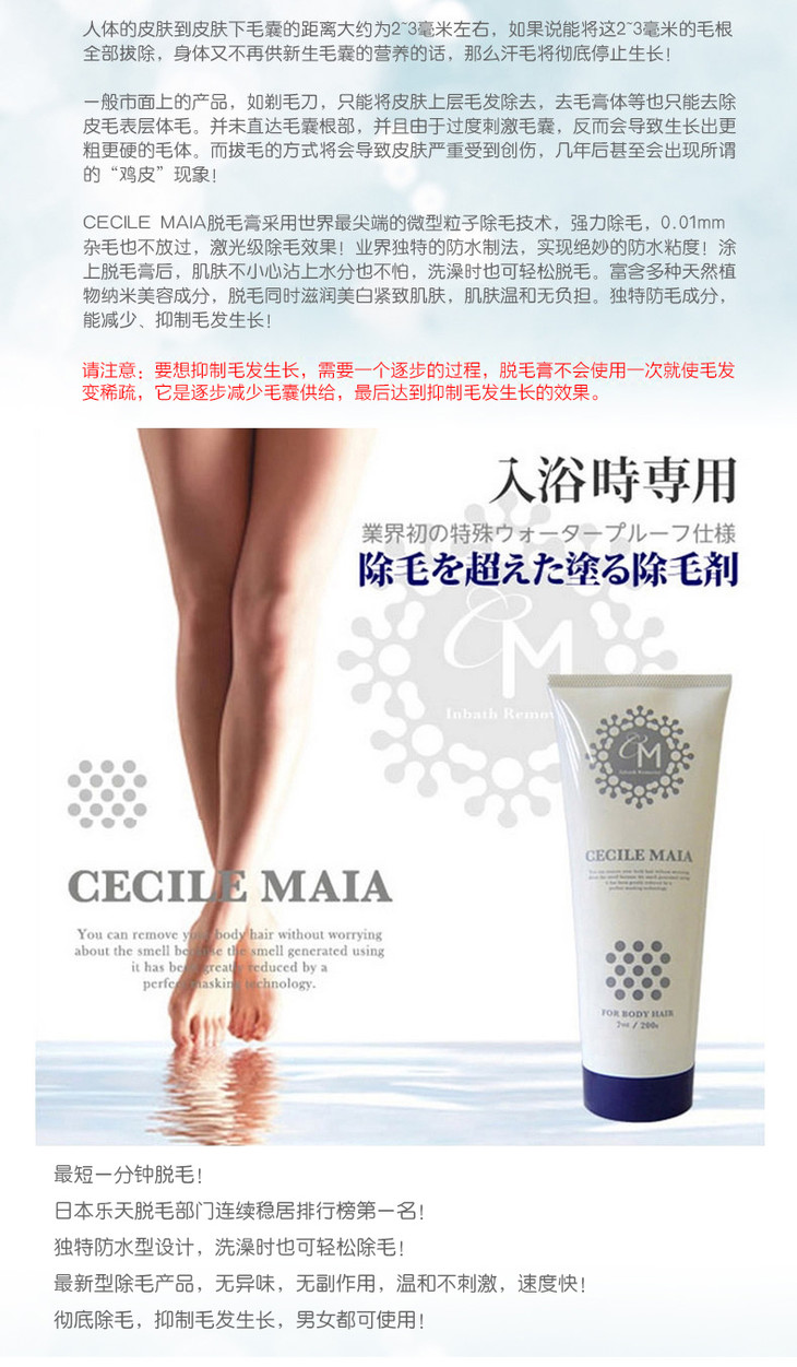 Cecile Maia CM 脱毛膏200g脱手臂腋下腿毛私处