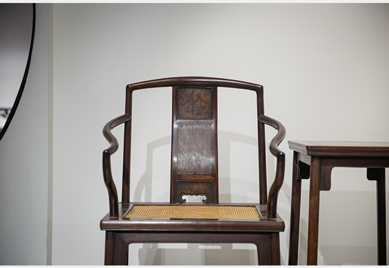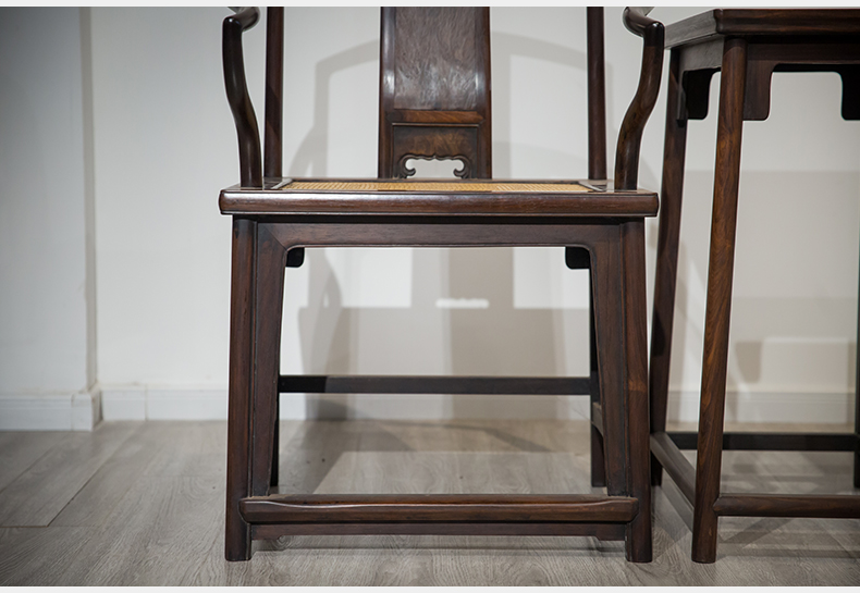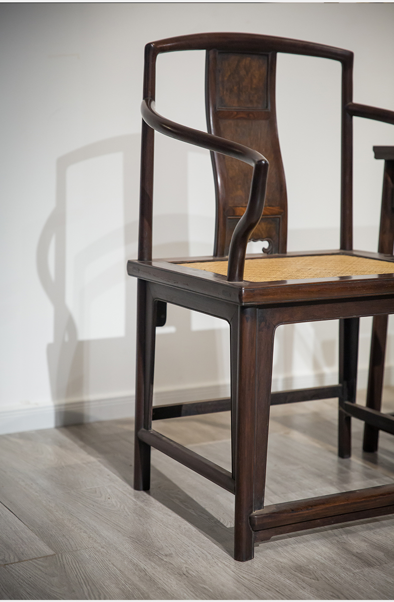 清 红木券口靠背玫瑰椅成套(两椅一几)