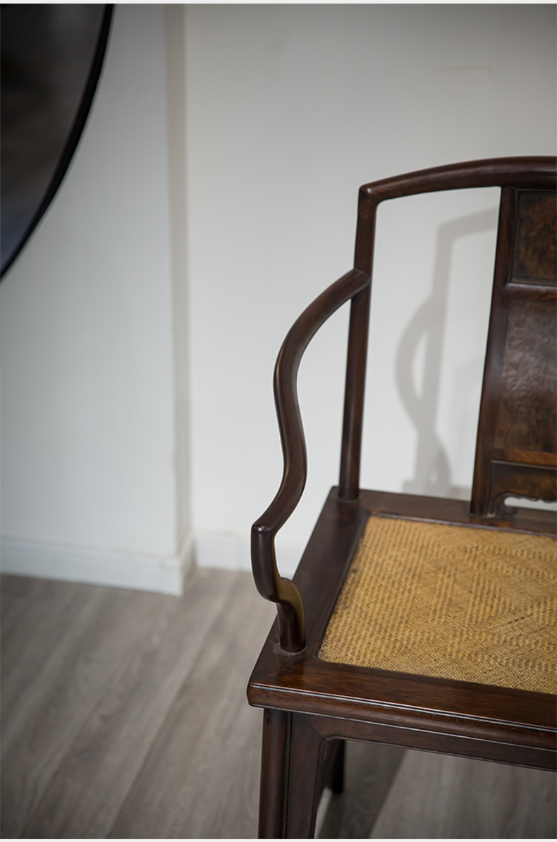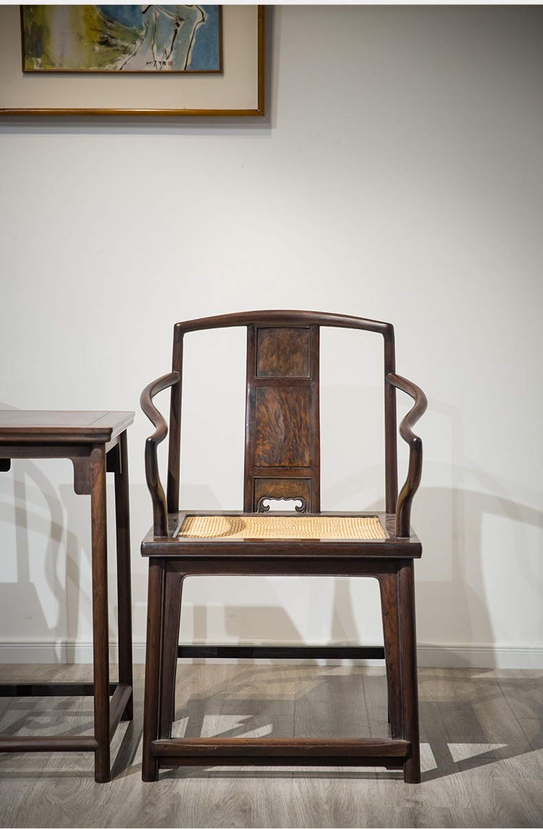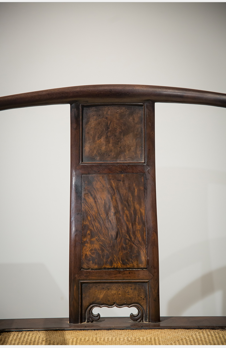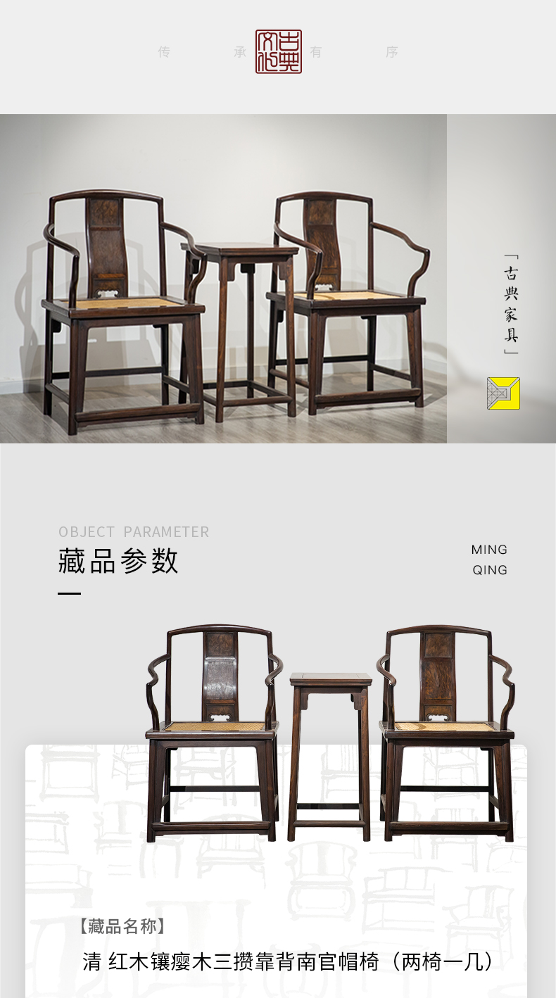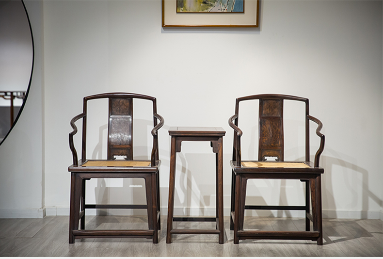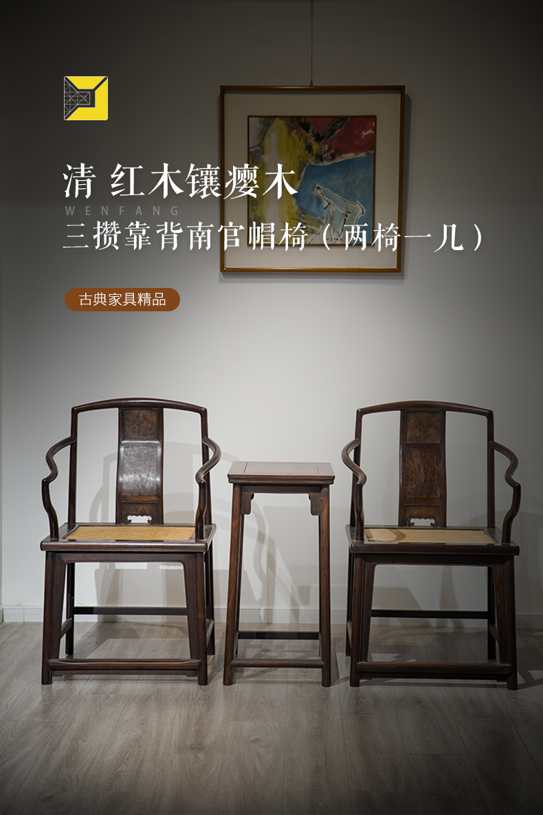 清代 红木镶瘿木三攒靠背南官帽椅(两椅一几)