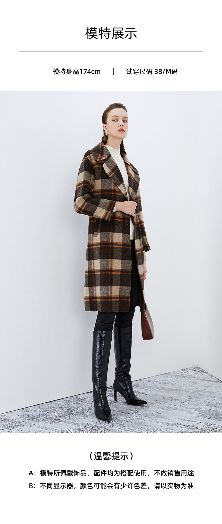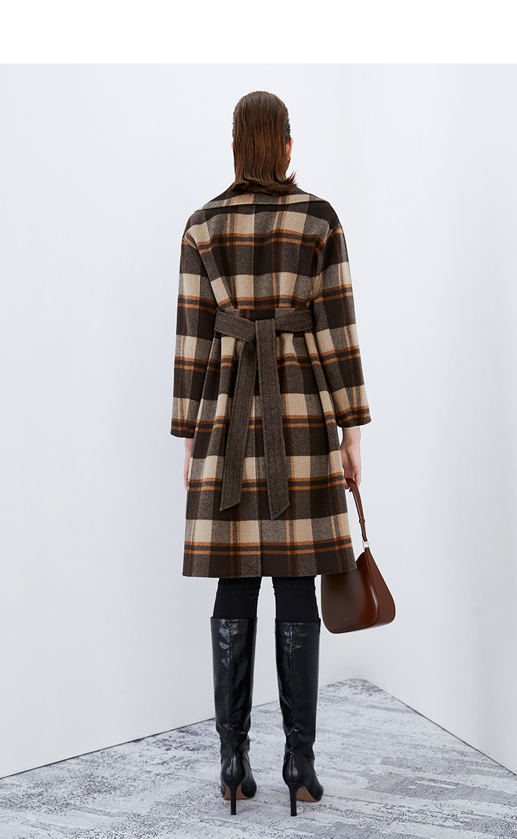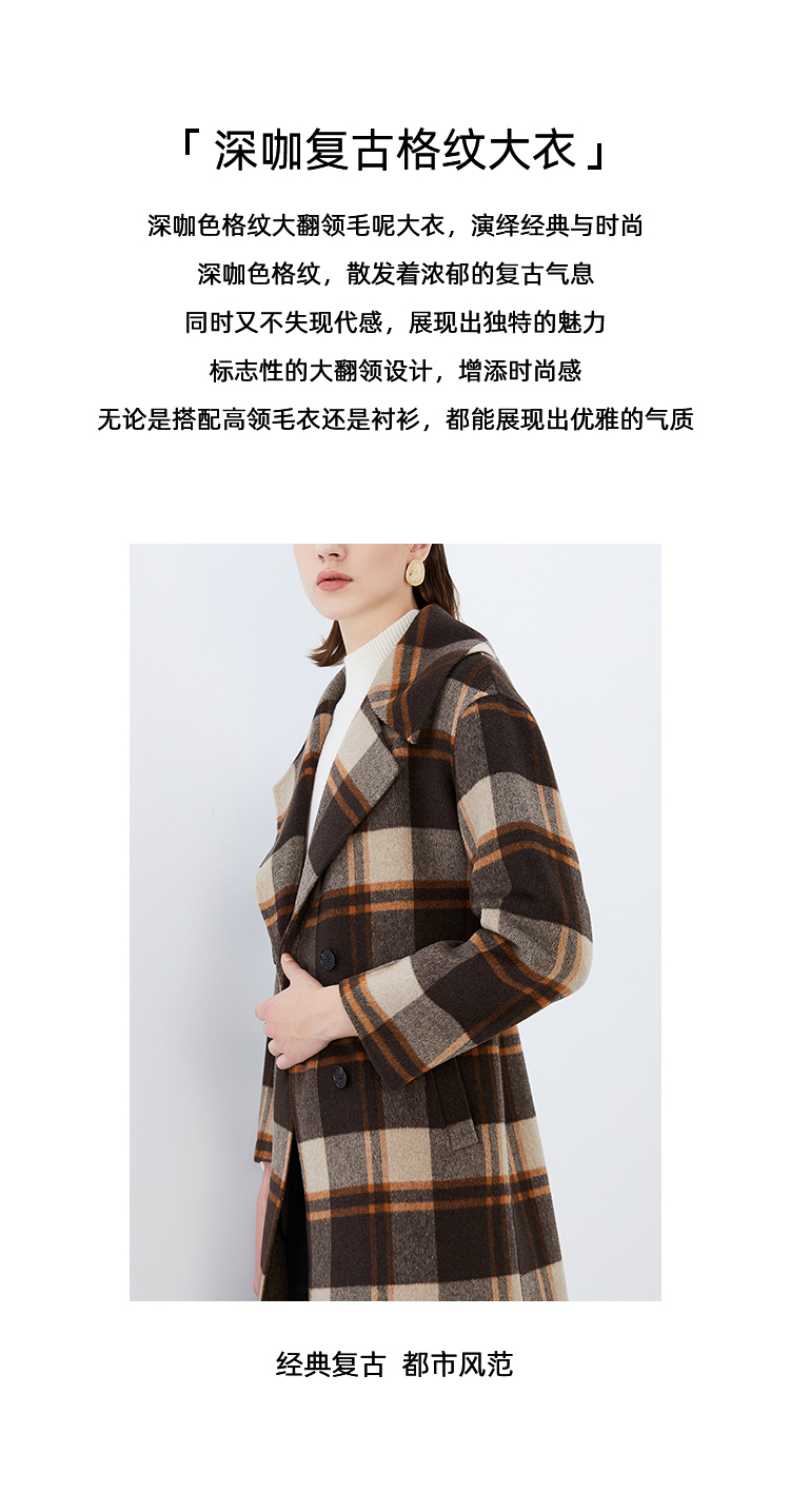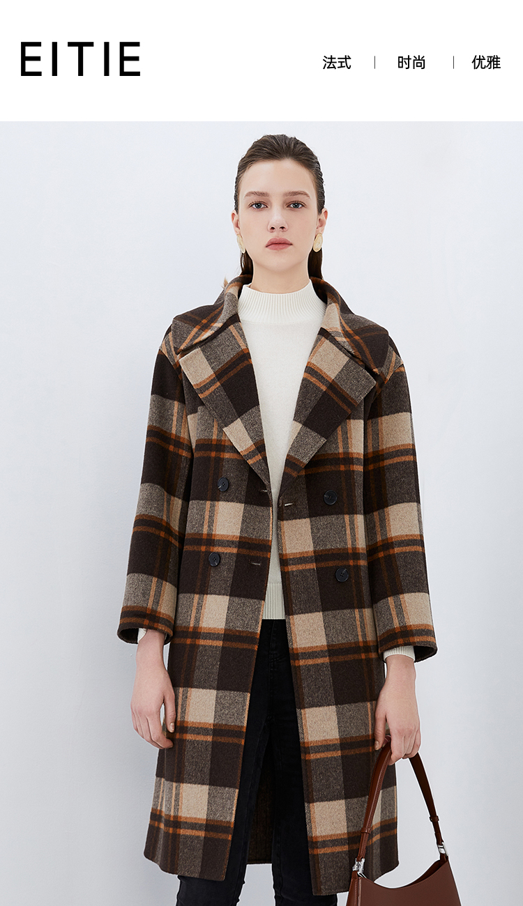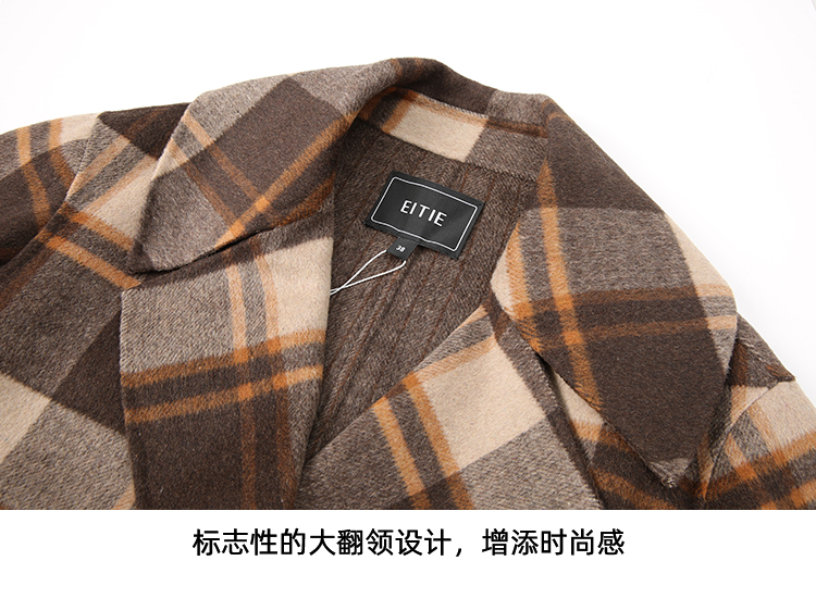 EITIE爱特爱冬季新款时尚复古格纹翻领百搭修身毛呢大衣外套7614333